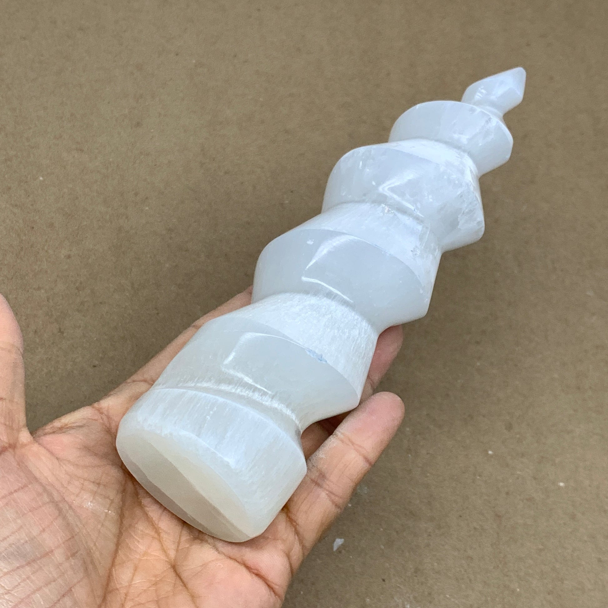 1 lbs.,7.25"x1.9", Selenite Spiral Crystal Tower Wand Point, B36642