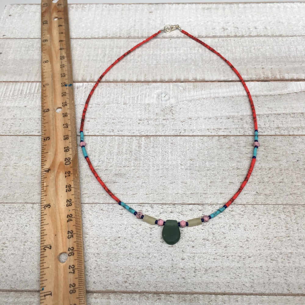 1 Necklace, Serpentine & Red Coral Inlay Beaded Necklace Afghanistan, NPH119