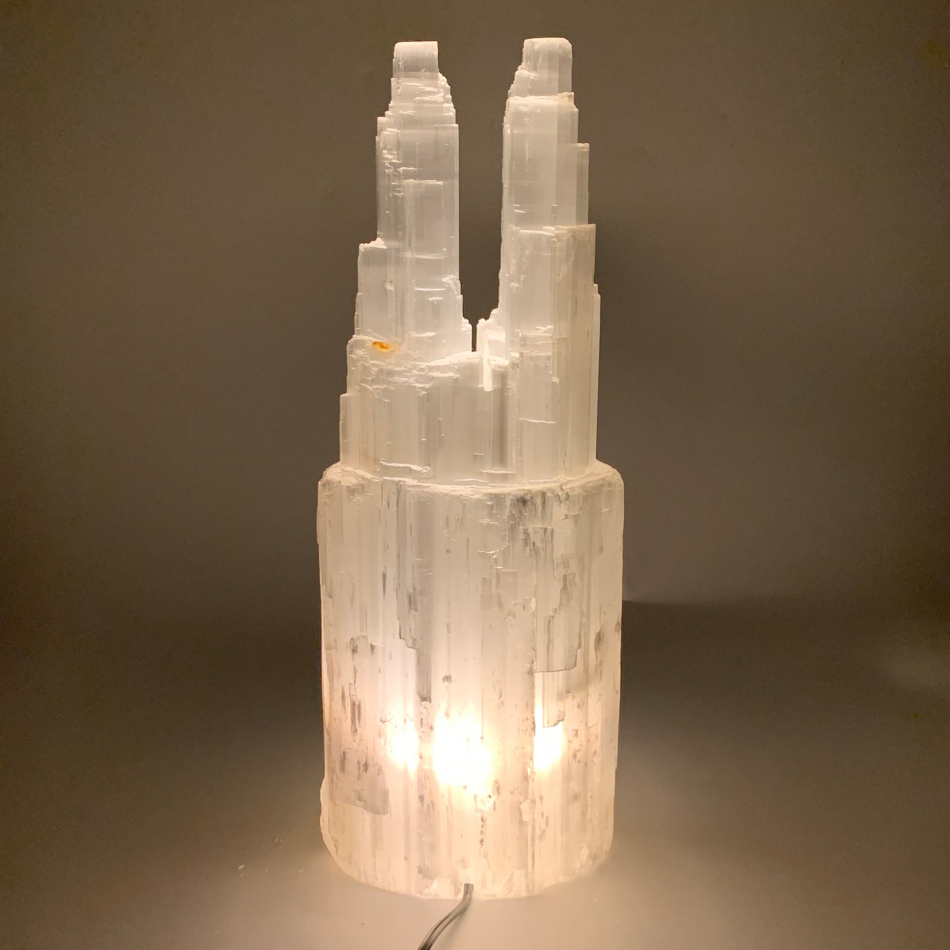 12.9 lbs, 15.5"x5.7"x3.8" Rough Selenite (Satin Spar) Lamp Tower W/Chord, B35772