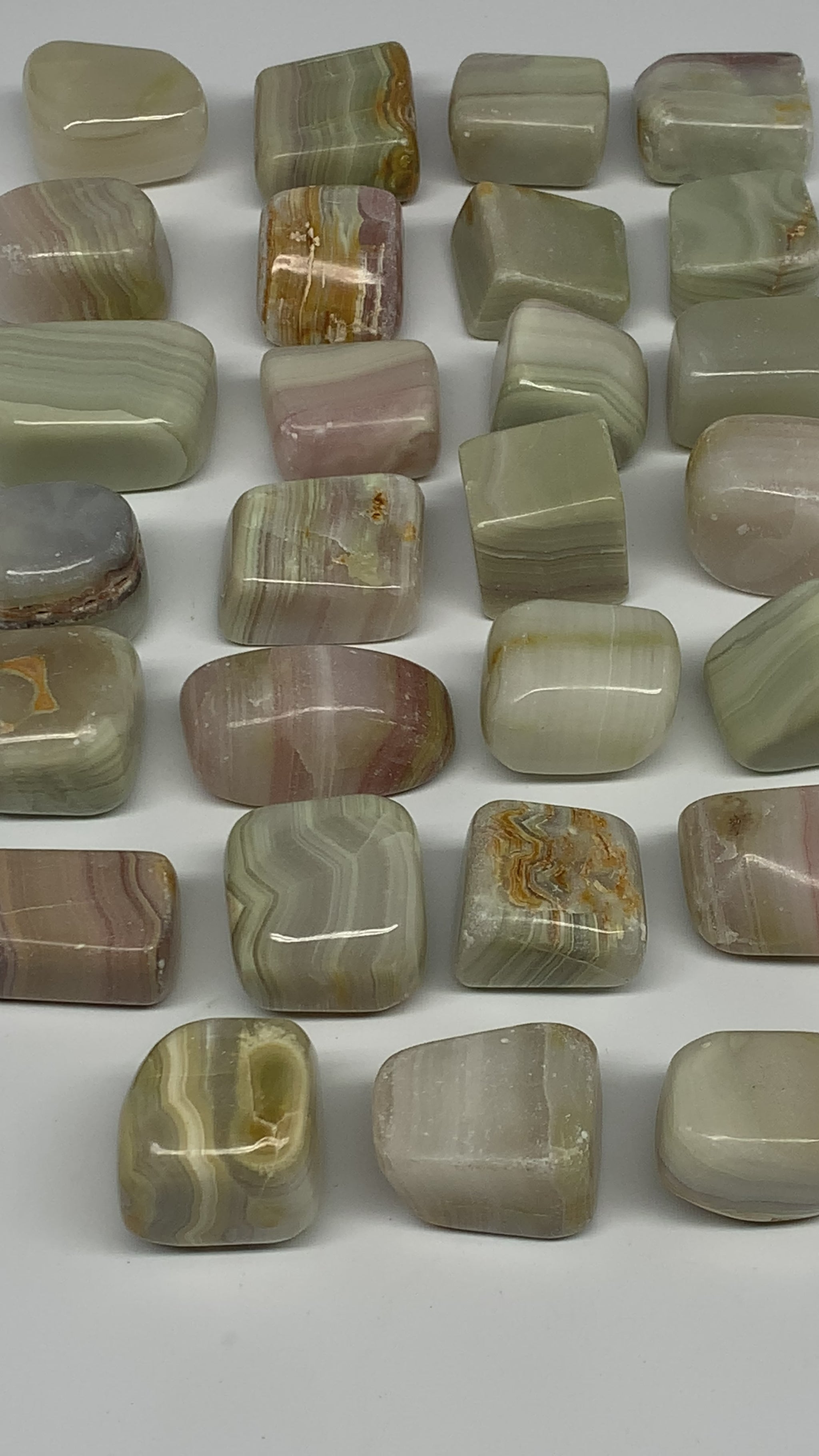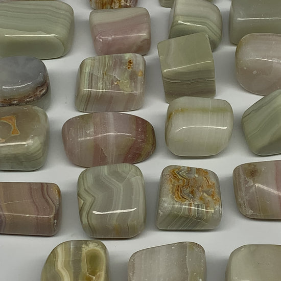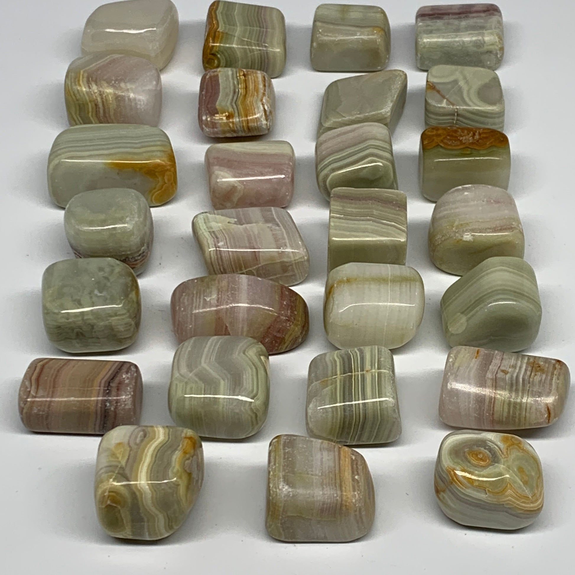 1000g, 1.1"-1.8", 27pcs, Green/Banded Onyx Tumbled Stones @Afghanistan, B26688