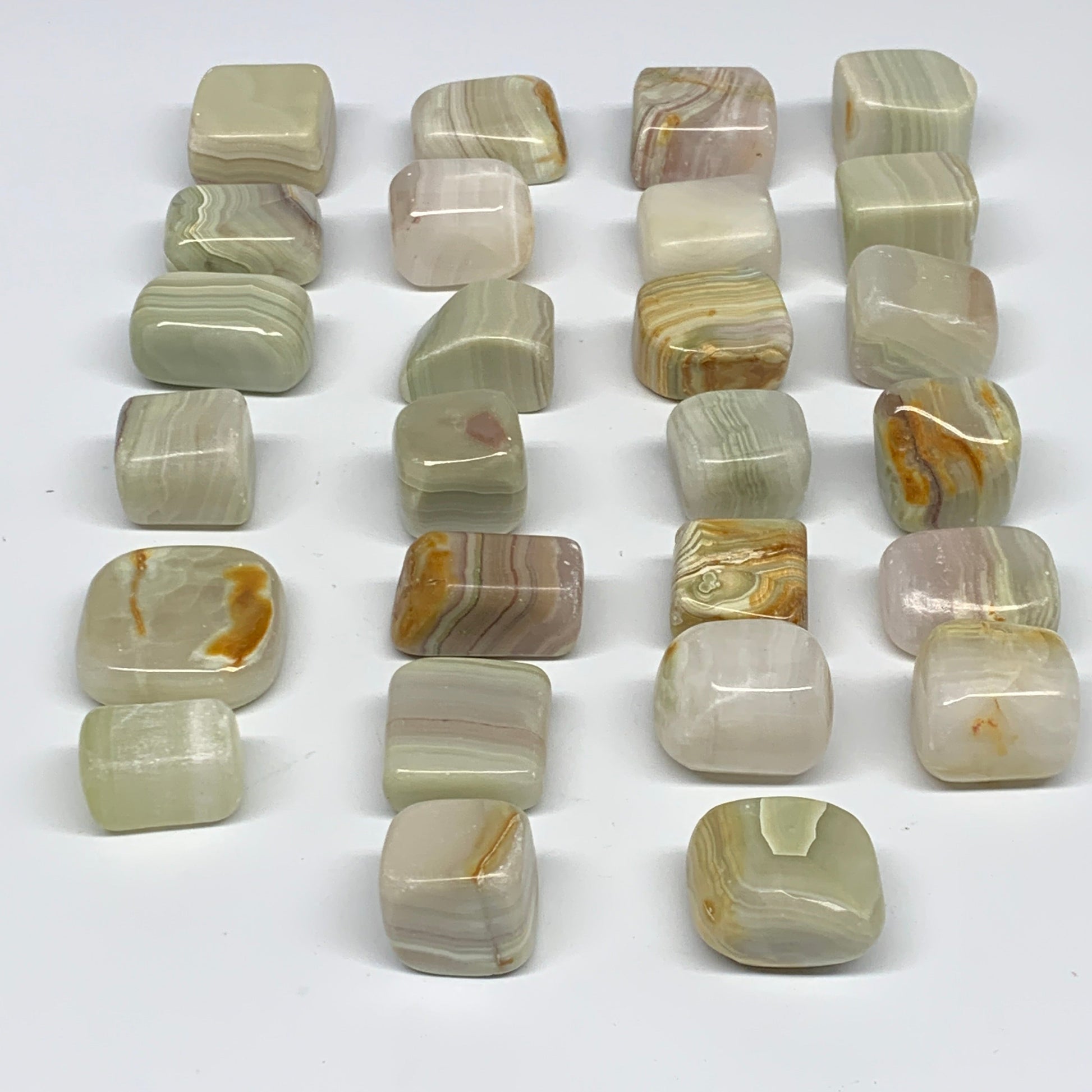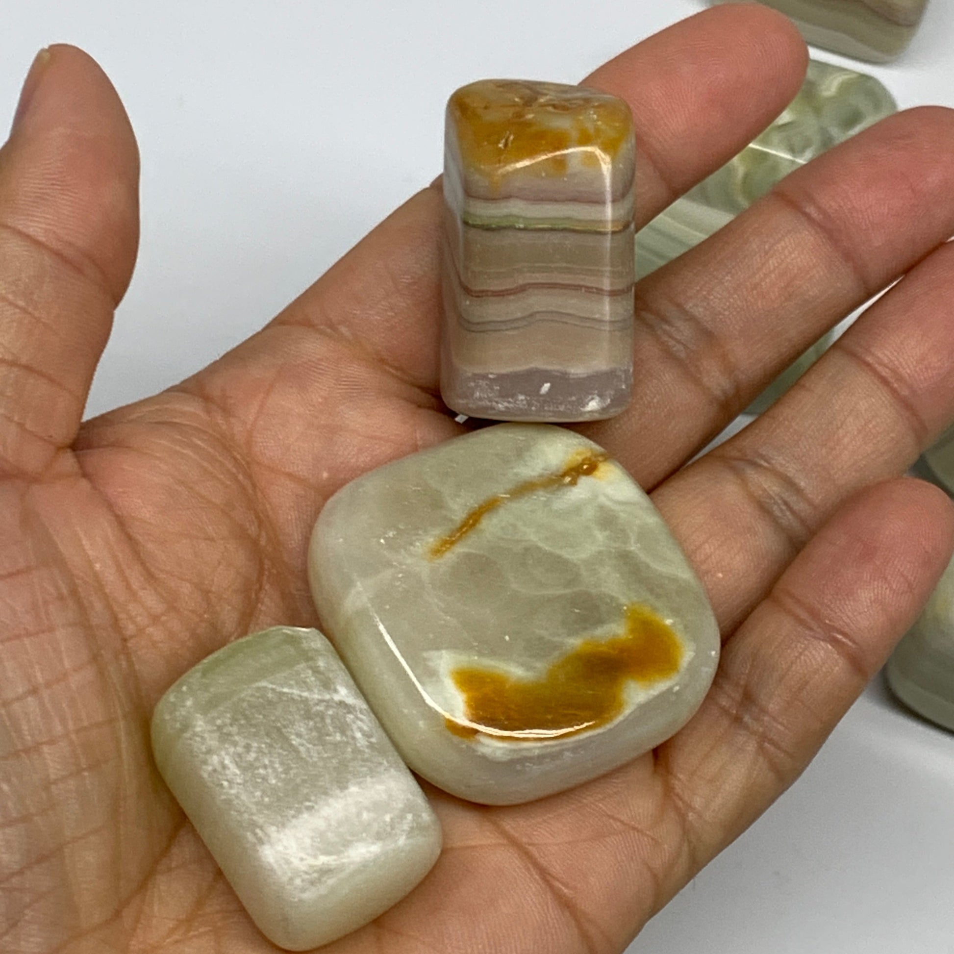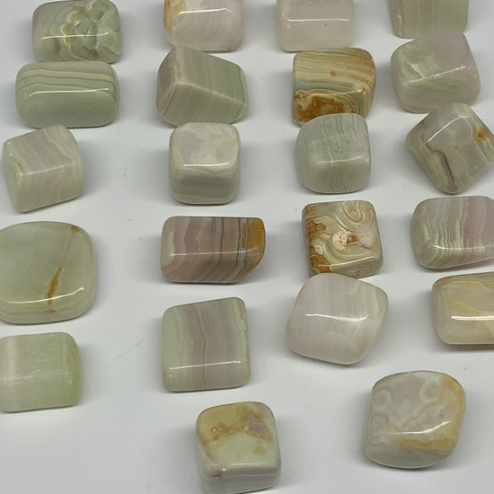 1000g, 1"-1.6", 26pcs, Green/Banded Onyx Tumbled Stones @Afghanistan, B26689