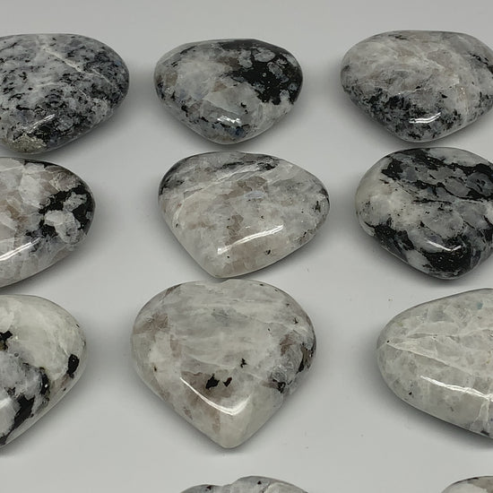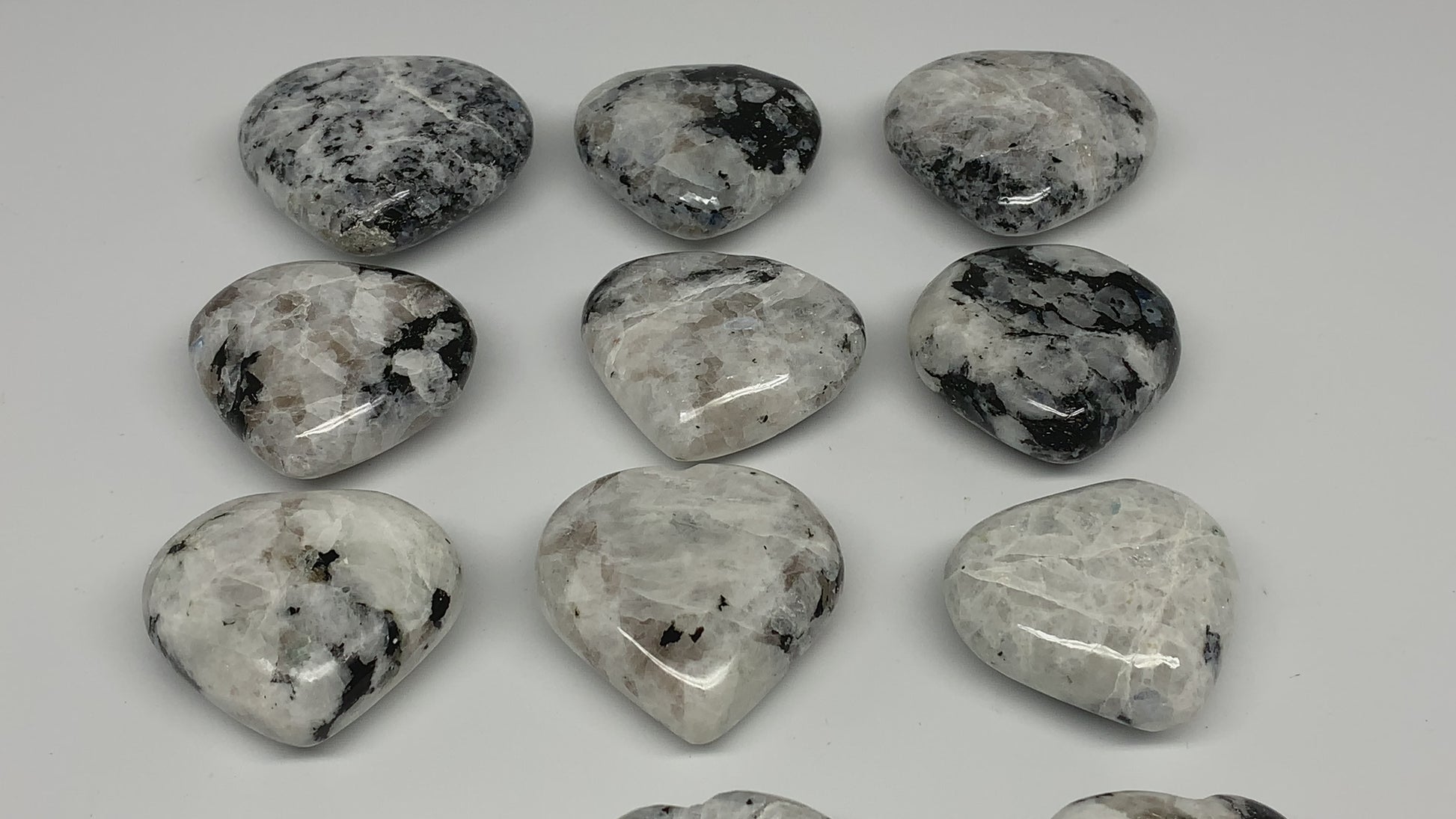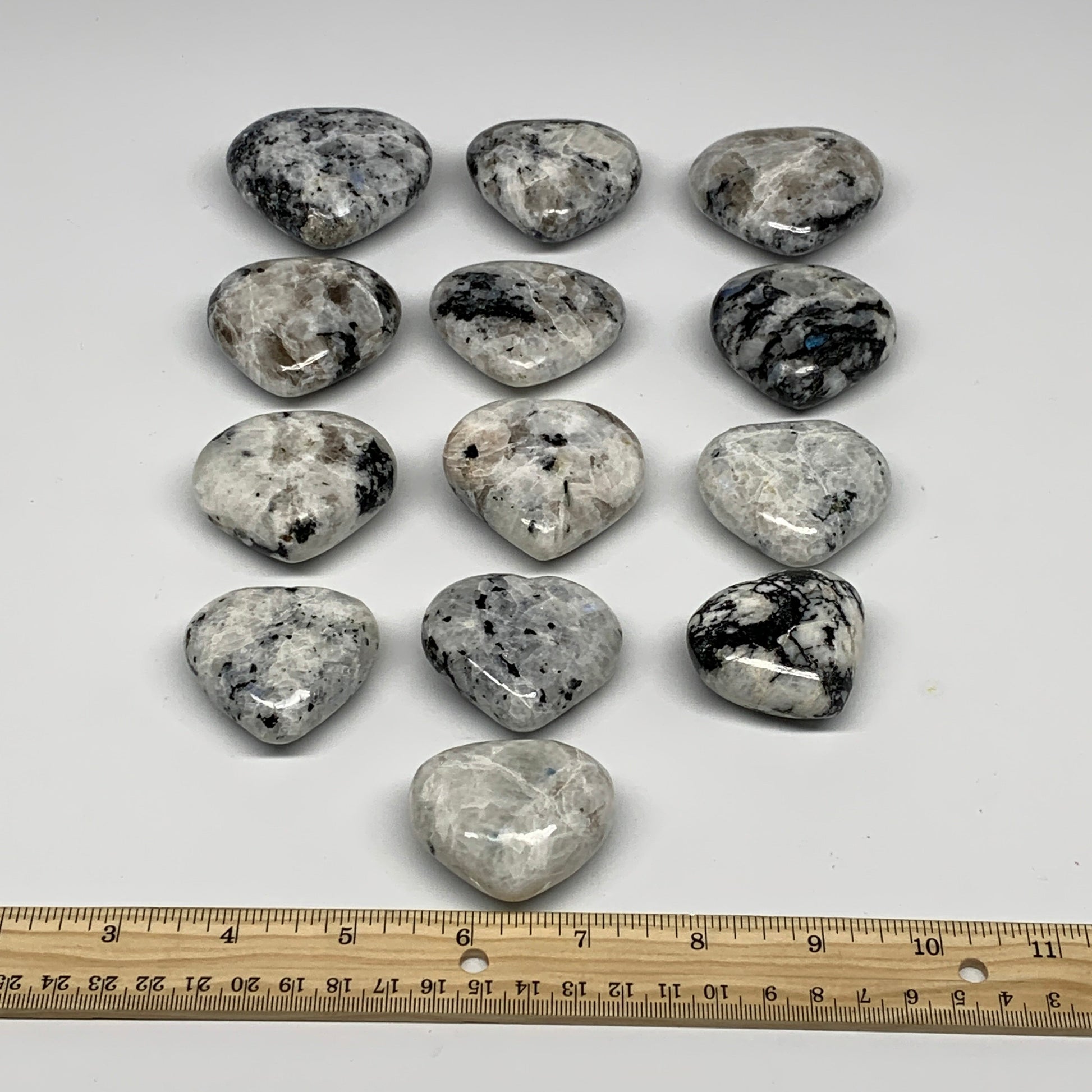 1000g (2.2 lbs) , 13 pcs, 1.6"- 2.1", Rainbow Moonstone Hearts from India, B26400