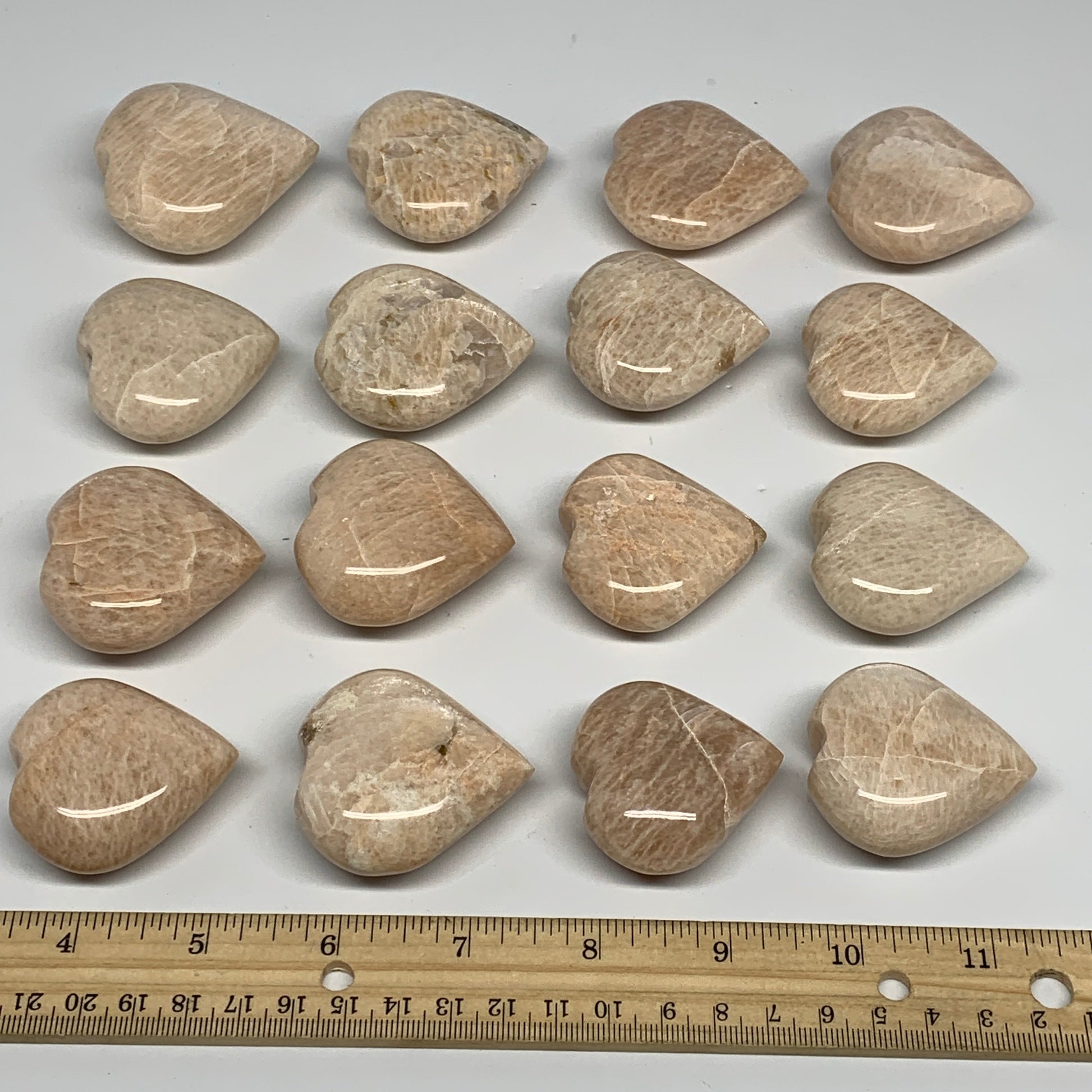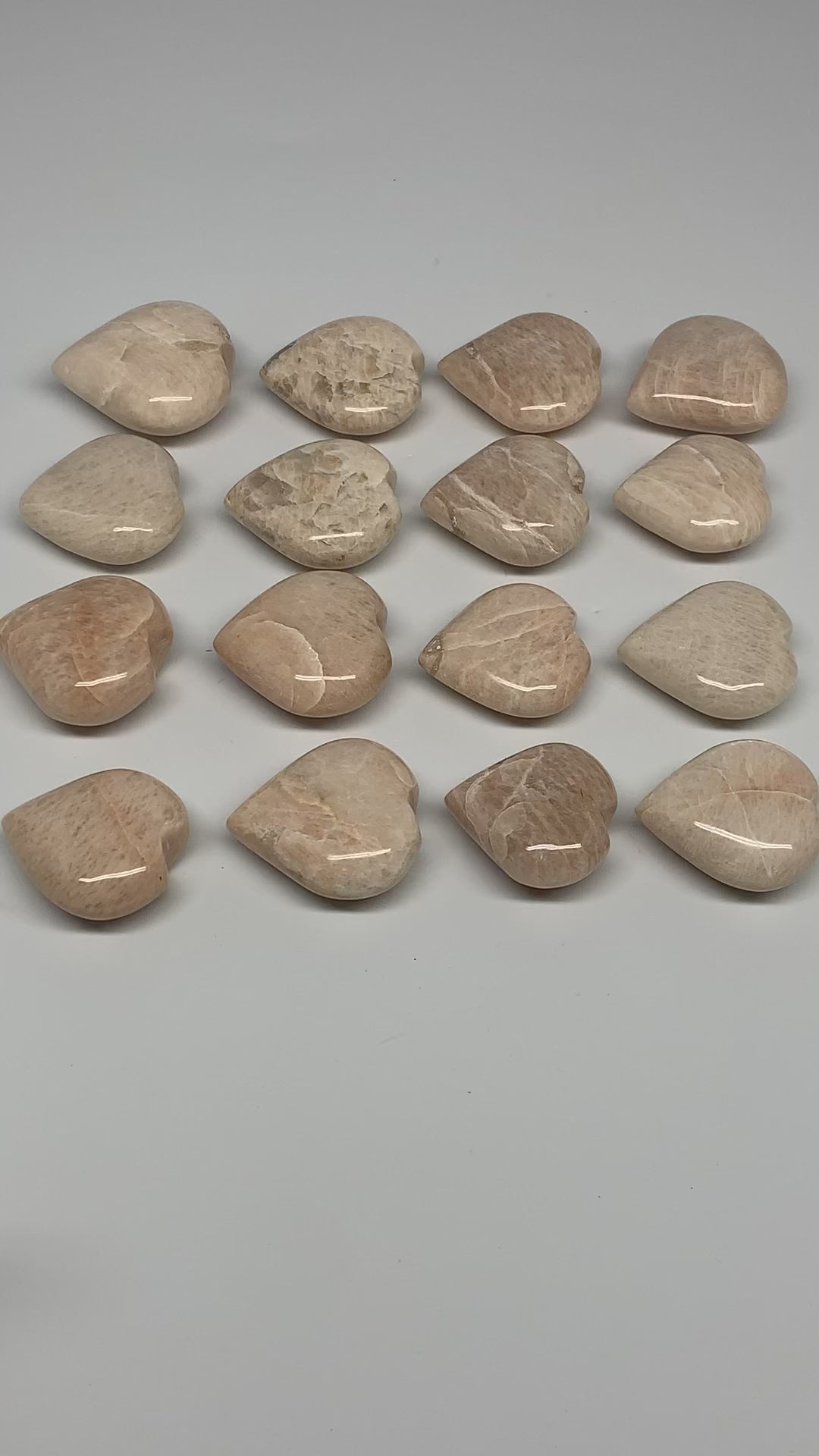 1000g (2.2 lbs) ,16 pcs, 1.7"- 2.2", Peach Moonstone Hearts from India, B2898