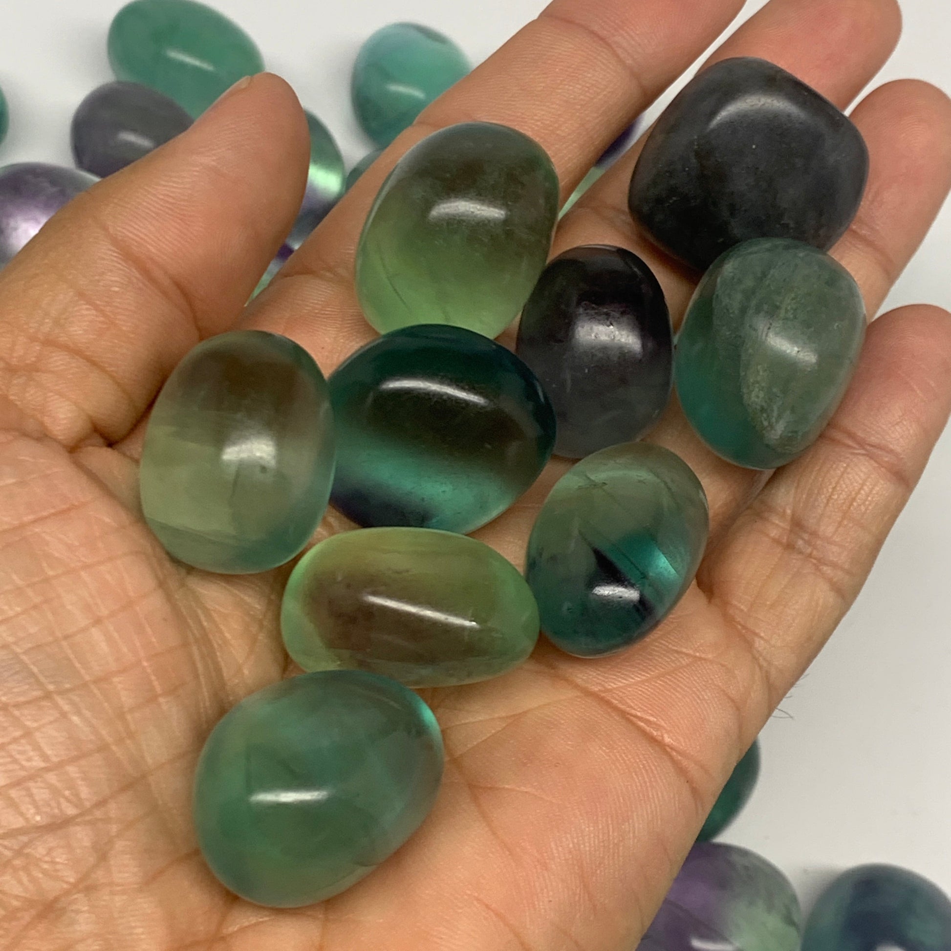 1000g(2.2 lbs),0.9"-1.2",52pcs, Green Fluorite Tumbled Stones @Mozambique,B26927
