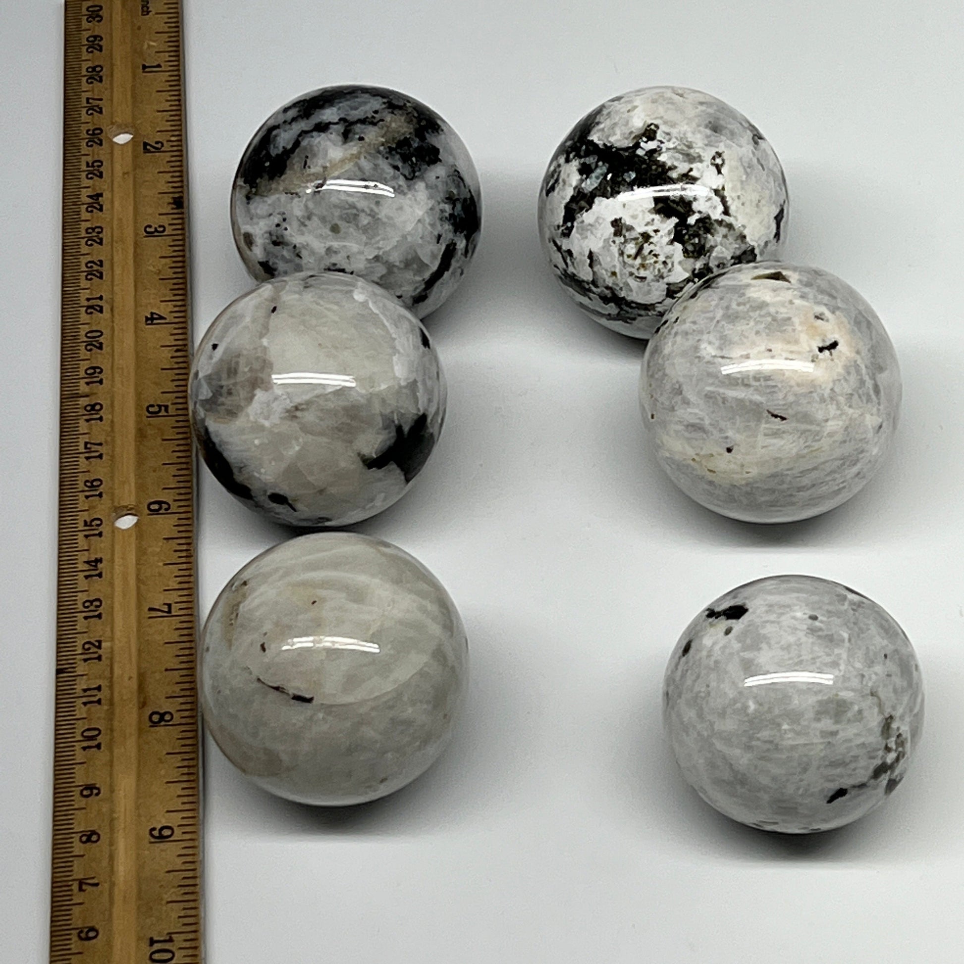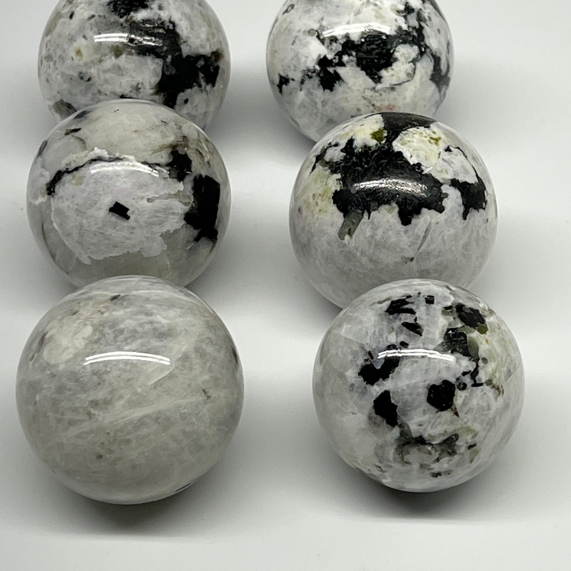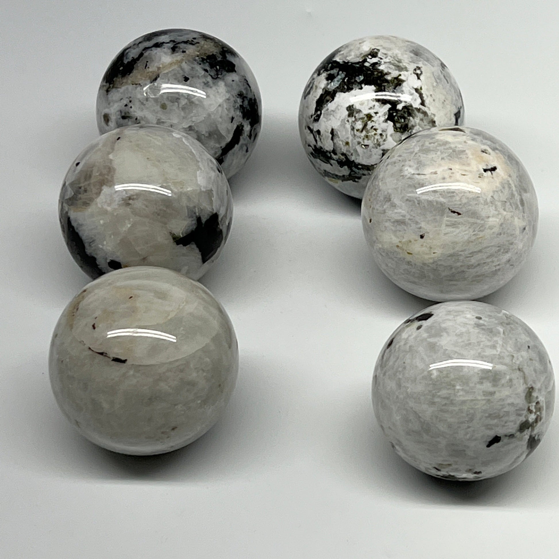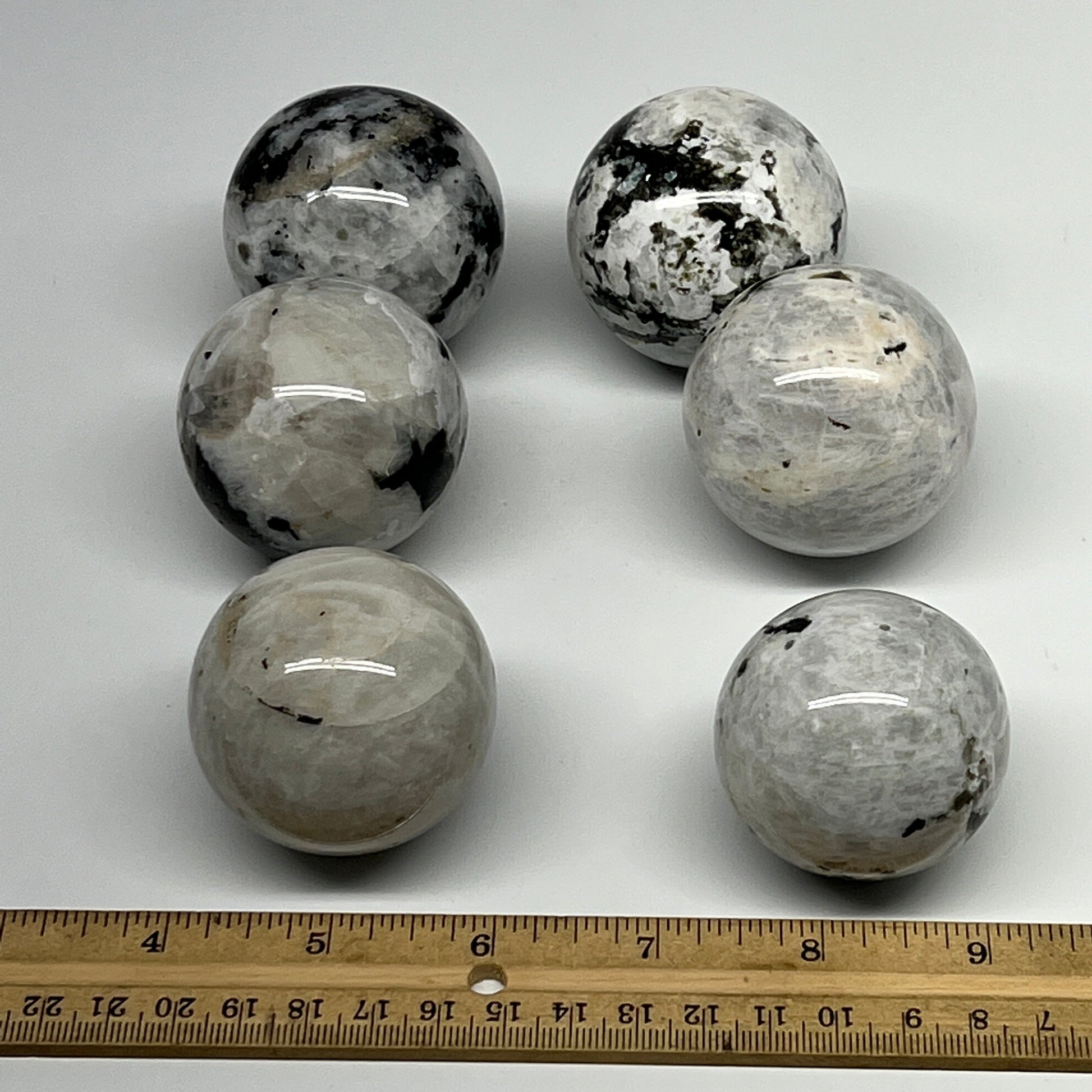 1005g, 1.8" - 2", 6pcs, Rainbow Moonstone Spheres Gemstones @India, B21422