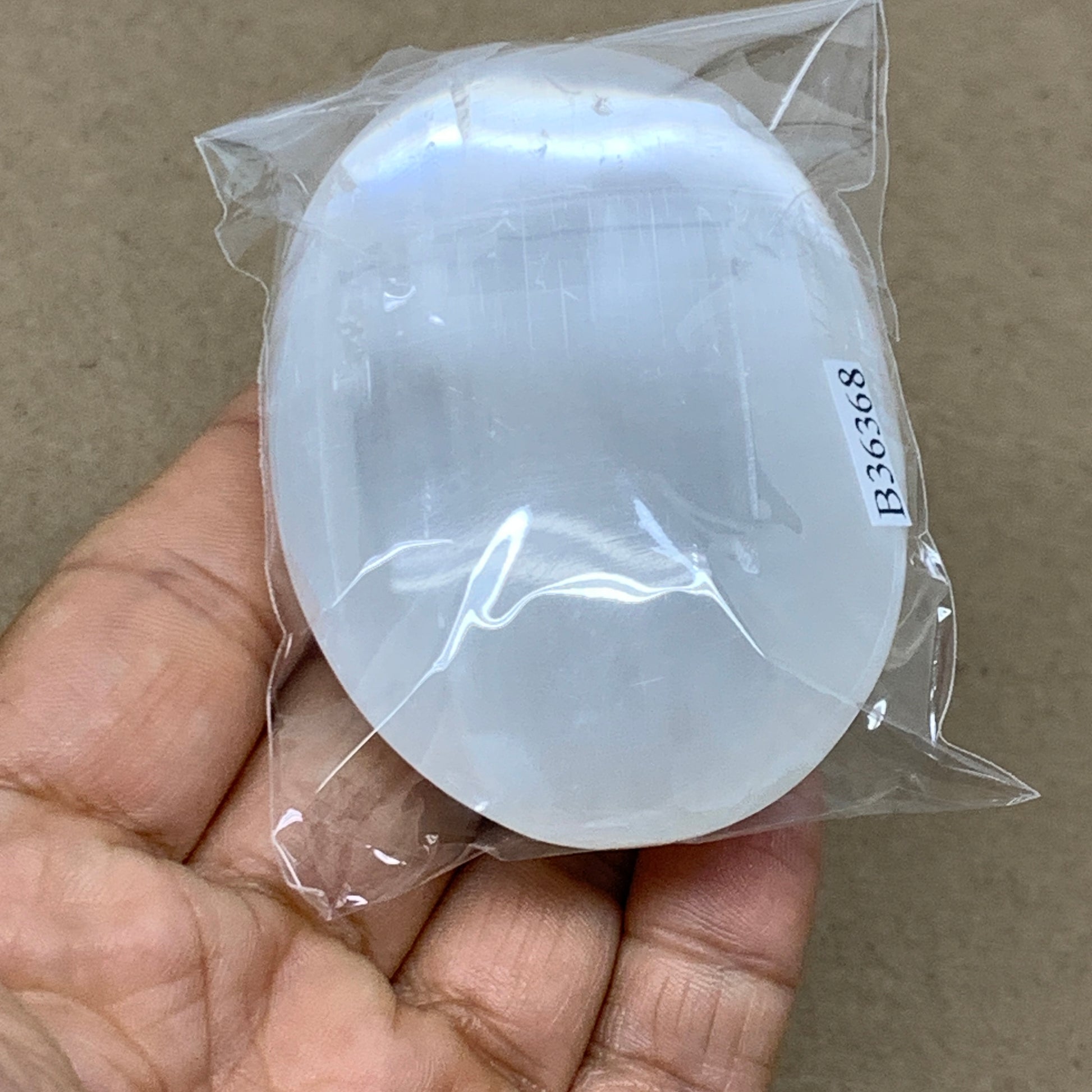 101g, 2.8"x2"x1", White Selenite Palmstone Crystal Pillow Reiki, B36368