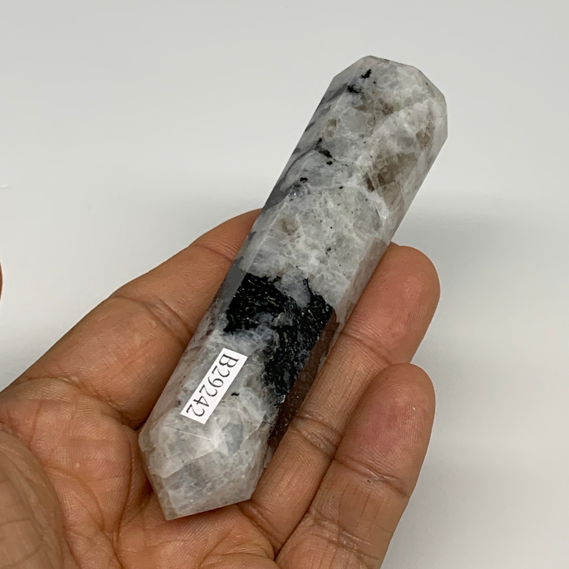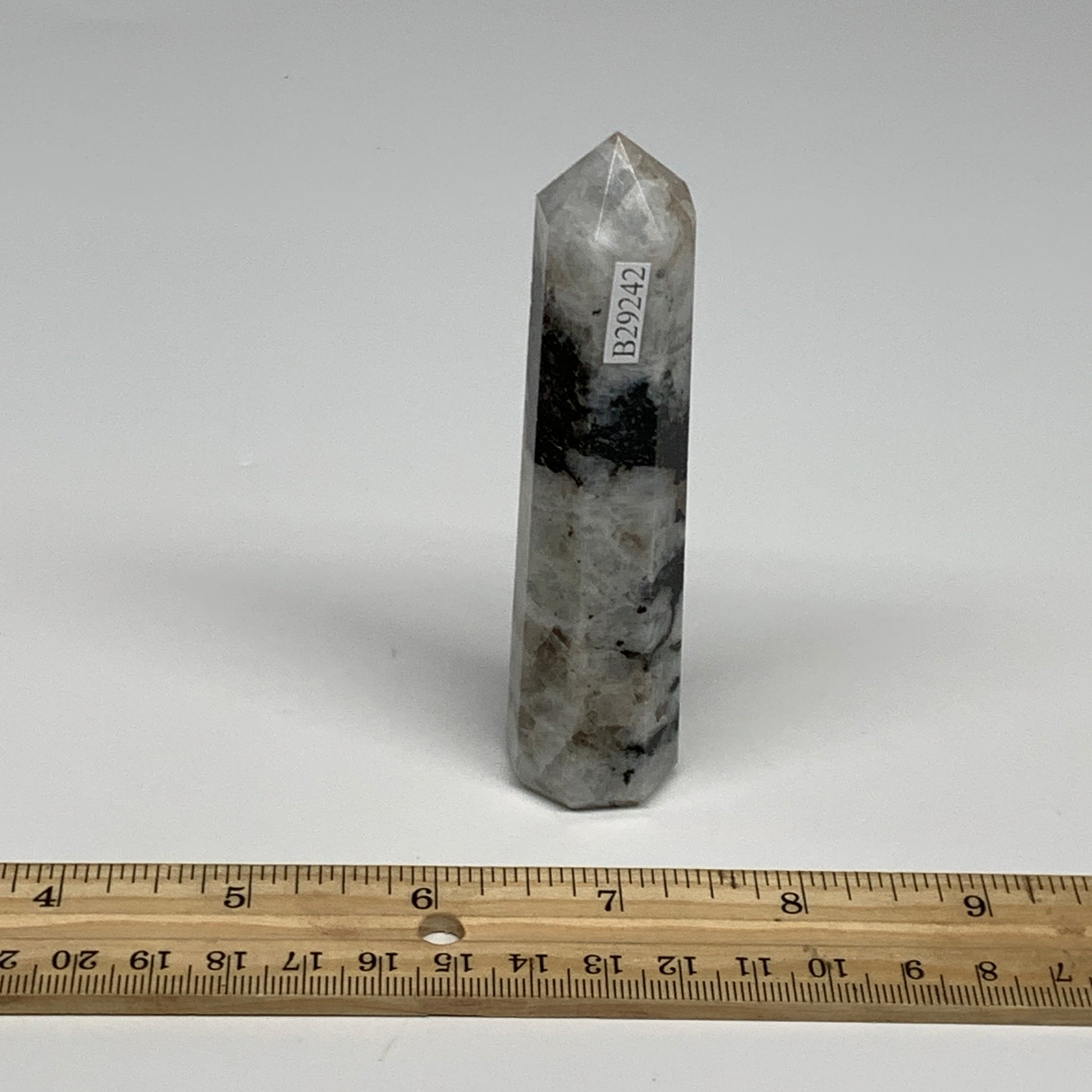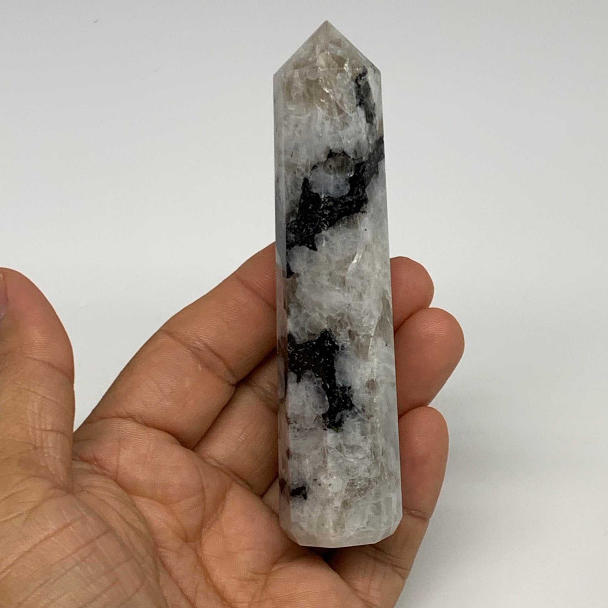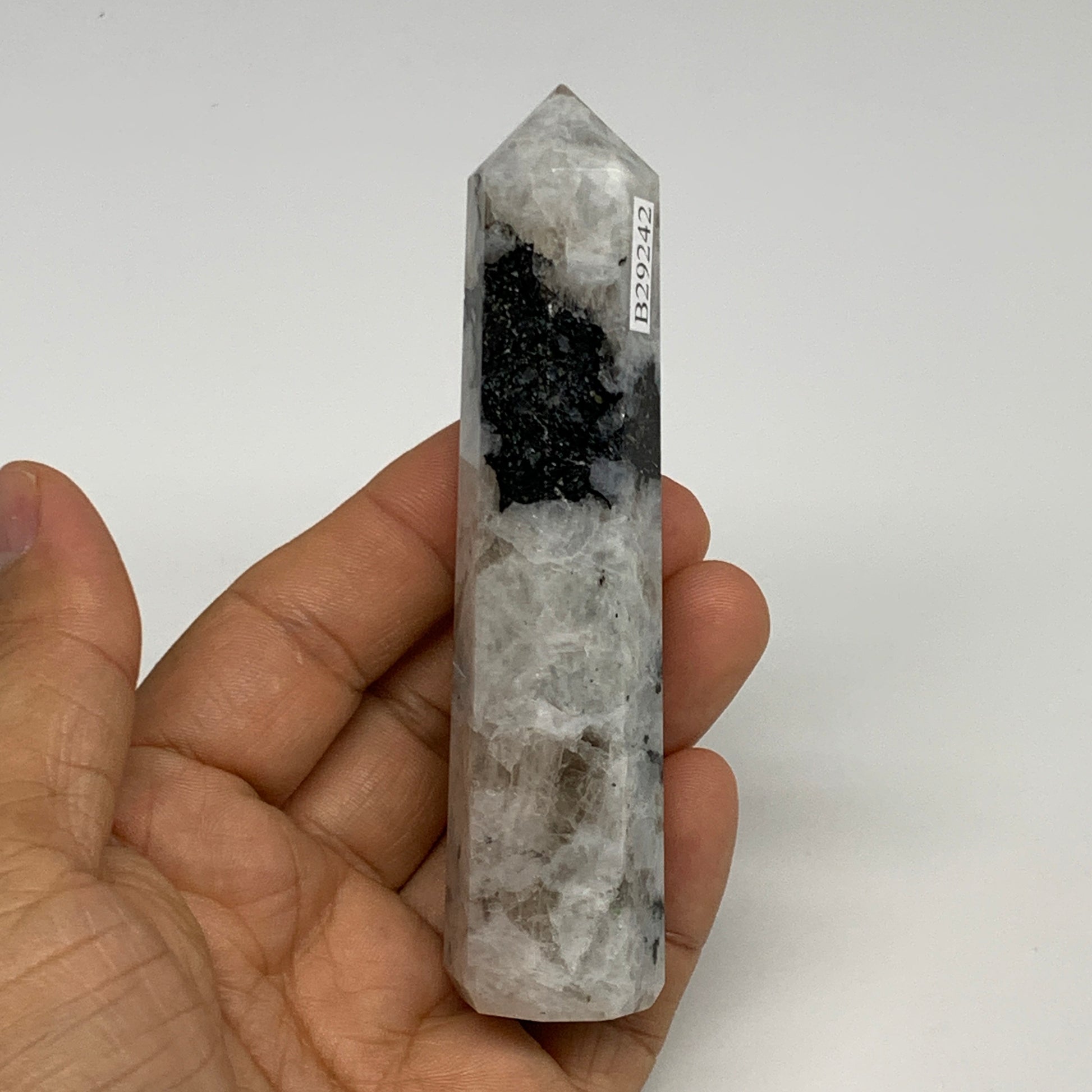 102.4g, 4.1"x0.9", Rainbow Moonstone Tower Obelisk Point Crystal @India, B29242