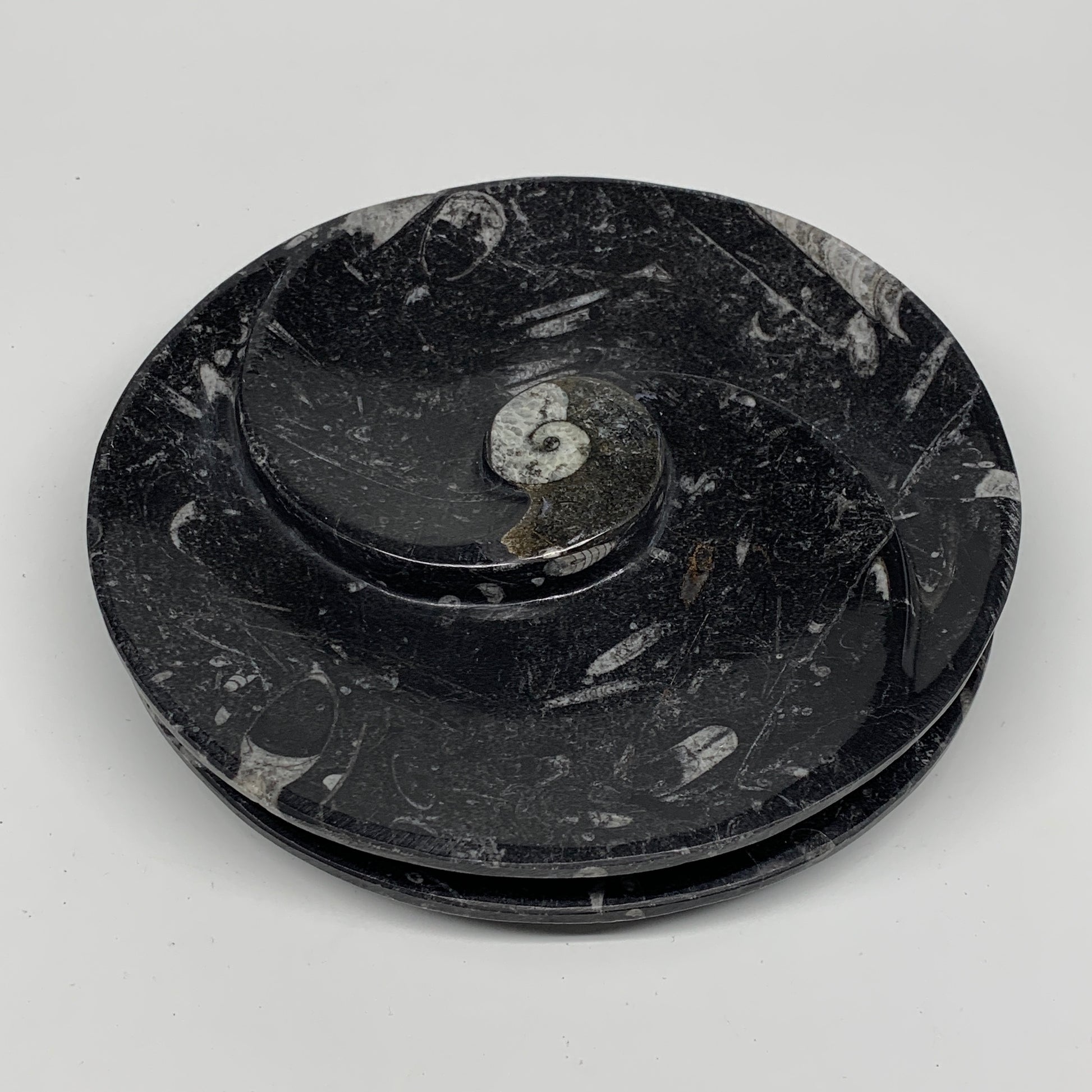 1024g, 2pcs Set,7" Fossils Orthoceras Bowls Round Ammonite Ring @Morocco,B8830