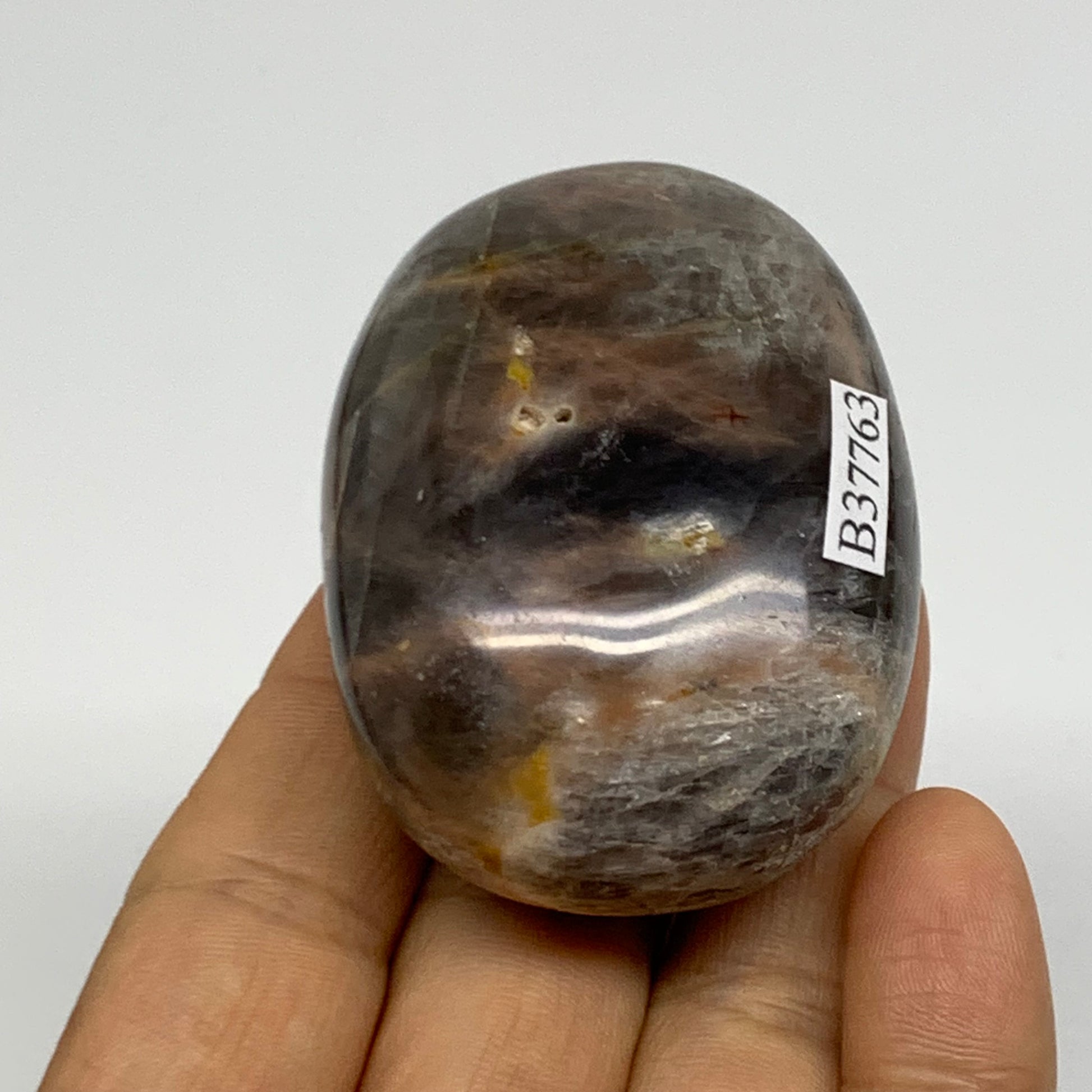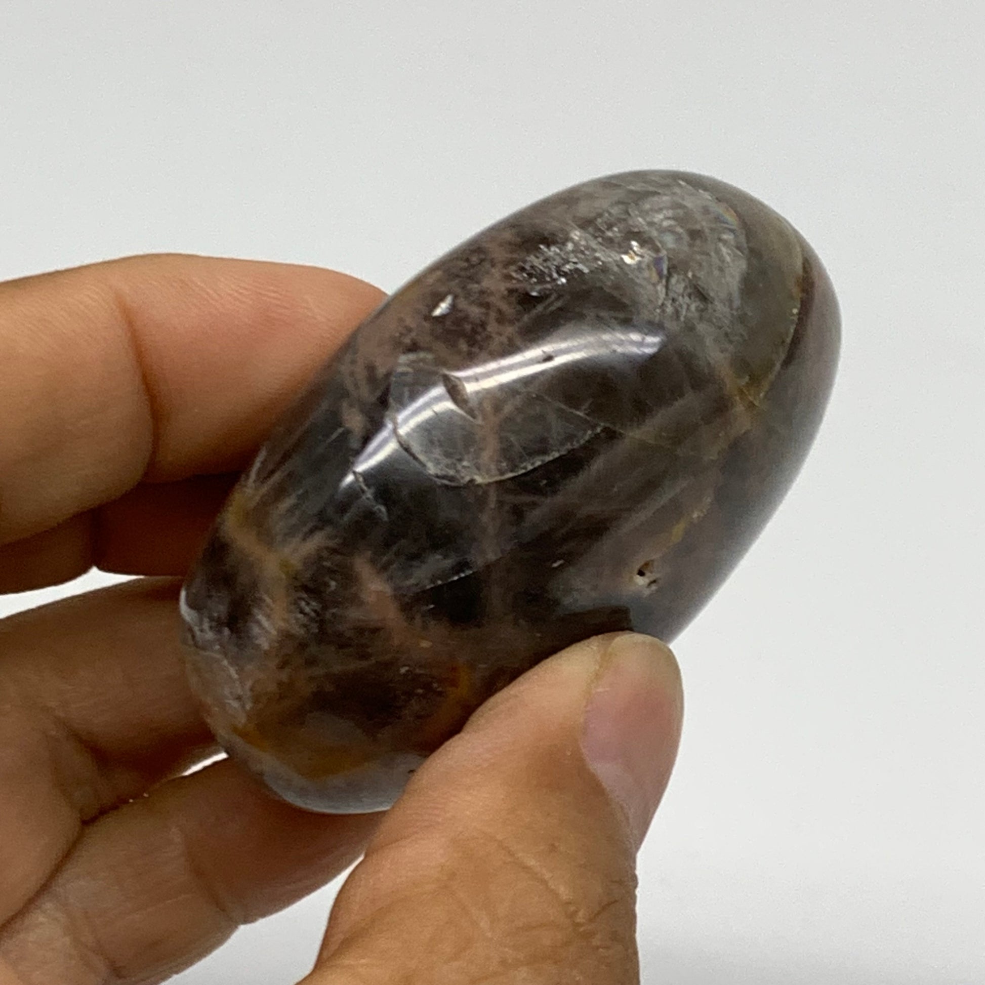 102g, 2.2"x1.7"x1.1", Black Moonstone Crystal Palm-Stone Polished, B37763