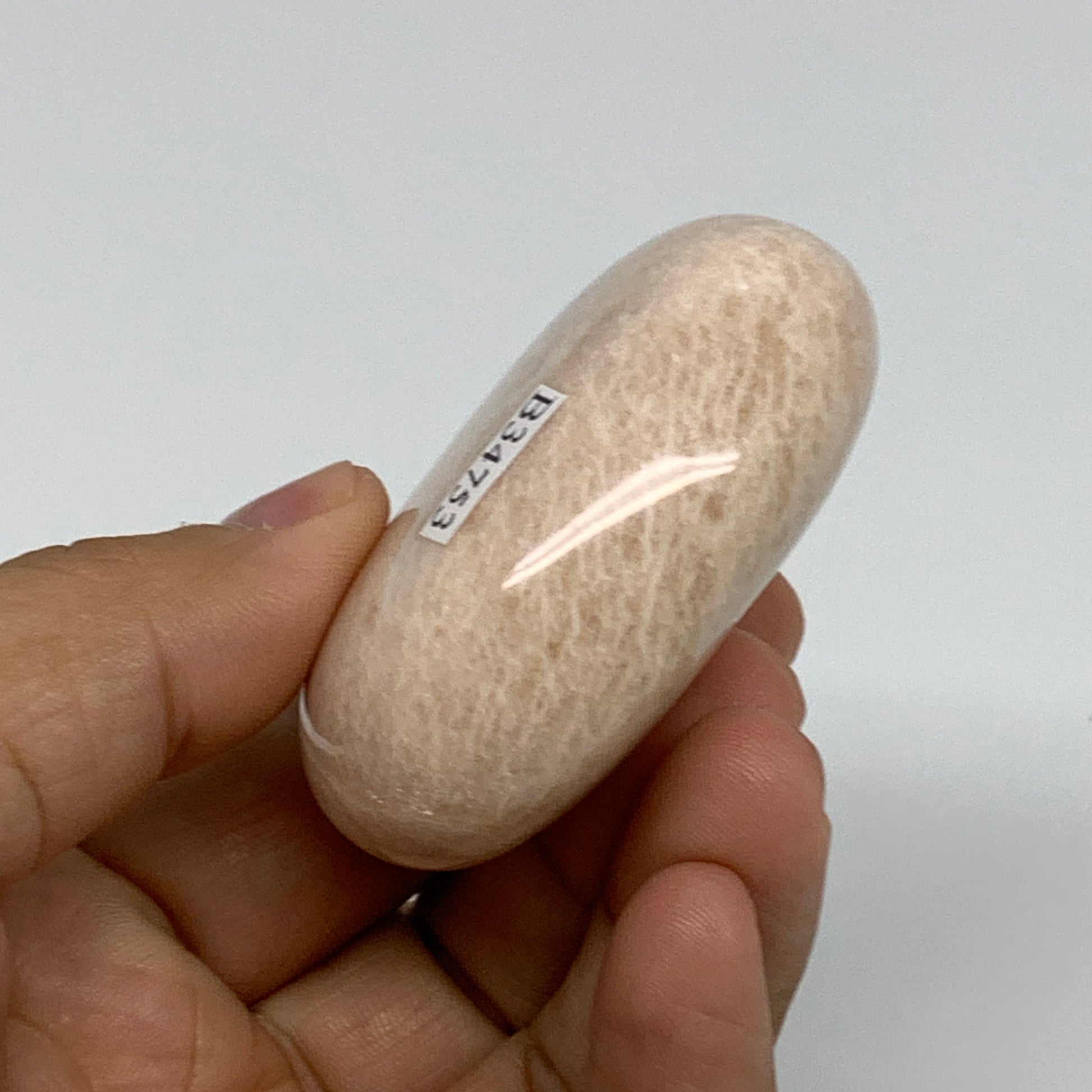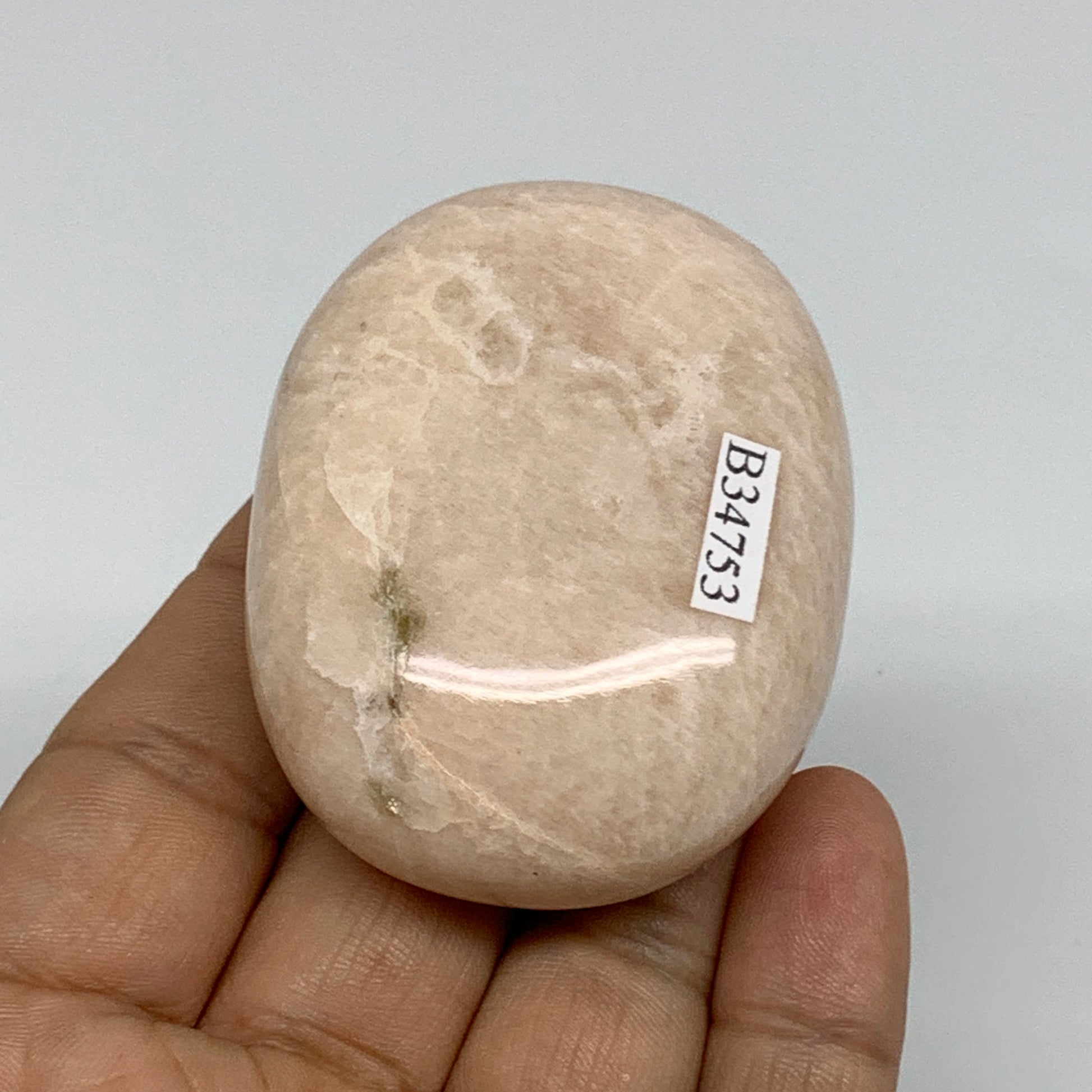 103.2g,2.3"x1.8"x1", Peach Moonstone Polished Palm-Stone Gemstone, B34753