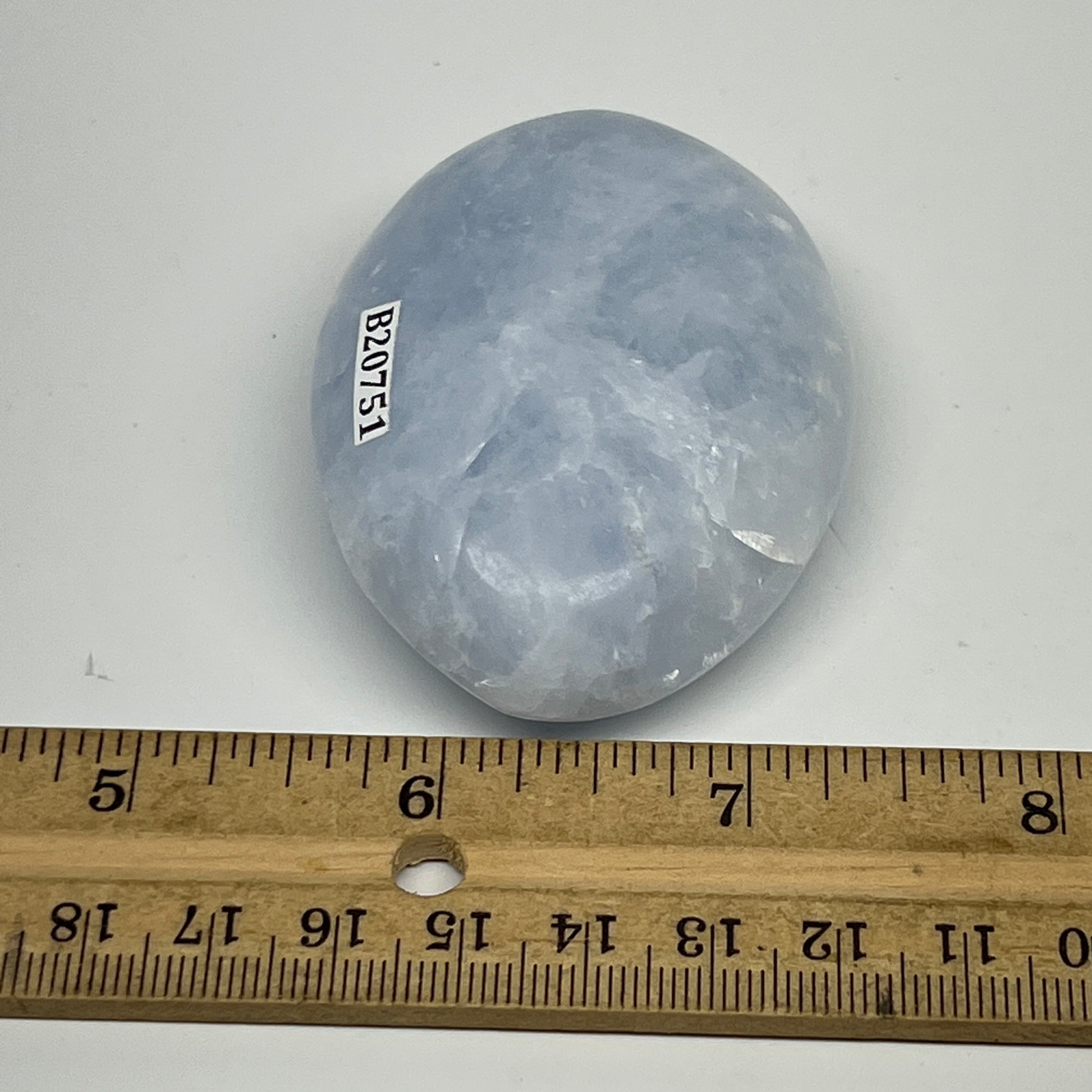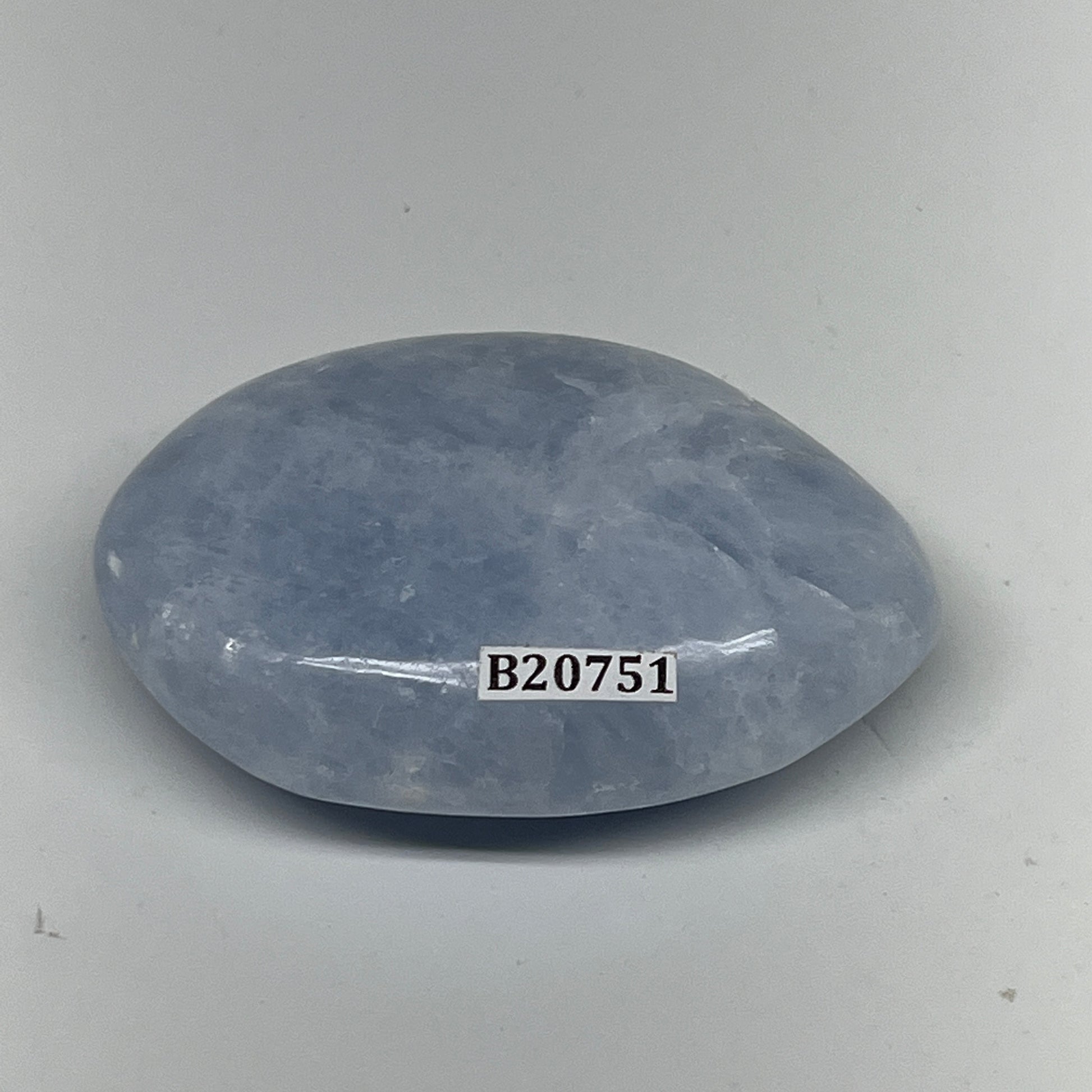 103.7g, 2.6"x1.9"x1" Blue Calcite Small Palm-Stone Tumbled @Madagascar, B20751