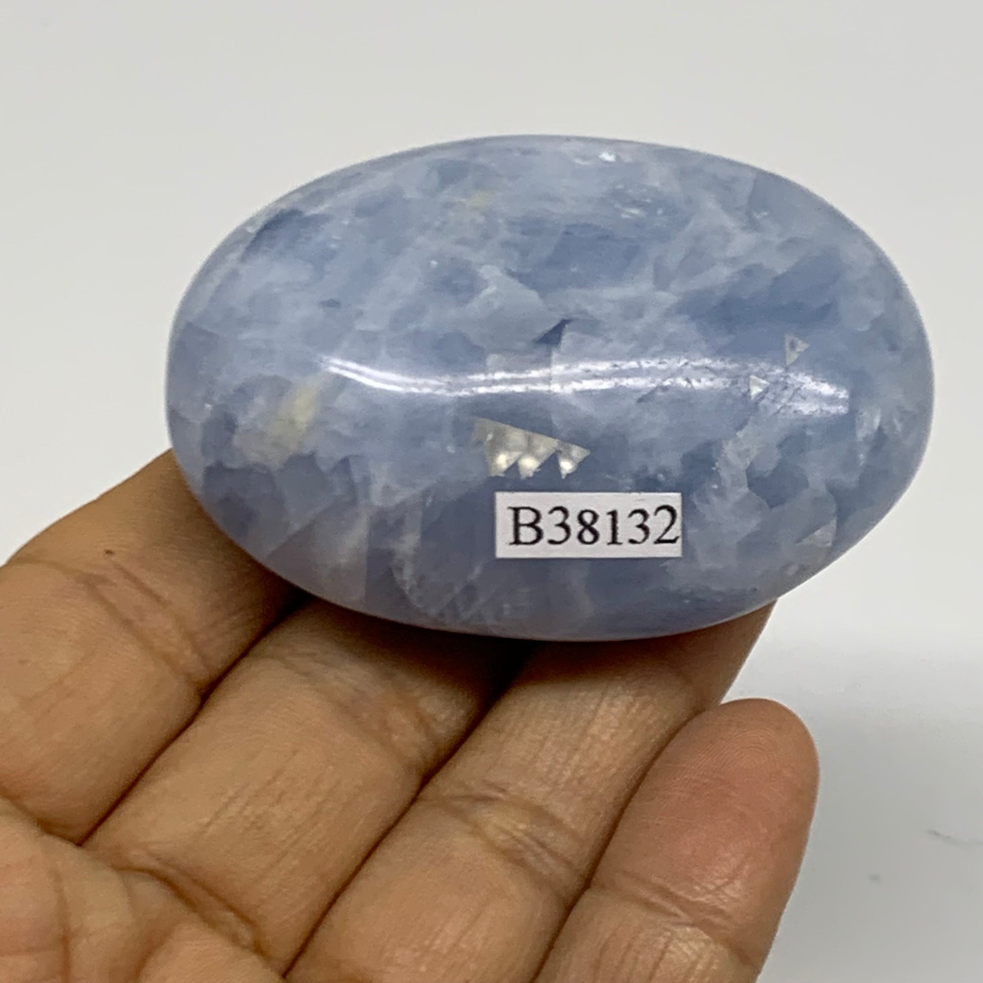 103g, 2.4"x1.7"x1" Blue Calcite Palm-Stone Polished Tumbled, B38132