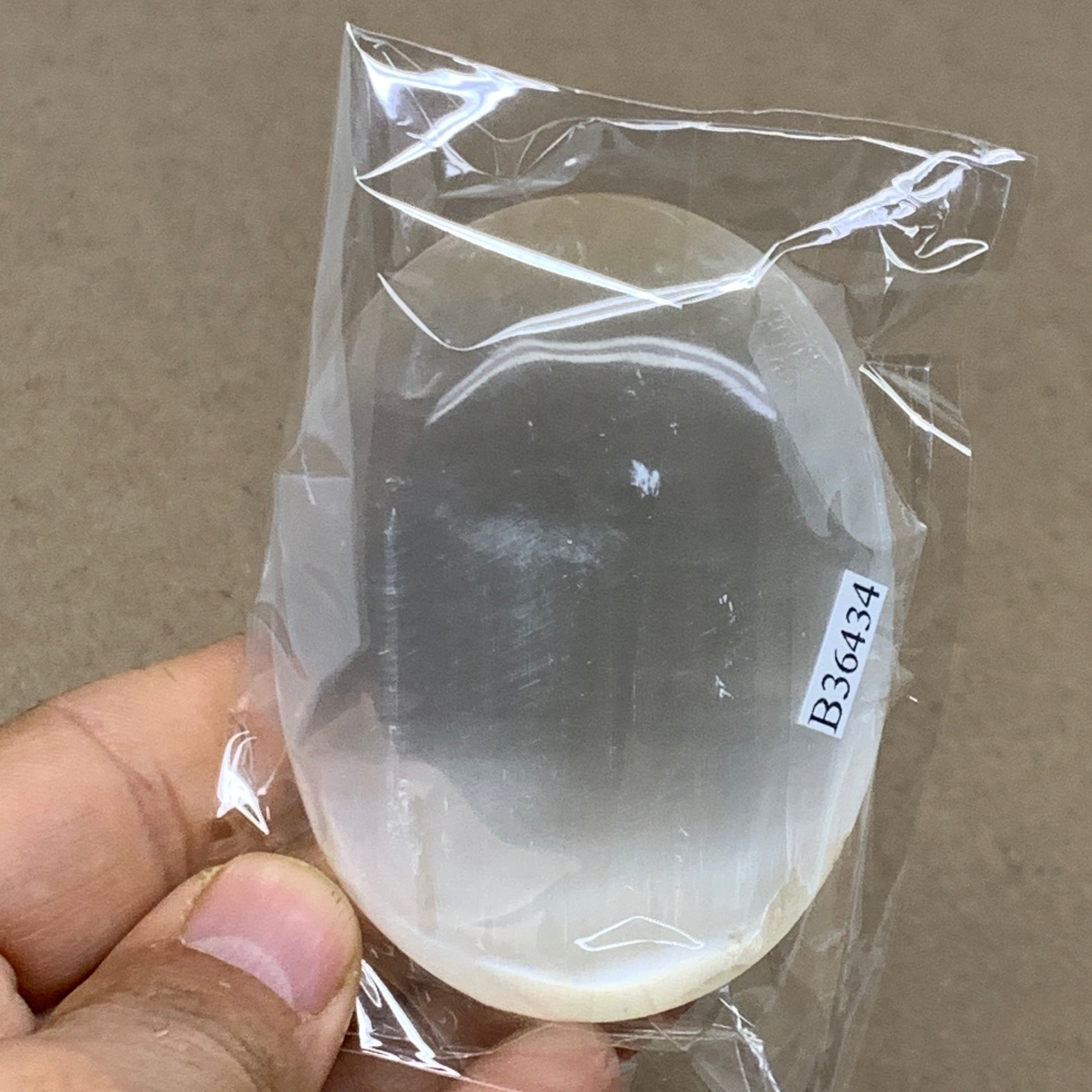 103g, 2.8"x2.1"x0.9", White Selenite Palmstone Crystal Pillow Reiki, B36434