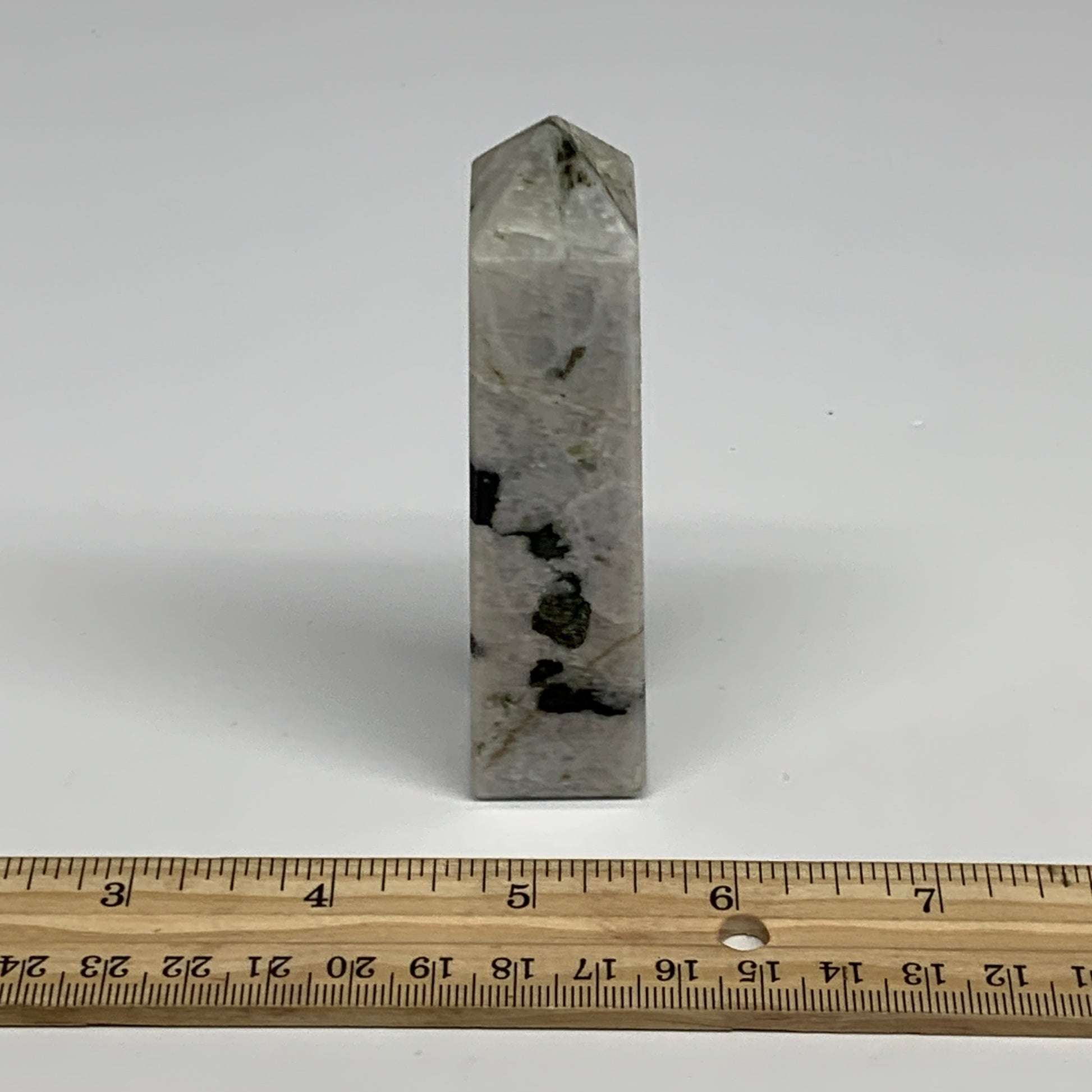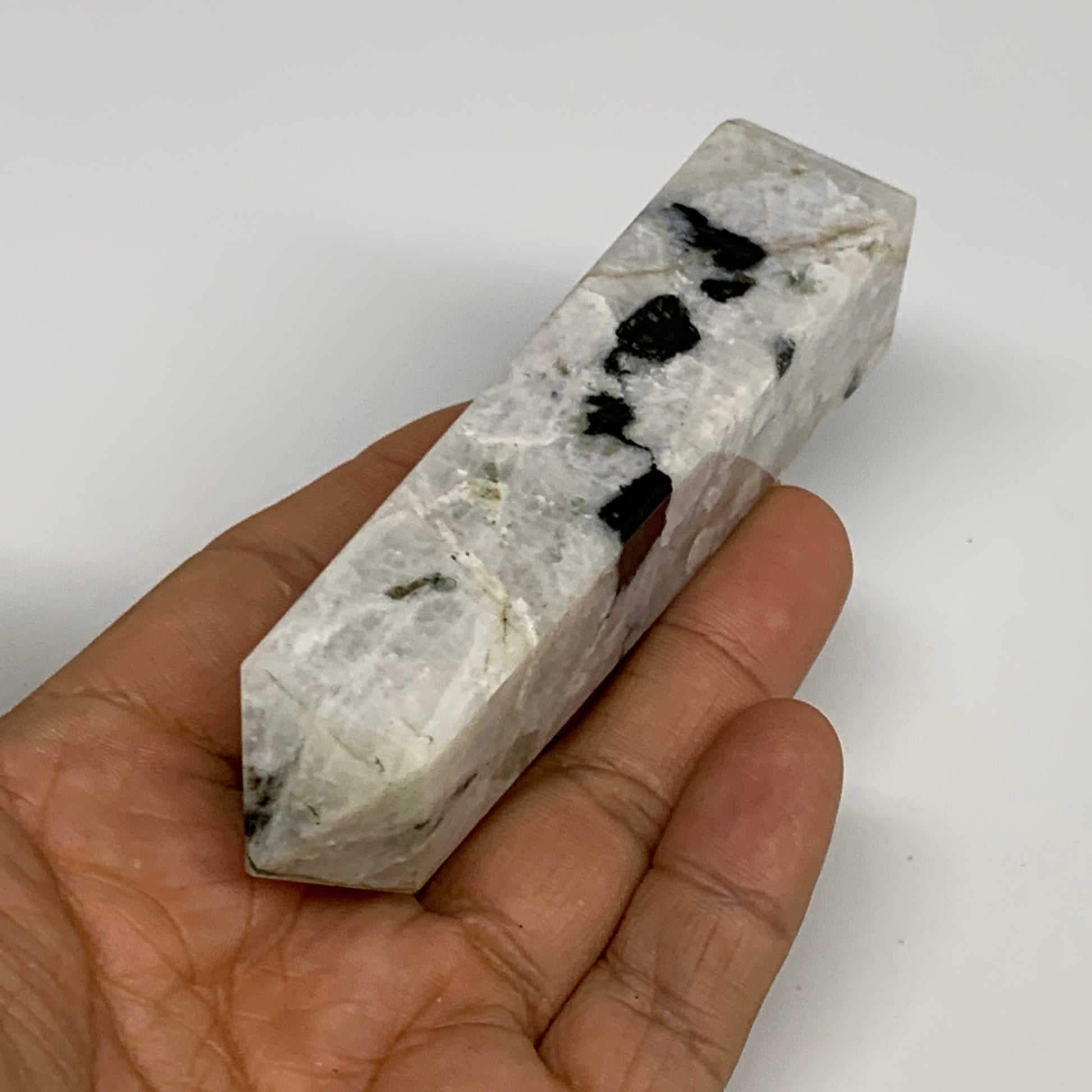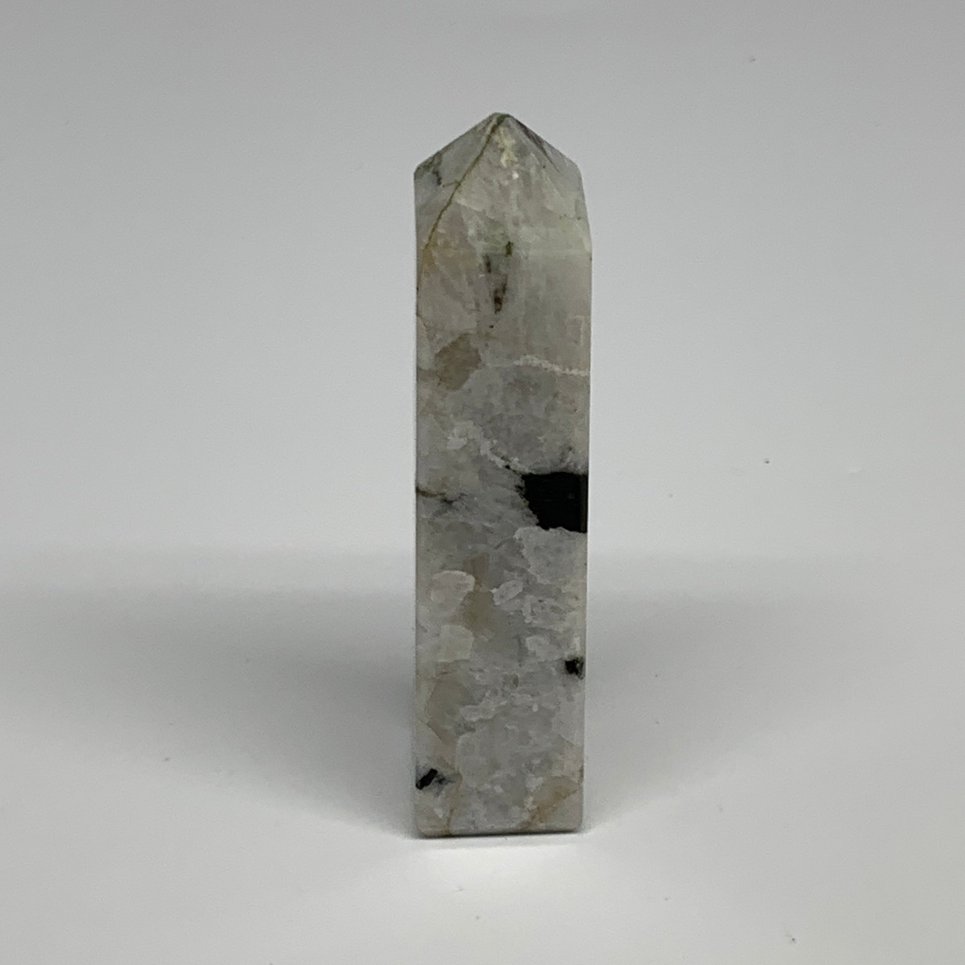 104.6g, 4"x0.8"x0.9" Rainbow Moonstone Tower Obelisk Point Crystal @India,B29295