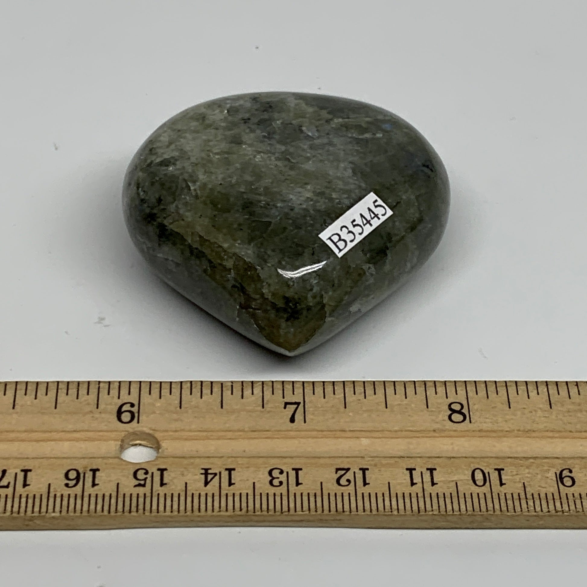 104.8g, 2.1"x2.2"x0.9", Natural Labradorite Heart Polished Crystal, B35445