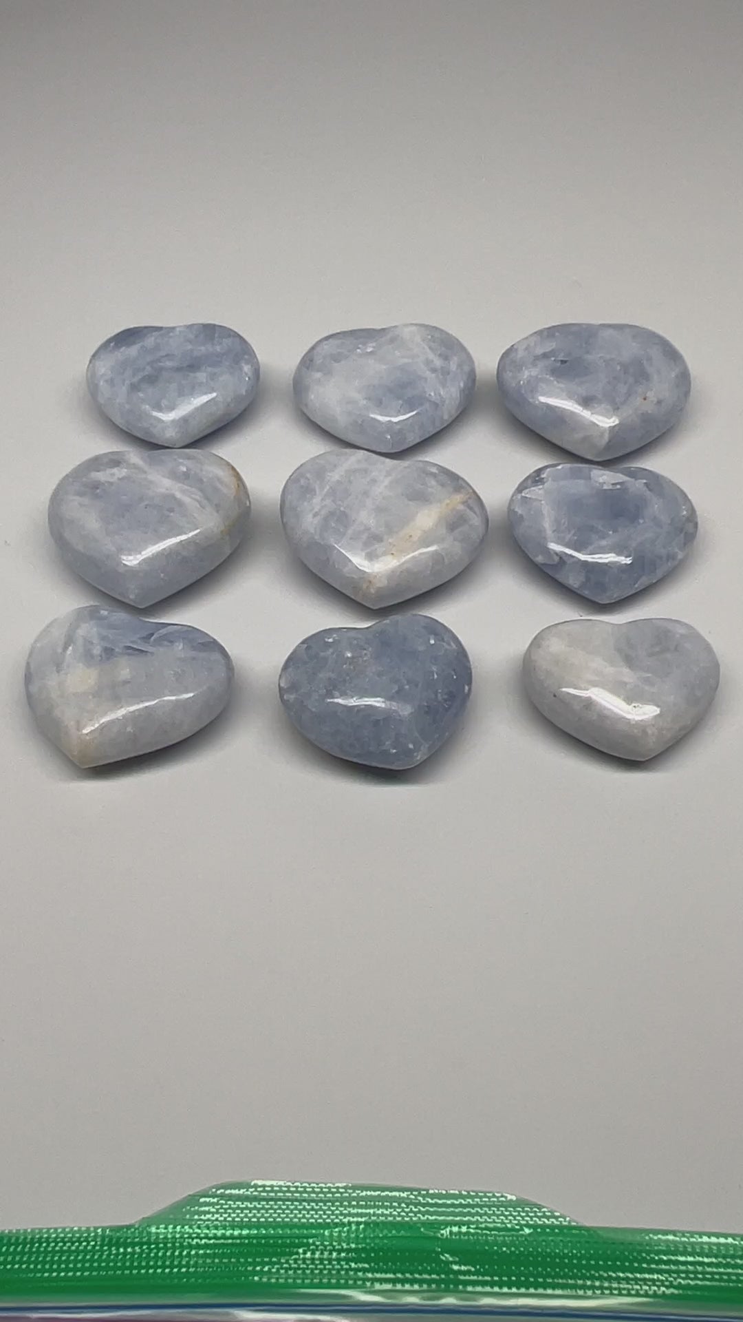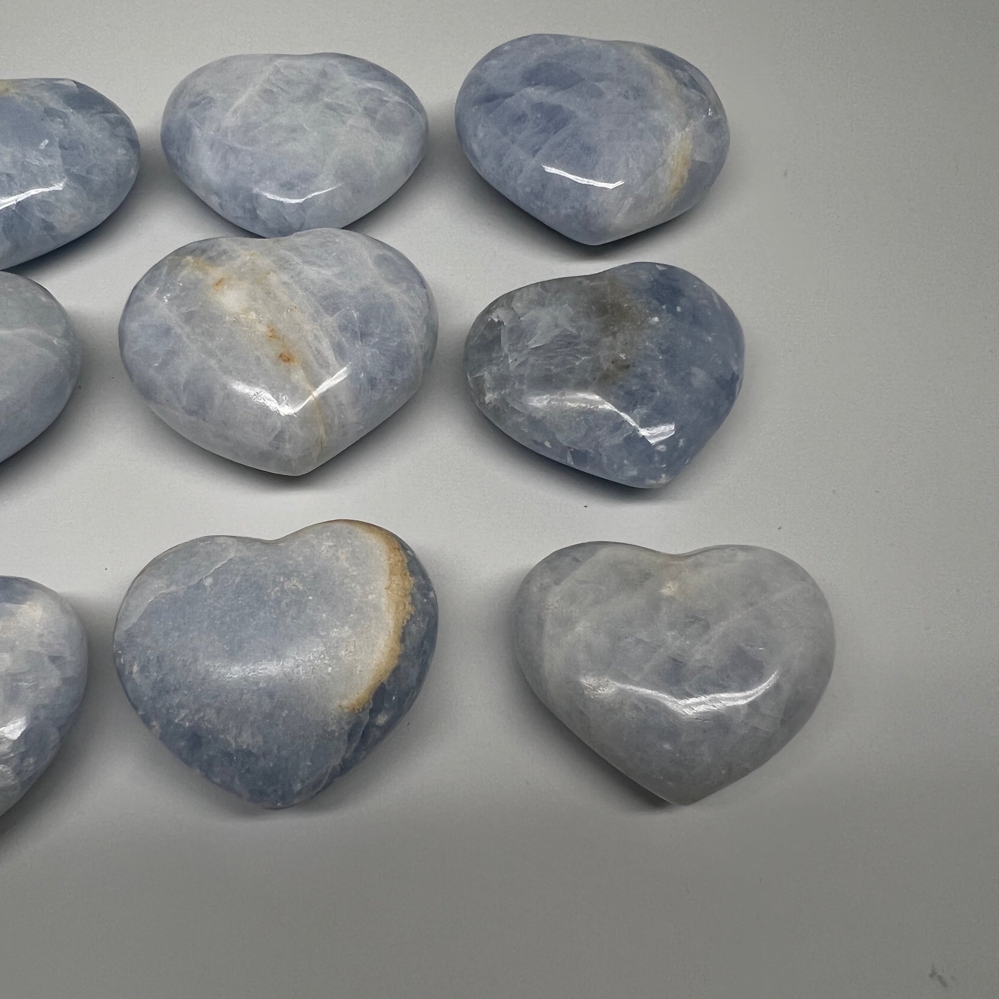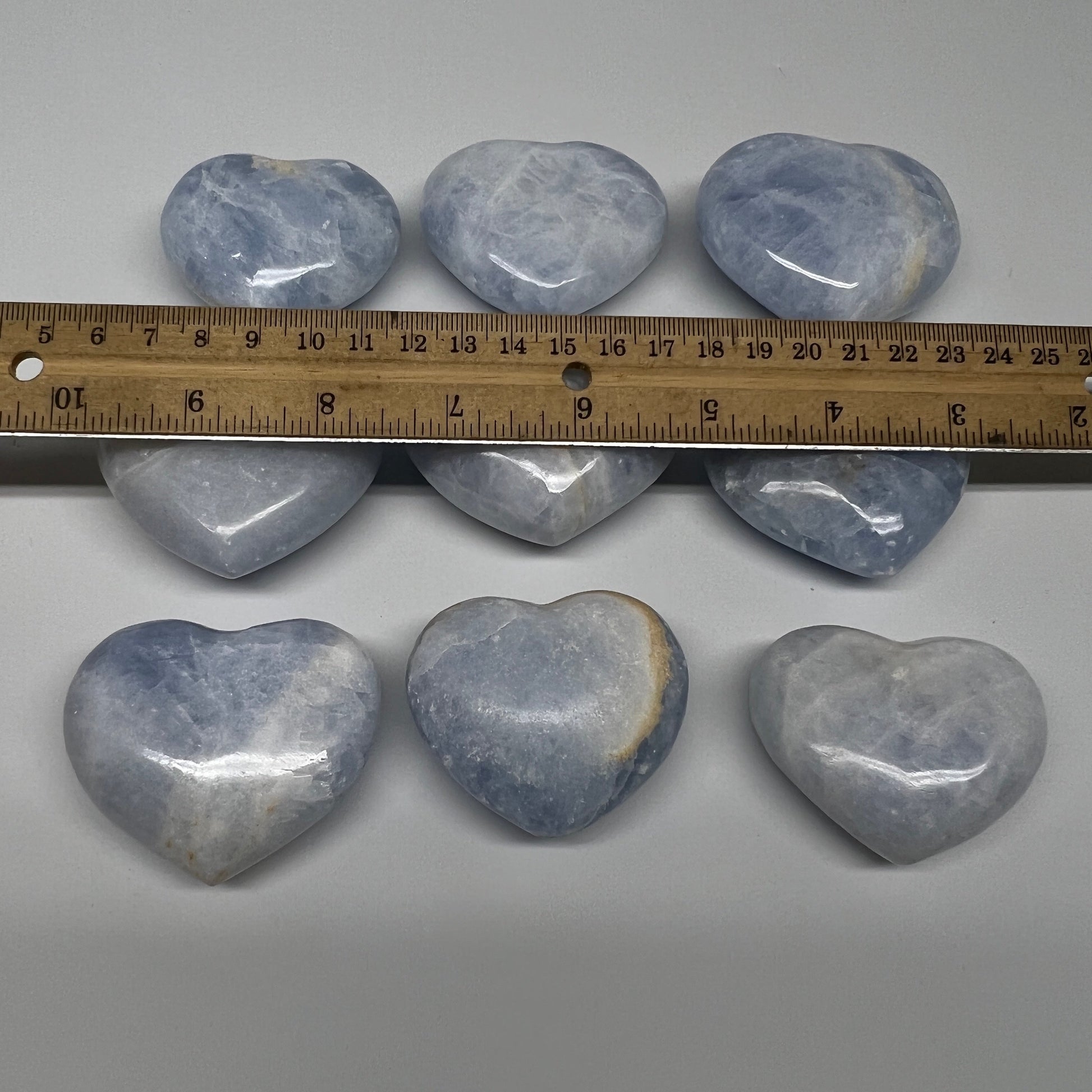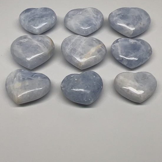 1040g (2.2 lbs) , 9 pcs, 1.7"- 2.3", Blue Calcite Hearts from Madagascar, B20854