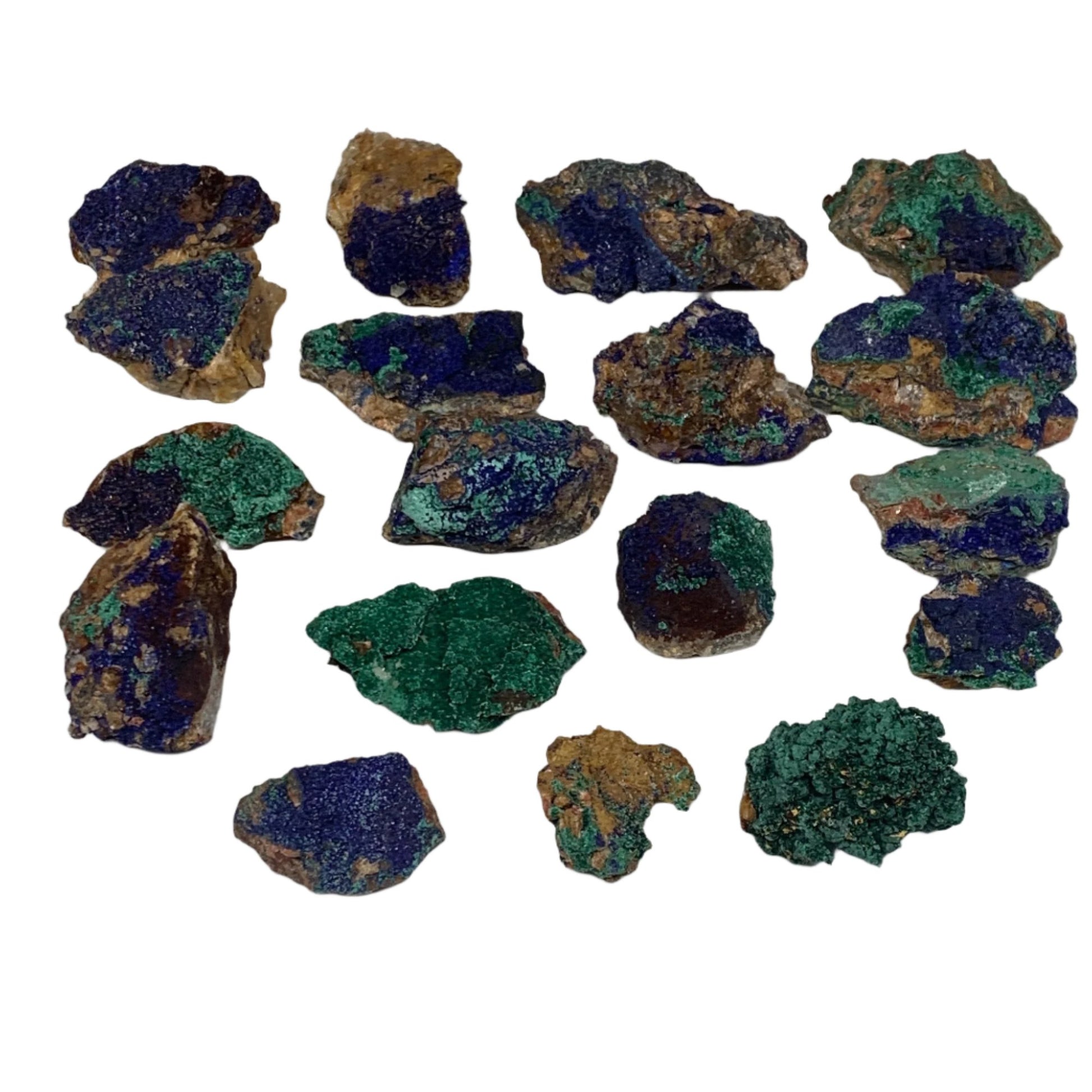 1042g, 1.4"-3", 18pcs Lot, Azurite Malachite Mineral Specimen @Morocco, B11285