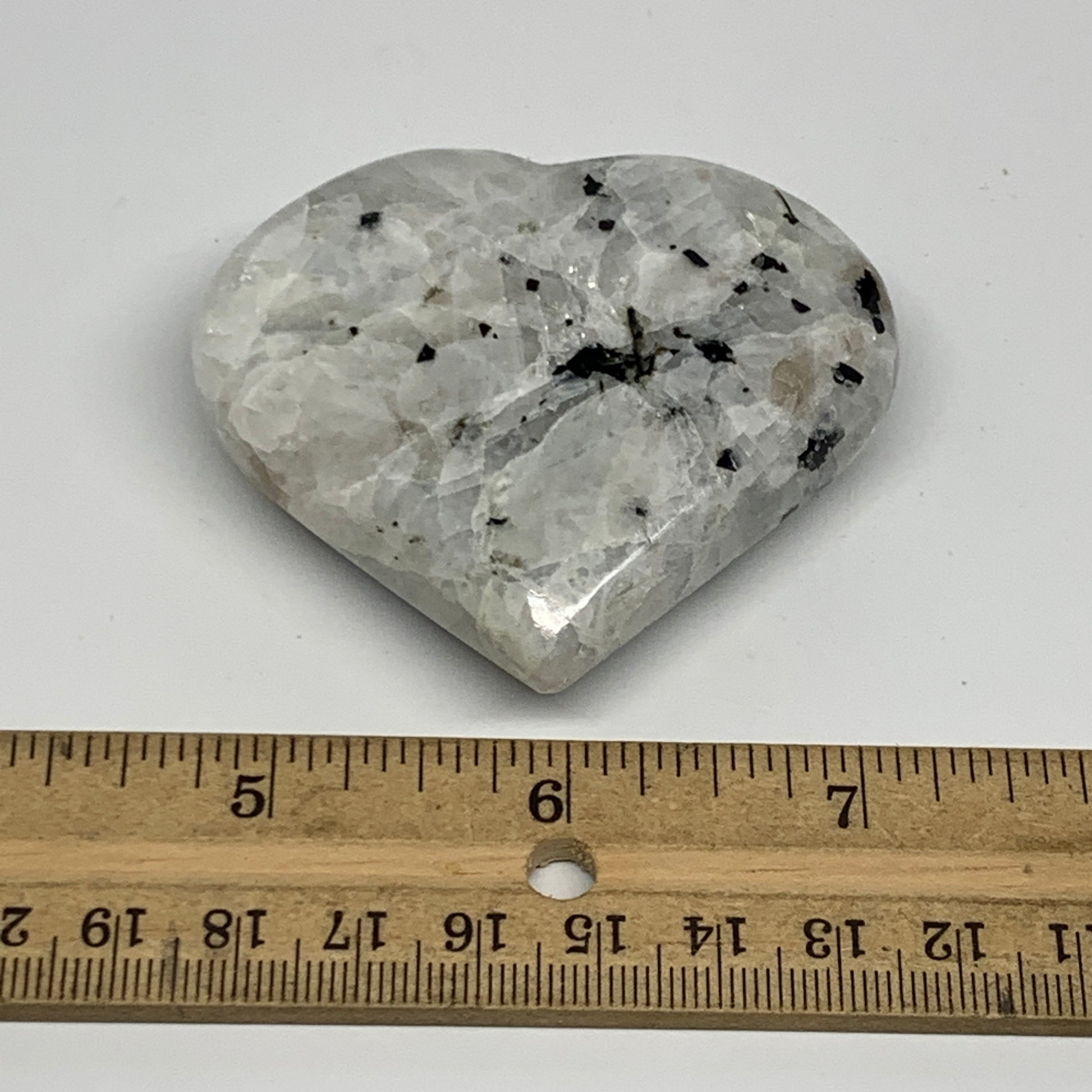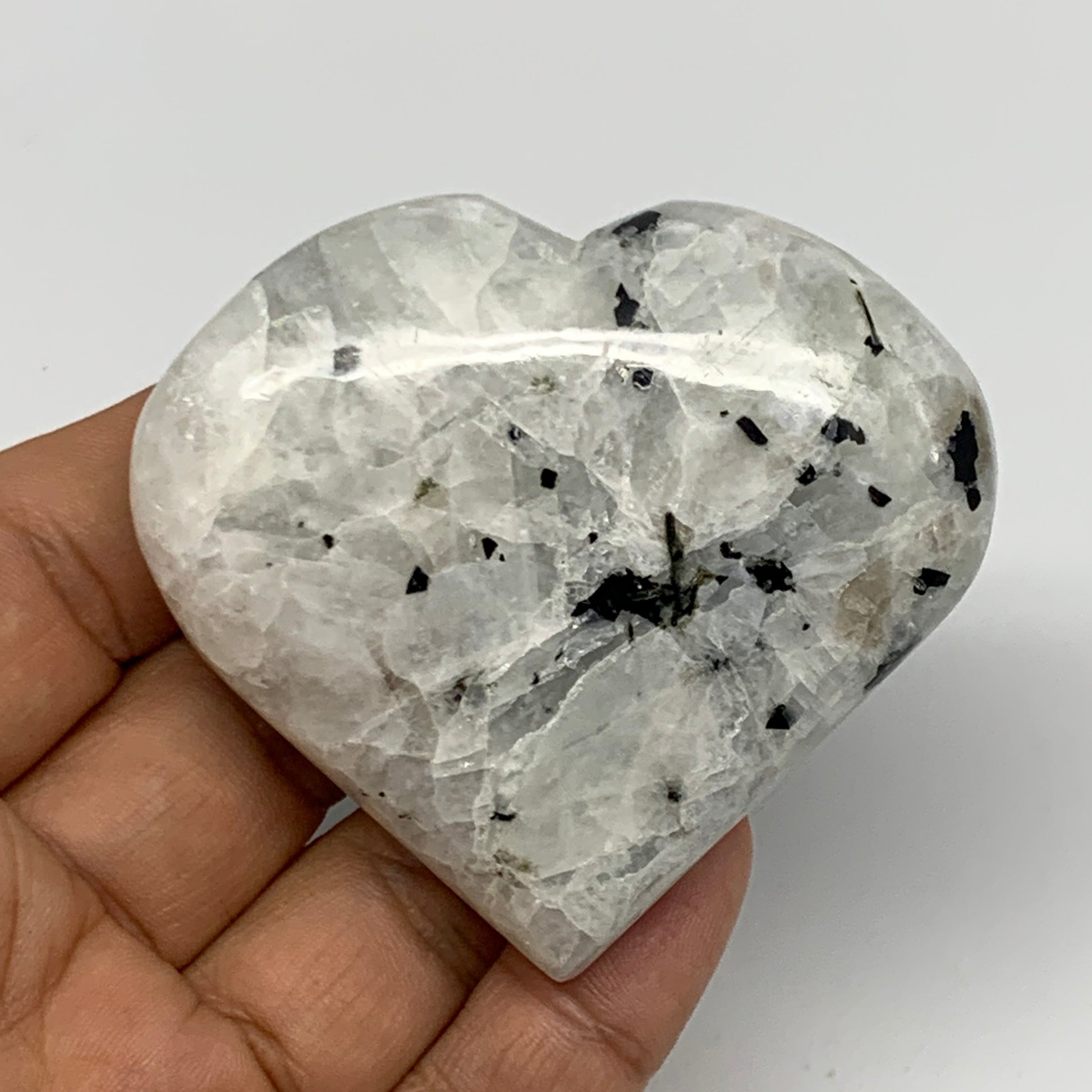 105.6g, 2.3"x2.6"x0.8", Rainbow Moonstone Heart Crystal Gemstone @India, B21725