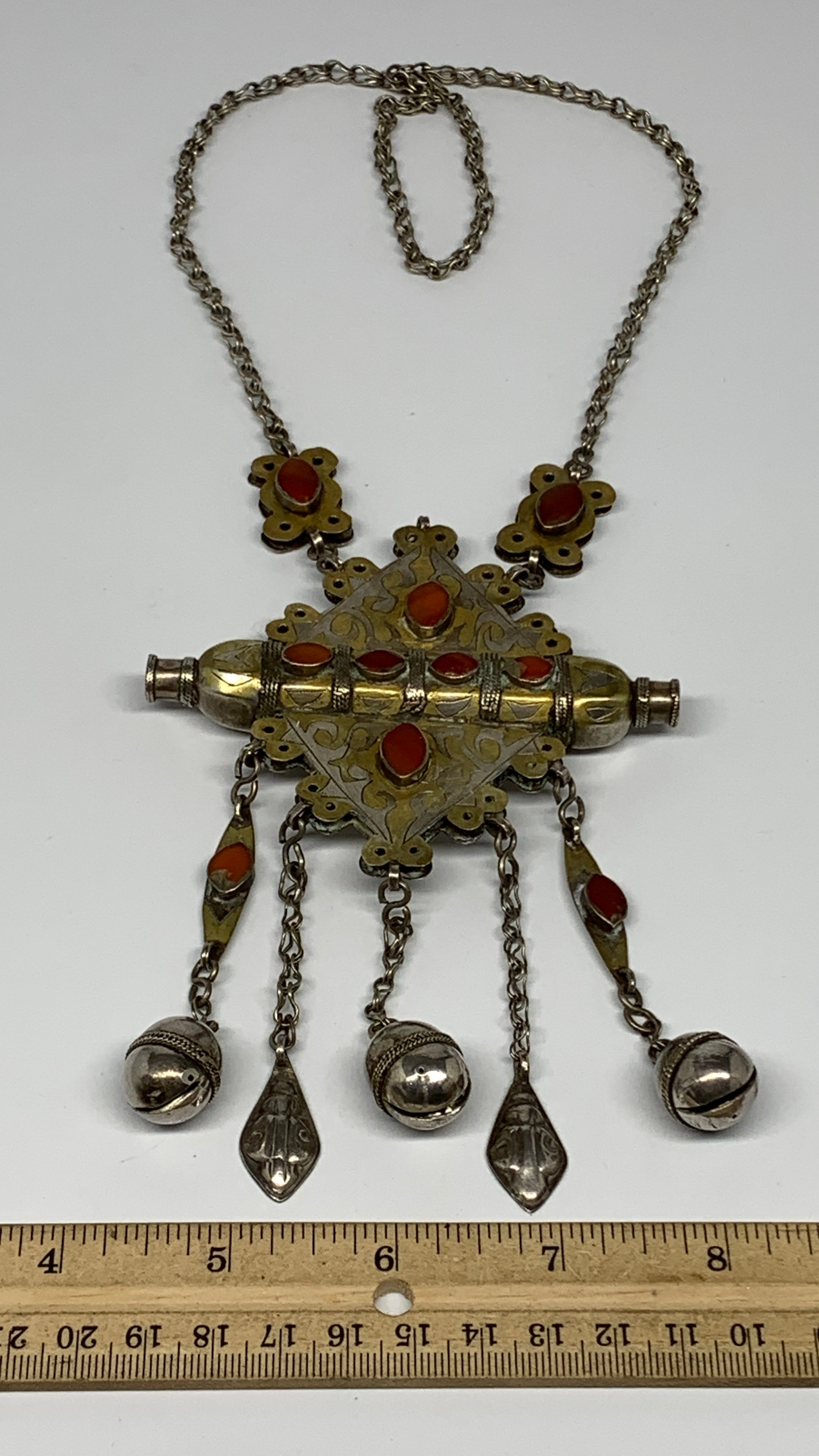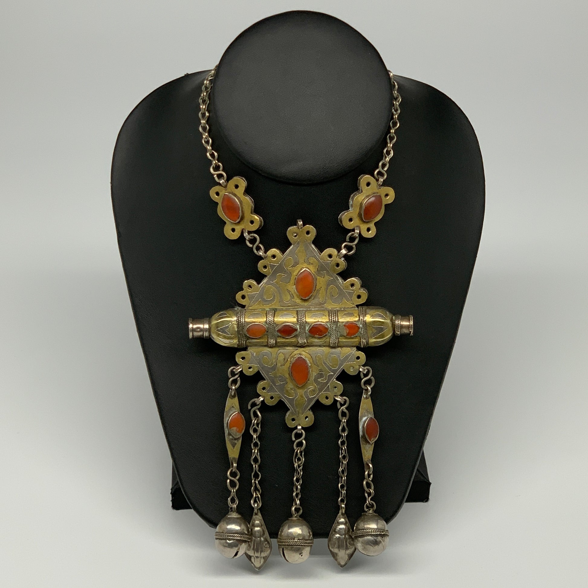 105.6g, 24" Vintage Turkmen Necklace Gold-Gilded Silver Rare Pendant, B14490