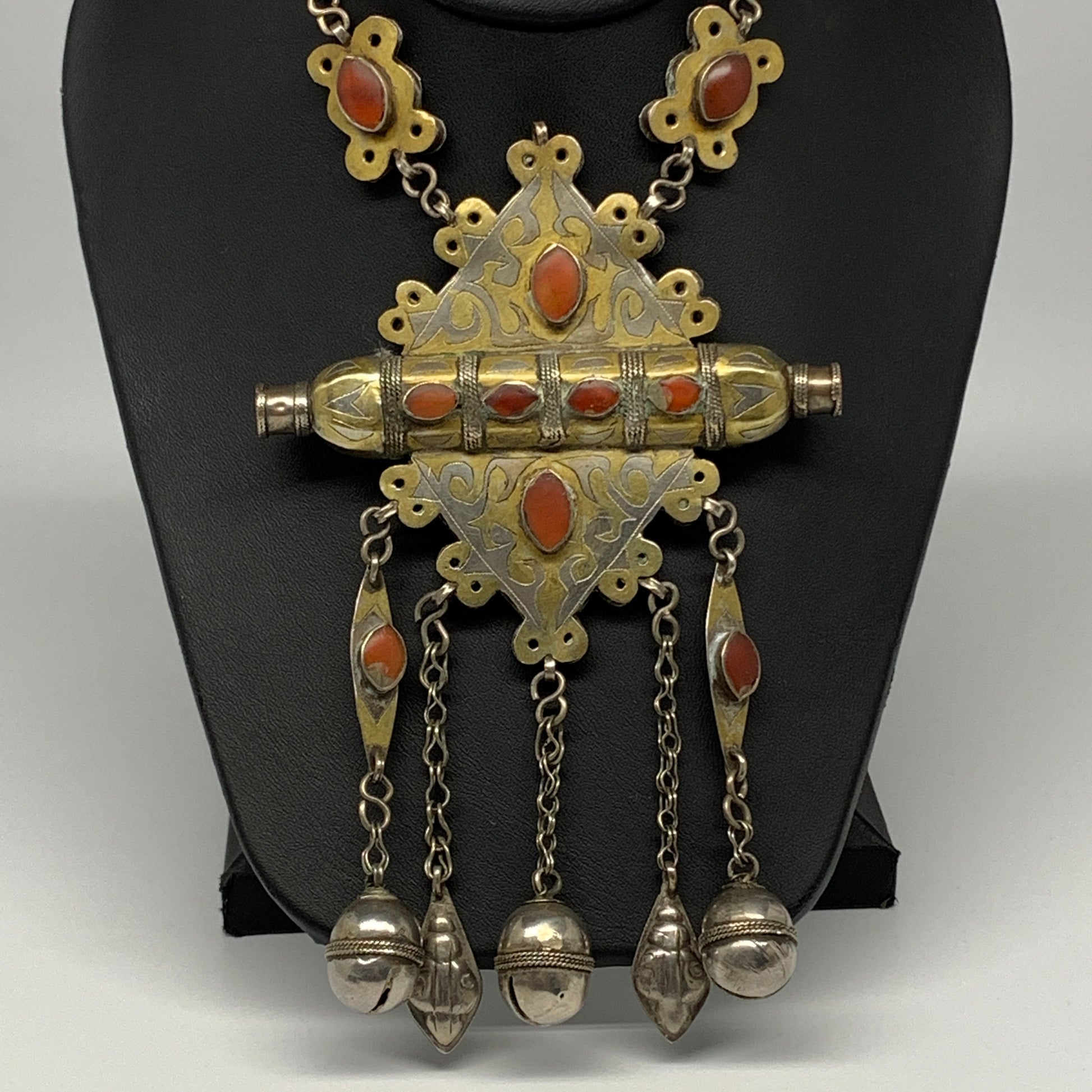 How old is this necklace pendant? I was told over 50-75 years old or so, made before the Soviets occupation of Afghanistan perhaps made in the 1950s or so. So, that means before 1979. Approximately 50 years or more. Don't know the exact year. But, they are difficult to find like this jewelry. Only some people in the villages in northern Afghanistan may have them particularly like Jowzjan province of Afghanistan and district of Aqcha. But, no one make these anymore. They are well made in terms of quality despite they are very old.