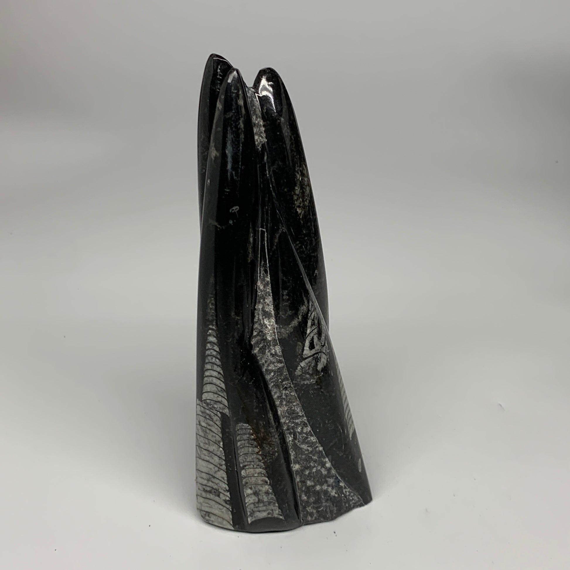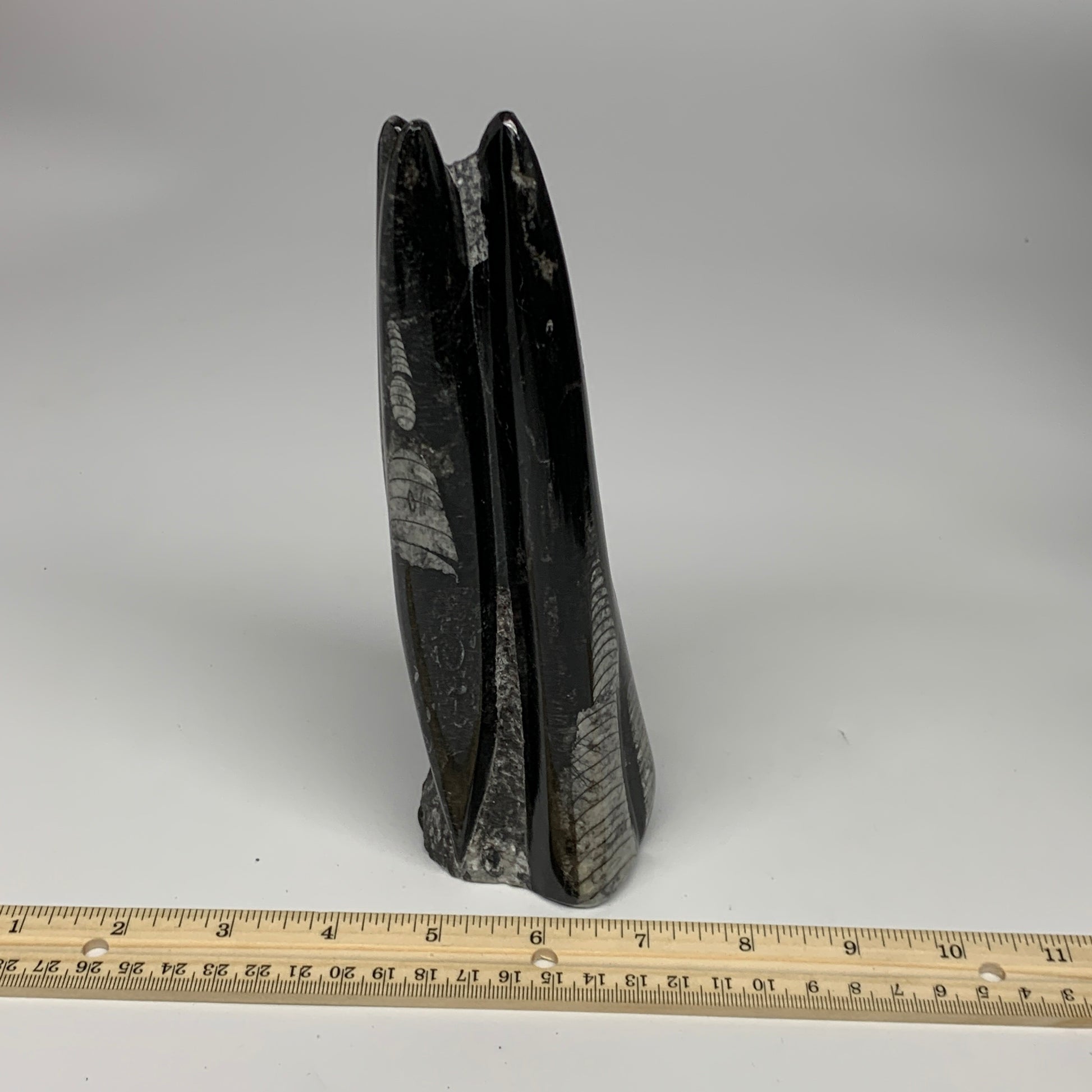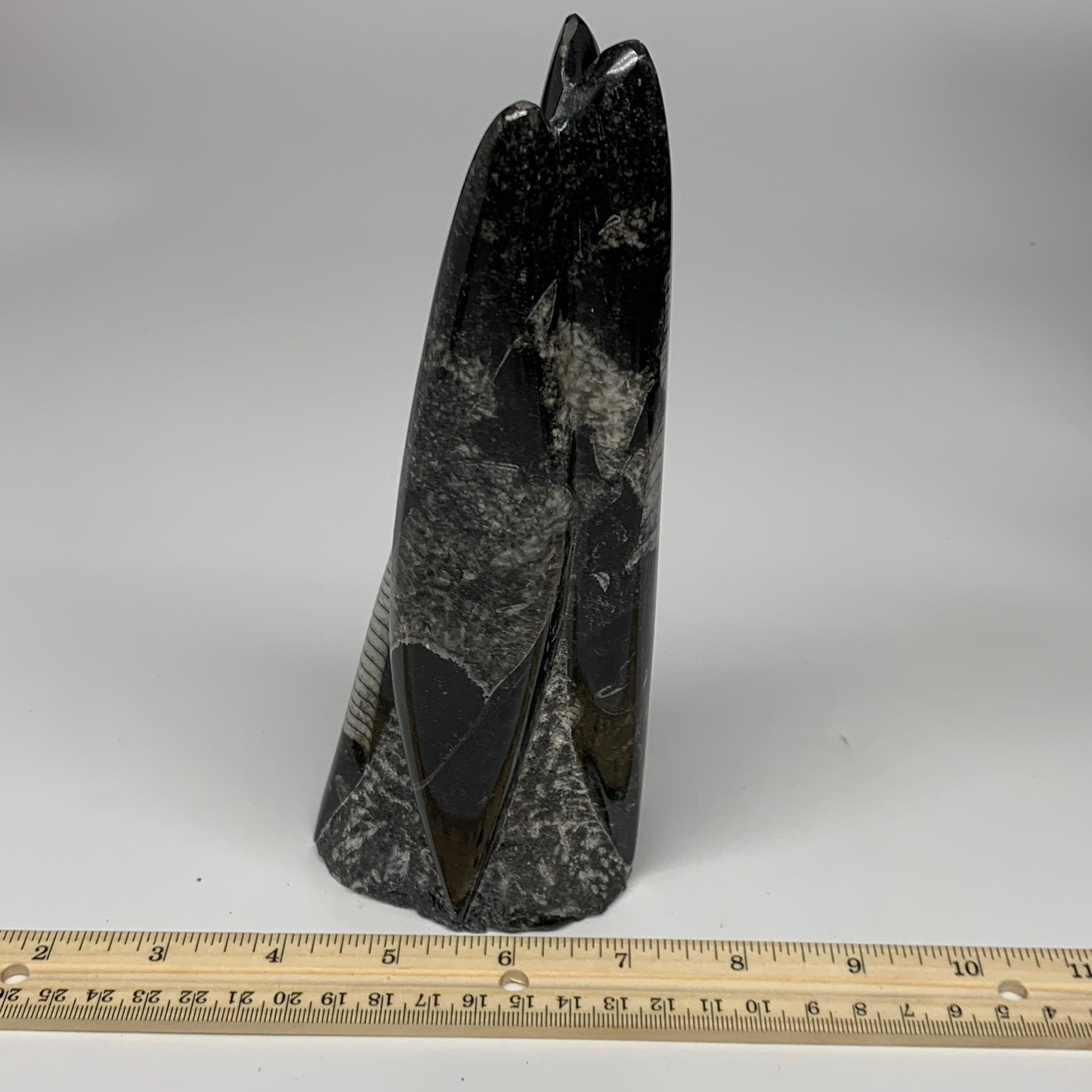 1050g, 7.8"x3.1"x2.5" Black Fossils Orthoceras Sculpture Tower @Morocco, B23444