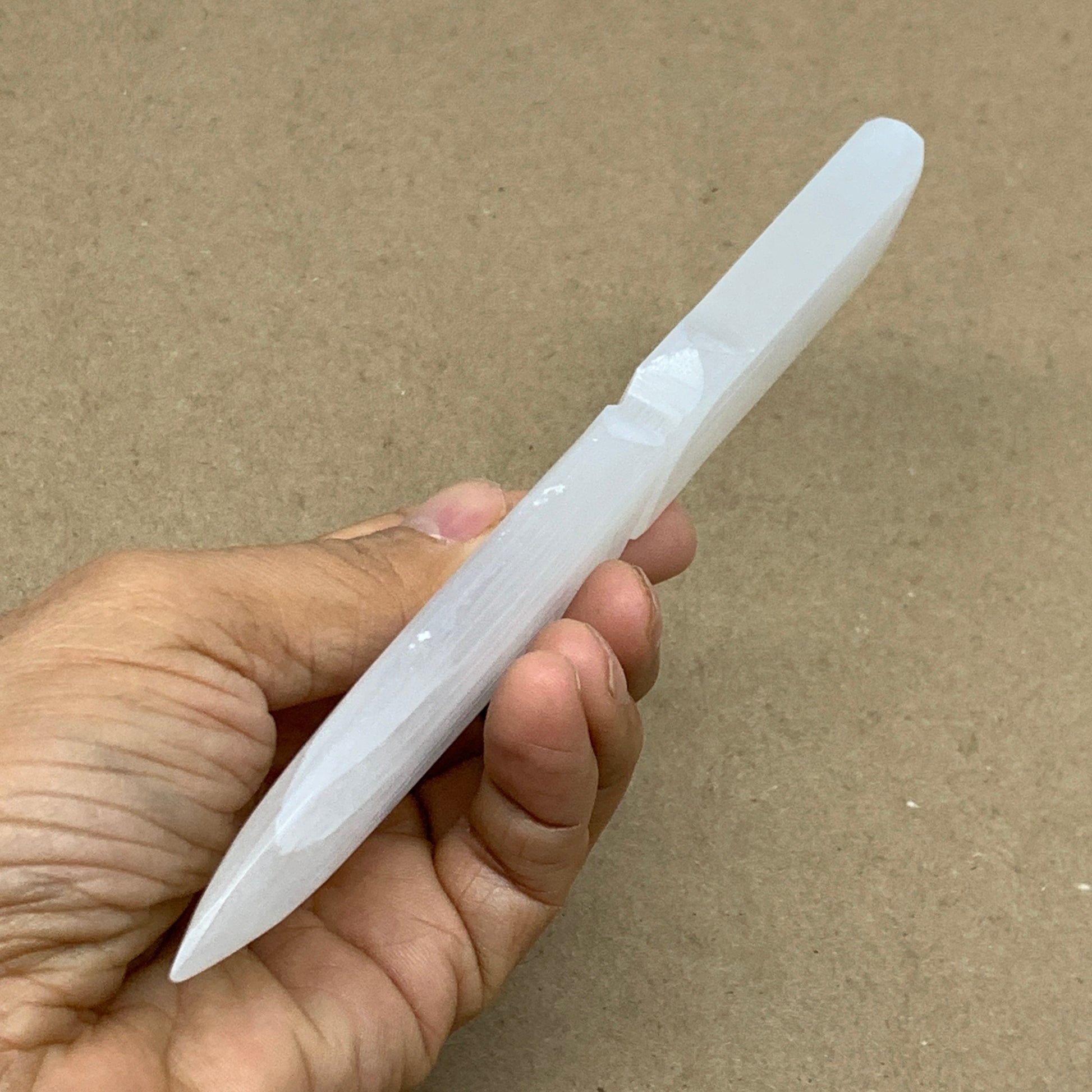 106g, 7.5"x1.3"x0.4", Natural Selenite Crystal Dagger (Satin Spar), B36904