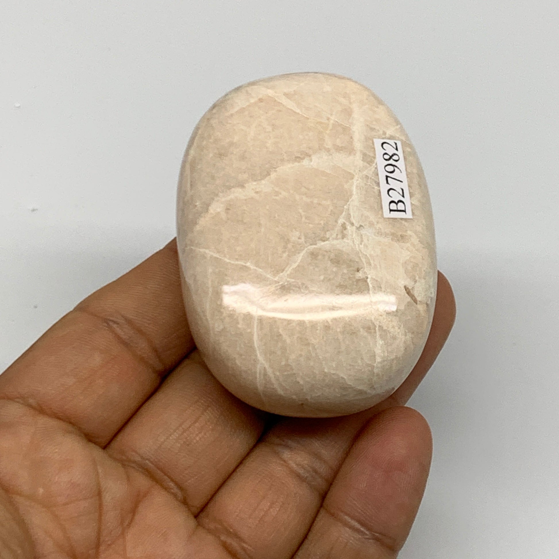 111.7g,2.3"x1.8"x0.9" Peach Moonstone Crystal Palm-Stone Polished Reiki, B27983