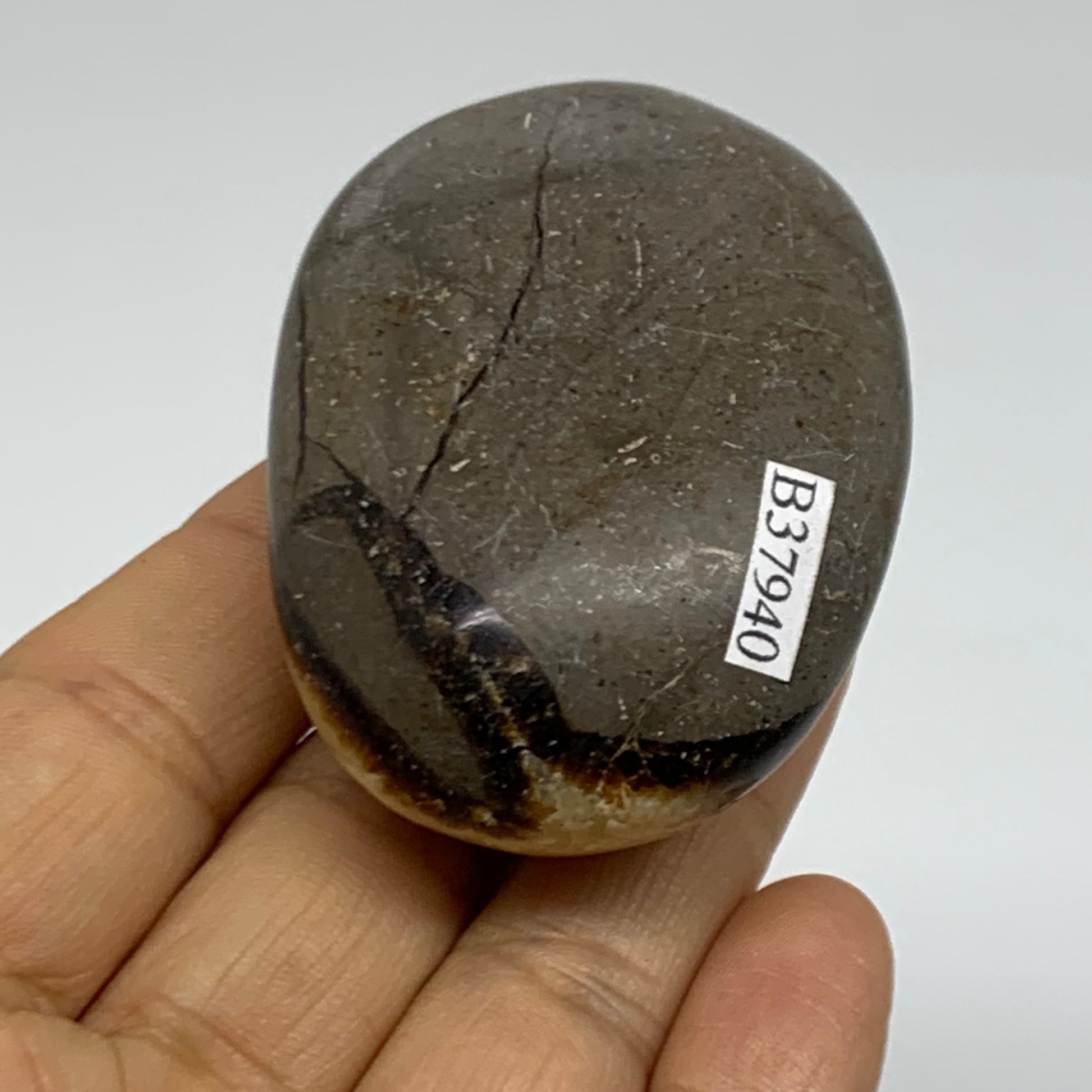 108.1g, 2.4"x1.7"x1.1", Septarian Nodule Palm-Stone Polished Crystal, B37940