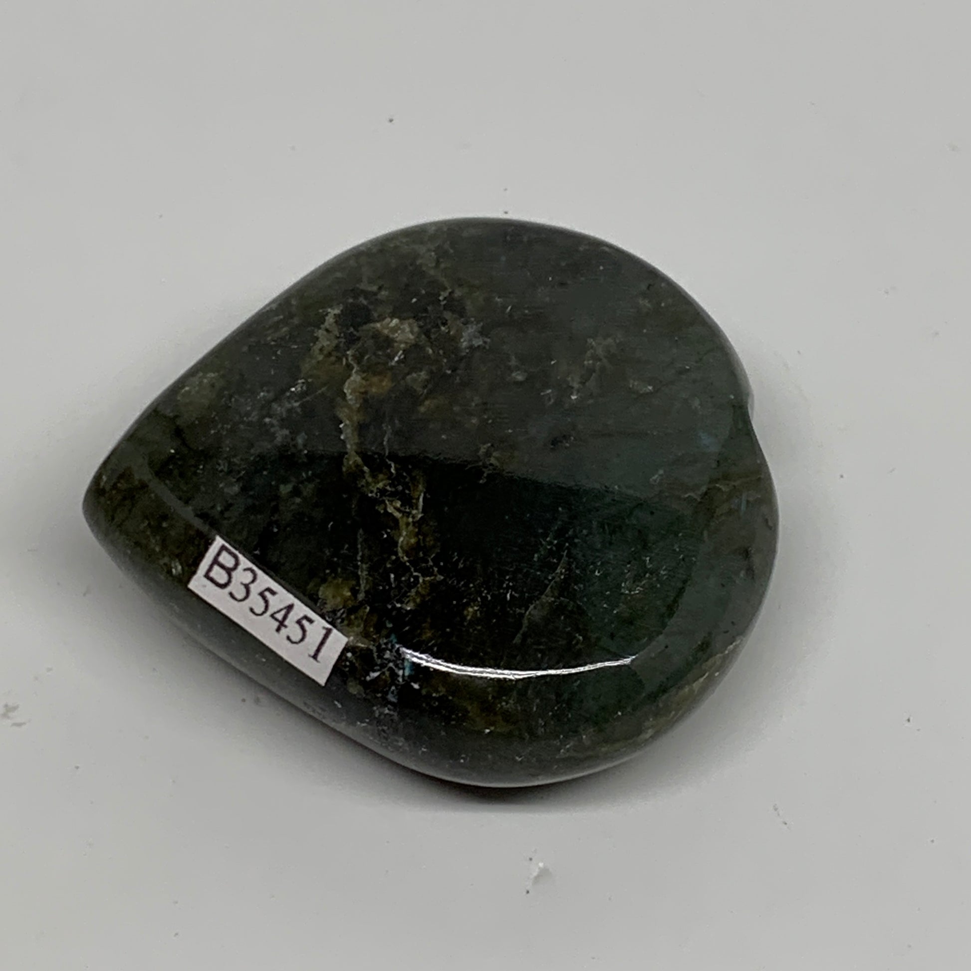92.5g, 2.2"x2.2"x0.8" Natural Labradorite Heart Polished Healing Crystal, B35451