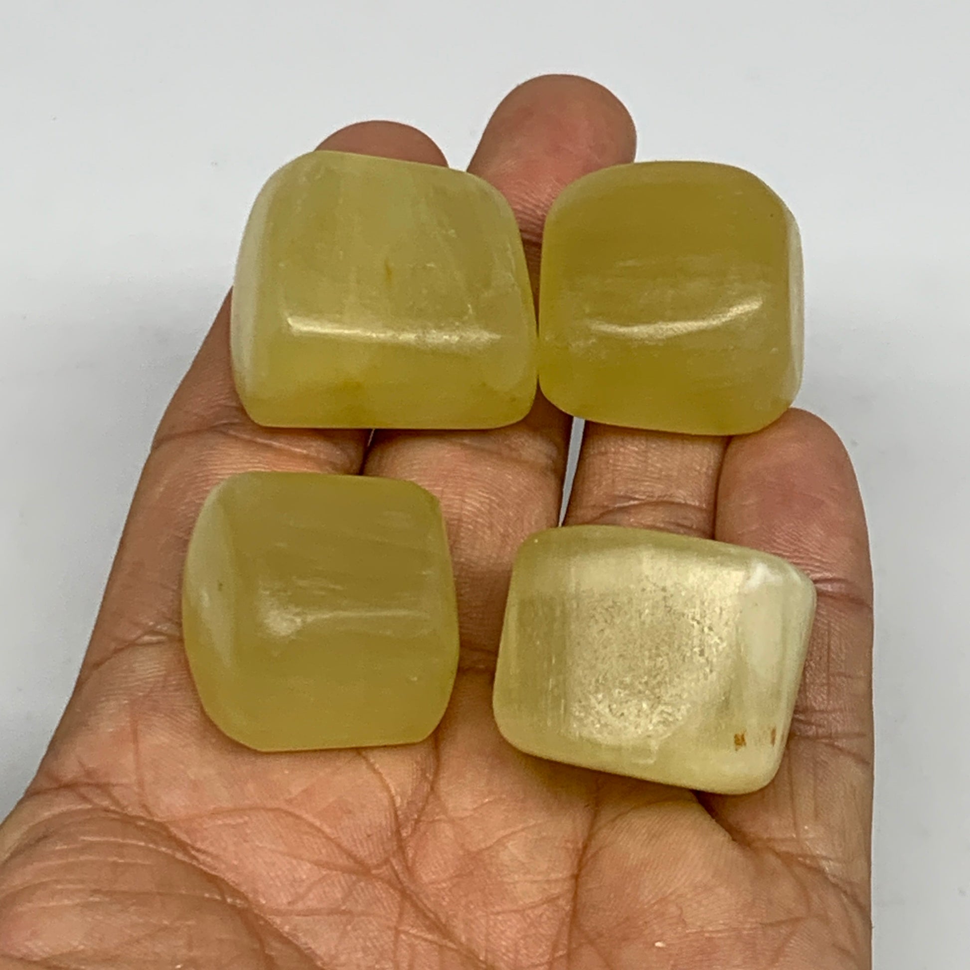 108.7g, 0.9"-1.1", 4pcs, Natural Lemon Calcite Tumbled Stones @Afghanistan, B267