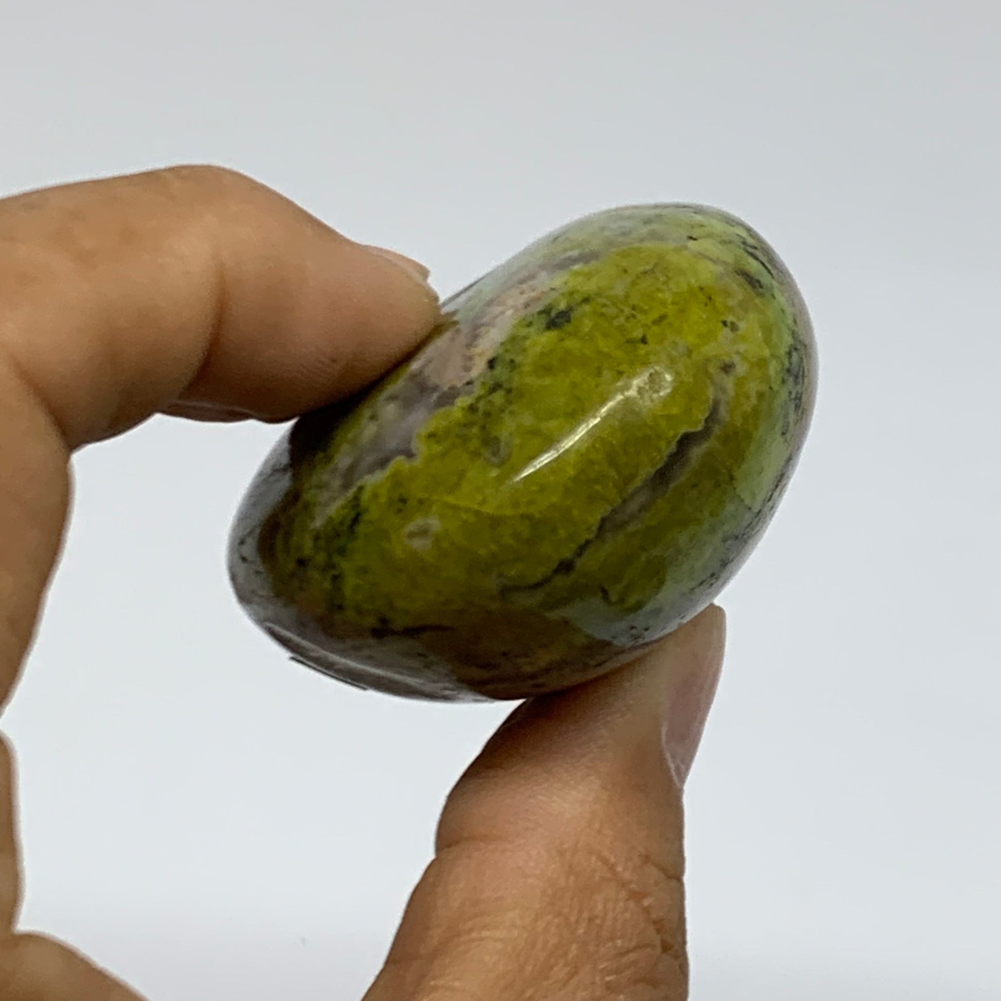 108g, 2.7"x1.7"x1", Green Opal Crystal PalmStone Polished Reiki, B38261