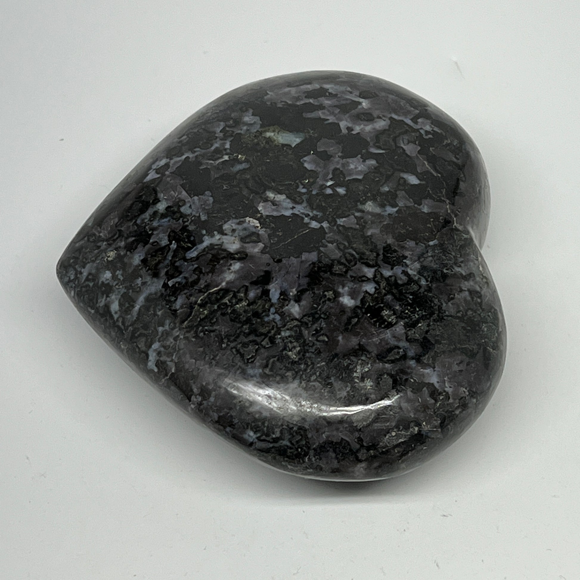 540g,3.7"x4.1"x1.4" Indigo Gabro Merlinite Heart Gemstone @Madagascar,B19920