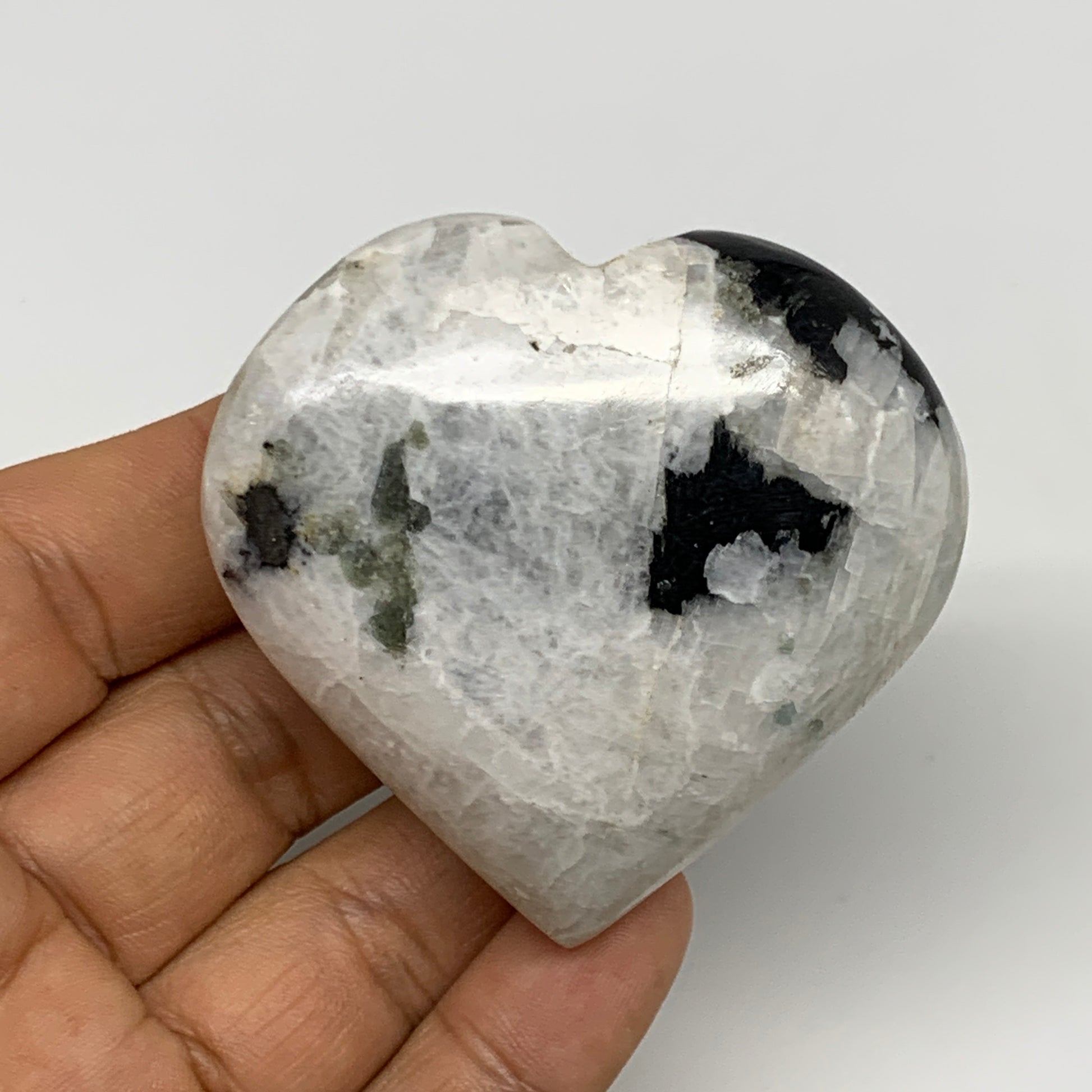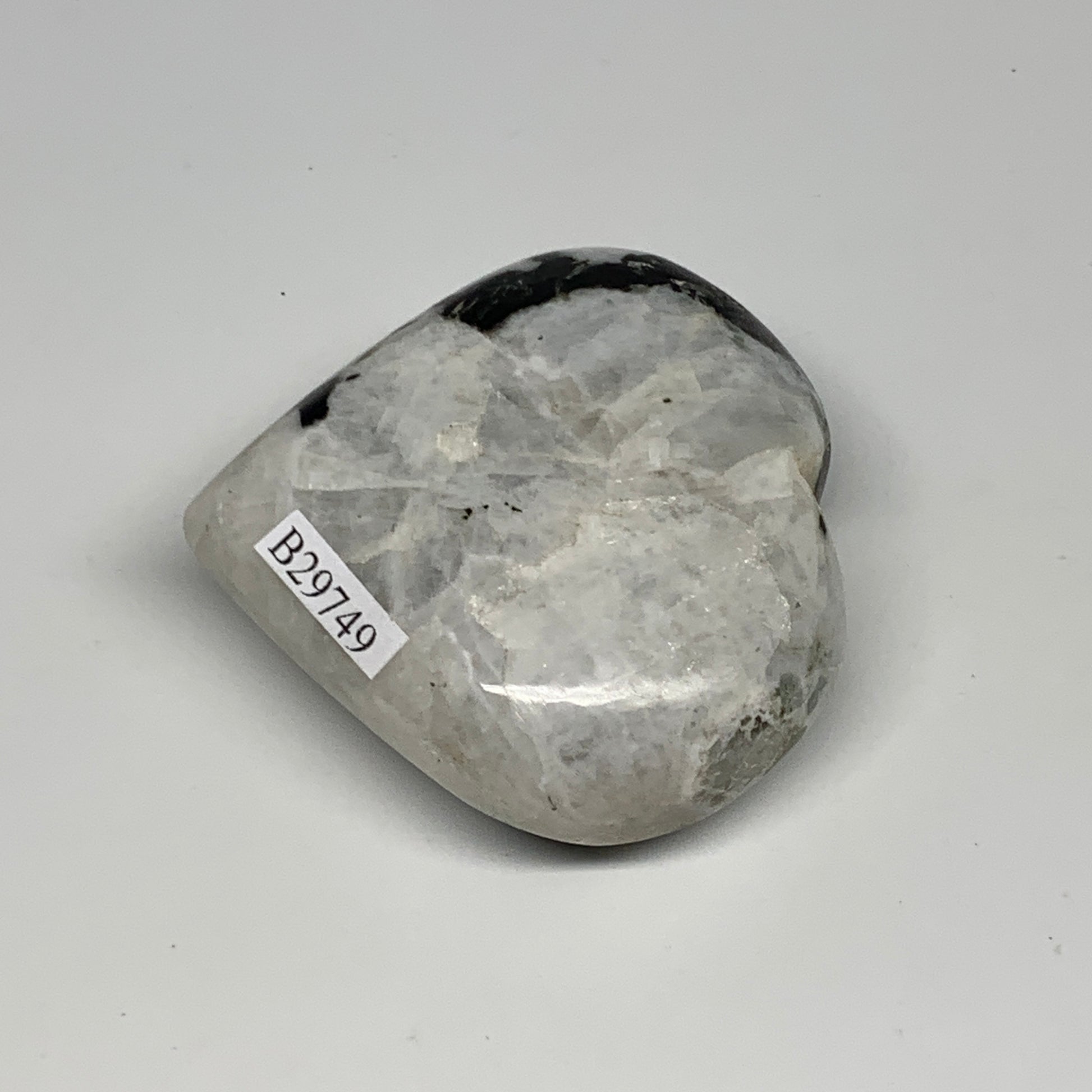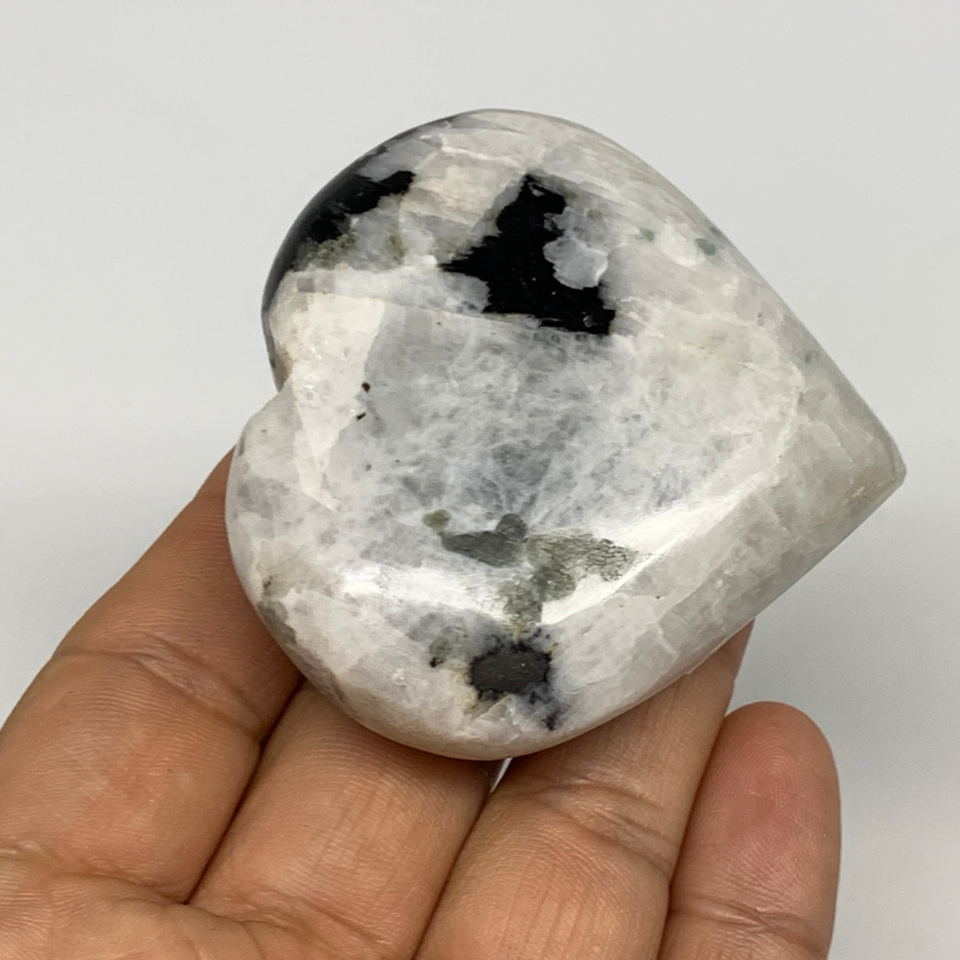 109.3g, 2.2"x2.3"x0.9", Rainbow Moonstone Heart Crystal Gemstone @India, B29749