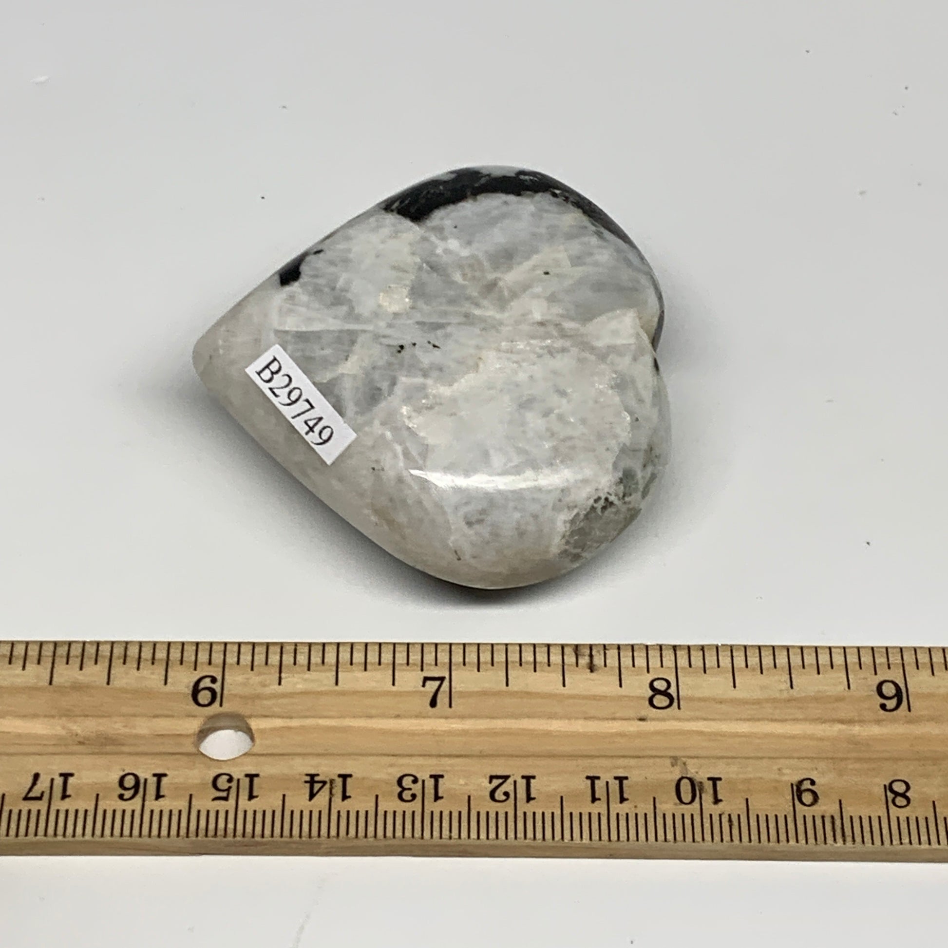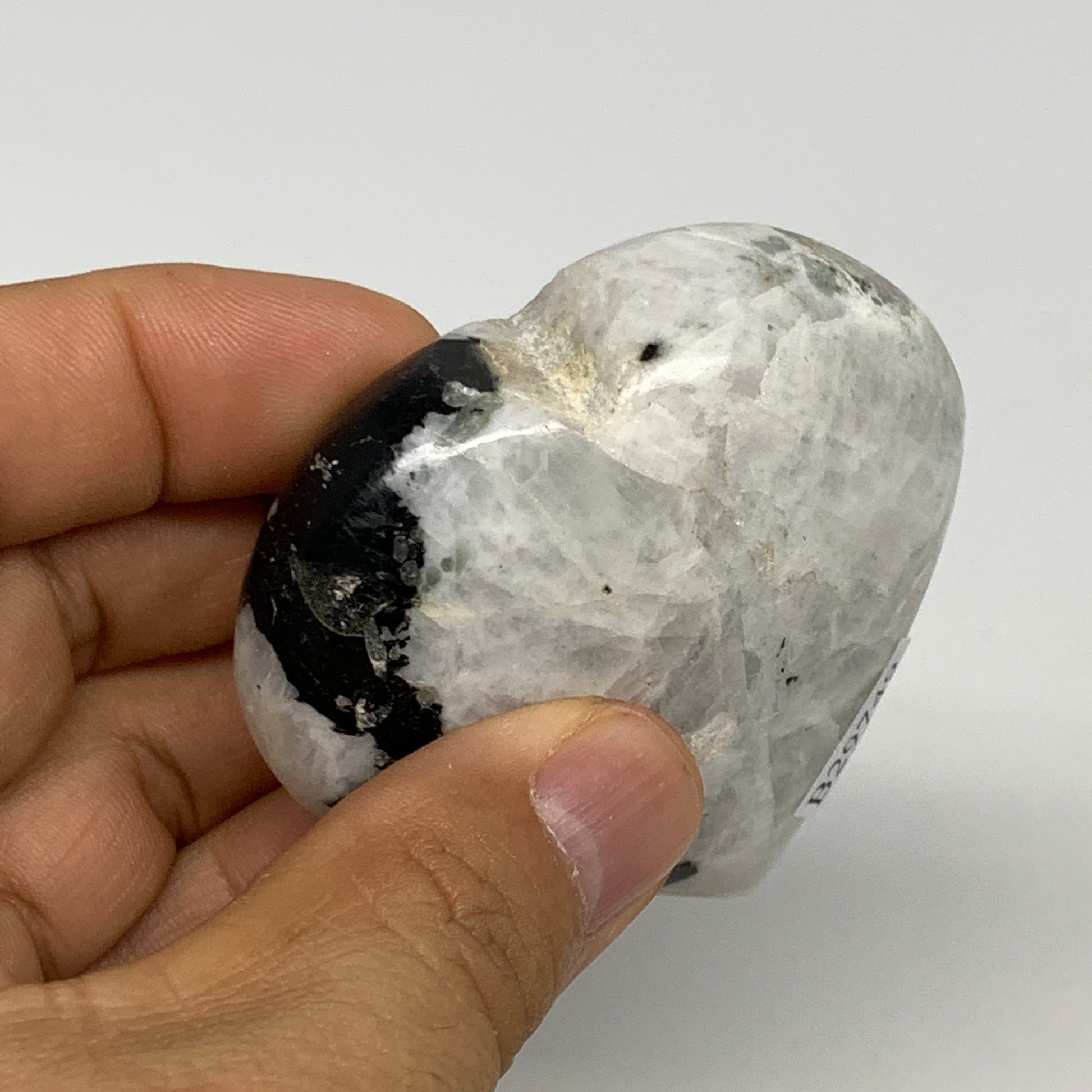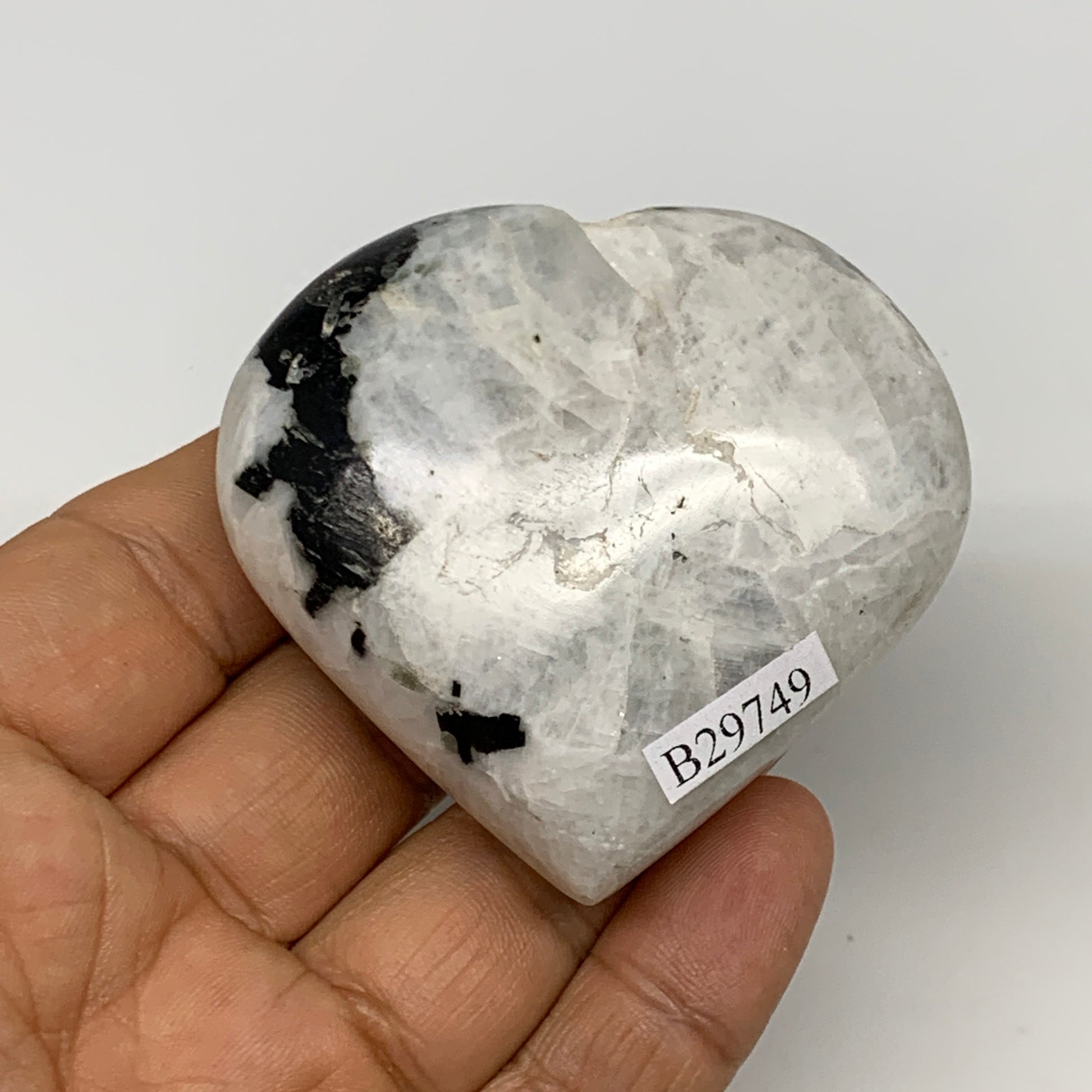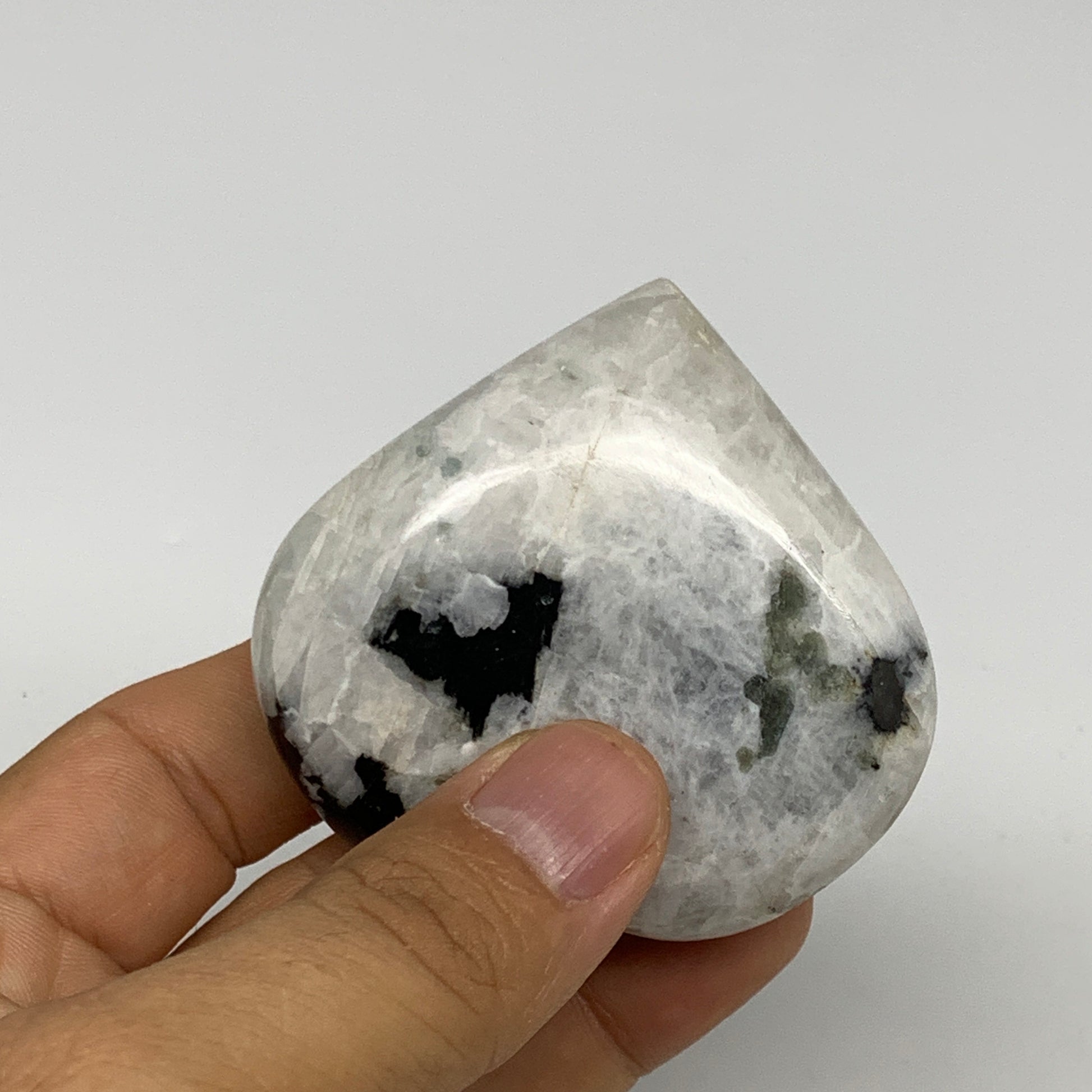 109.3g, 2.2"x2.3"x0.9", Rainbow Moonstone Heart Crystal Gemstone @India, B29749