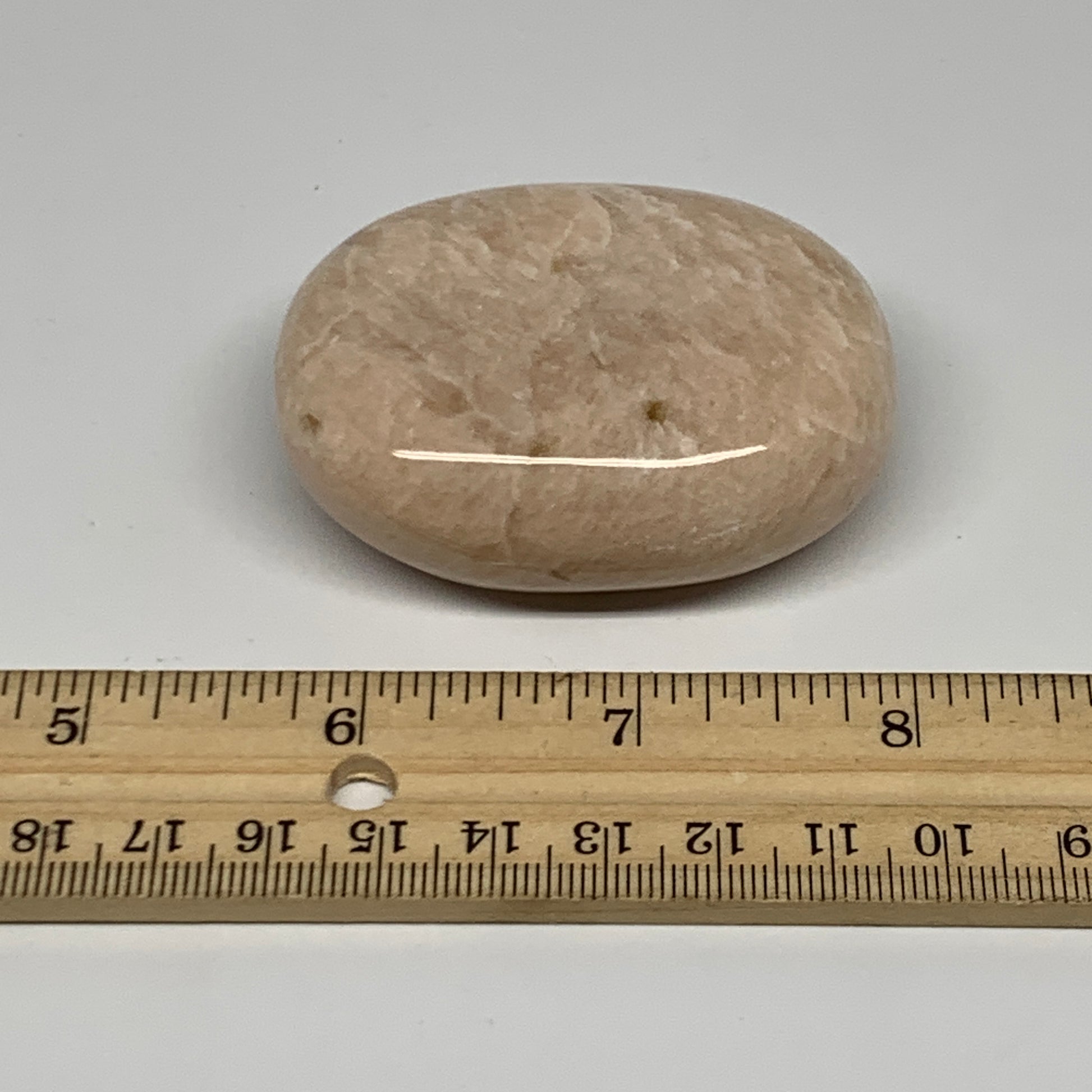 96.6g,2.3"x1.7"x0.9" Peach Moonstone Crystal Palm-Stone Polished Reiki, B27990