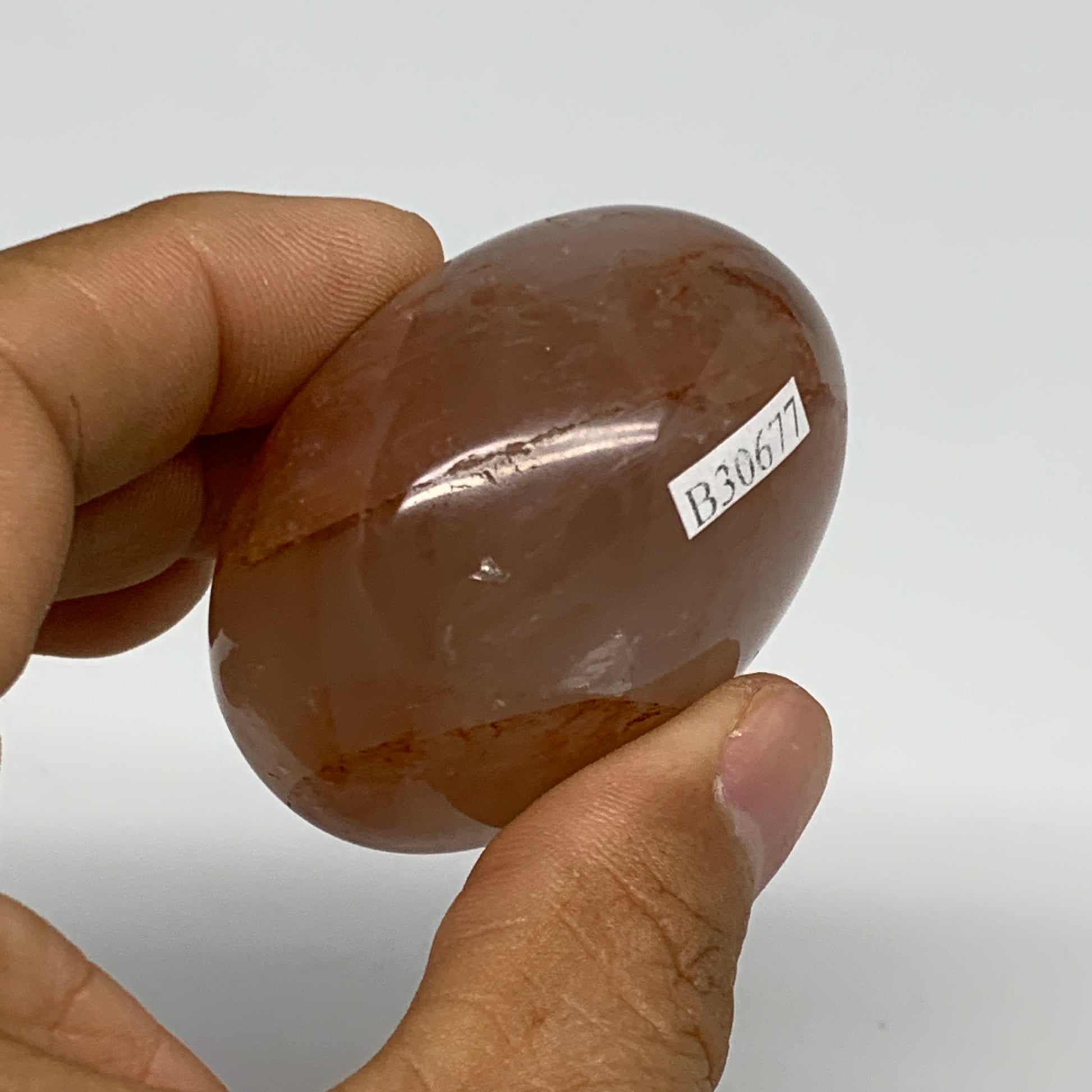 109.5g,2"x1.7"x1.3", Red Hematoid Fire Quartz Palm-Stone Crystal Polished, B30677