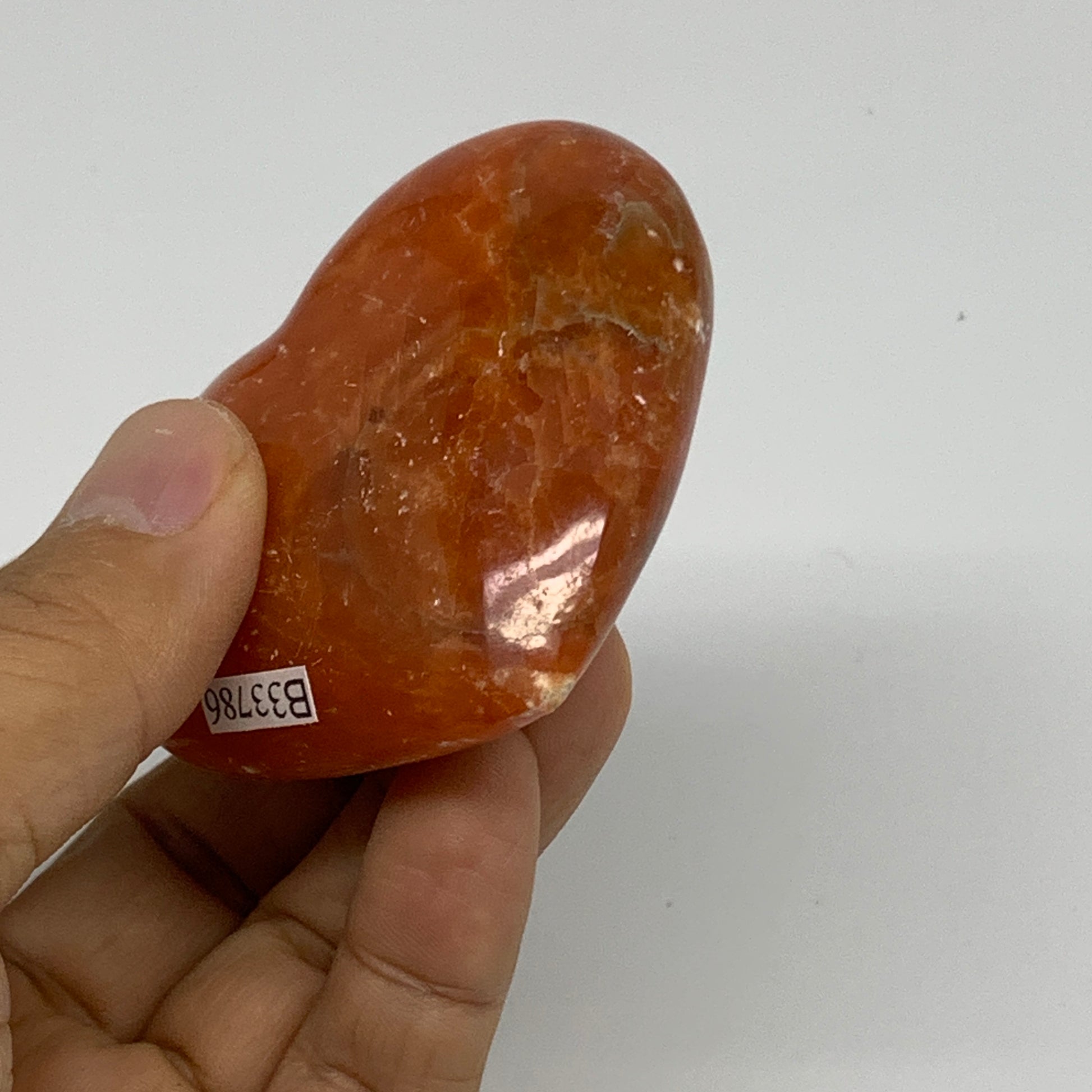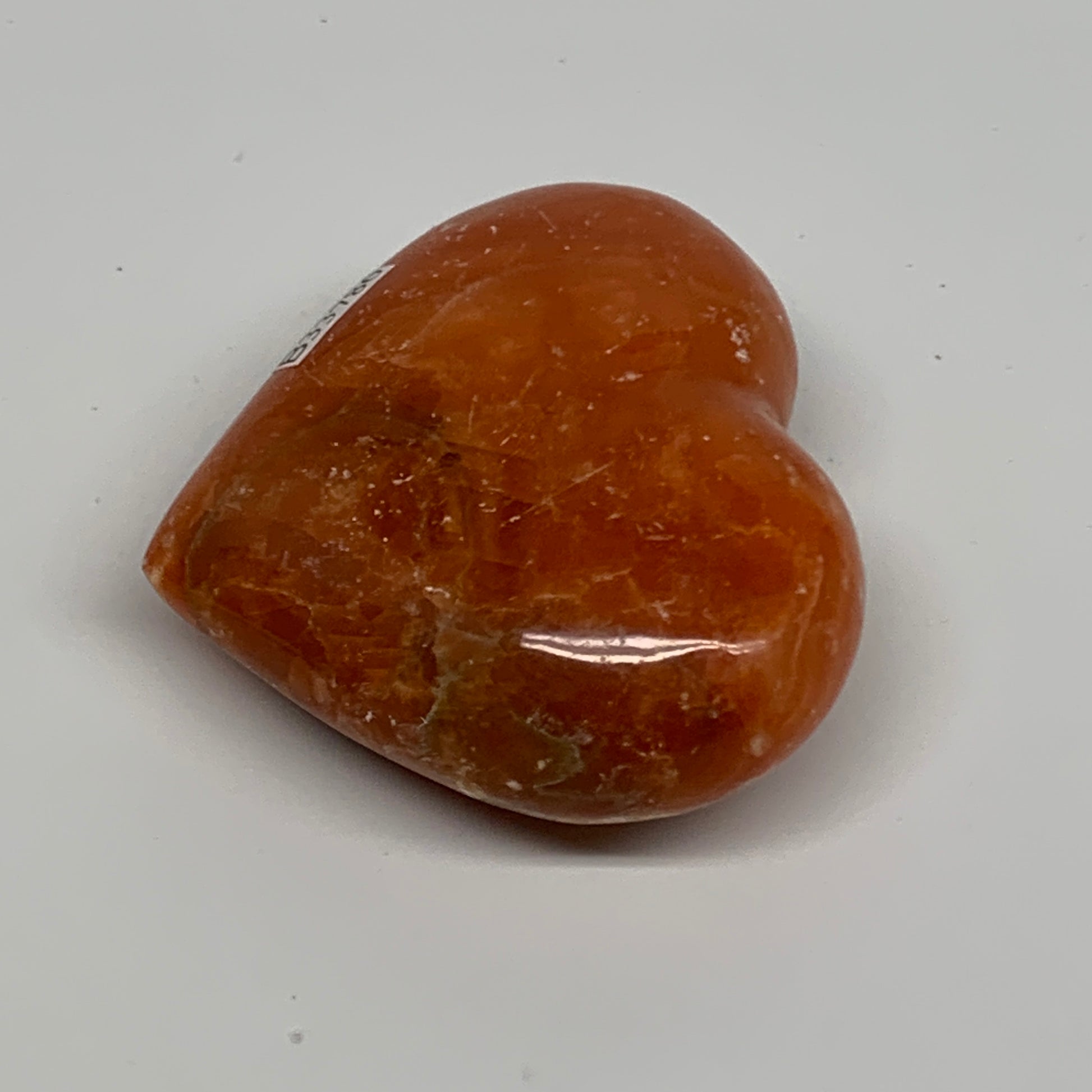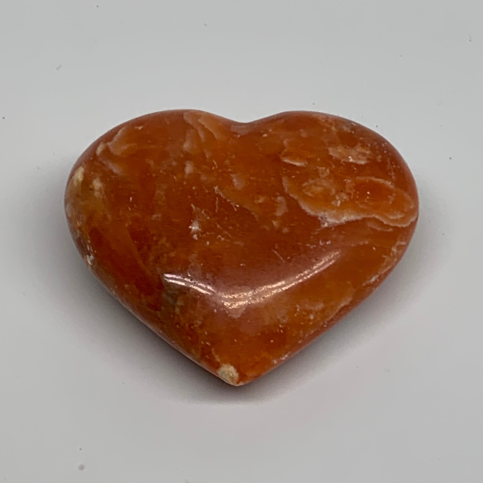 109.9g, 2.2"x2.6"x1" Orange Calcite Heart Gemstones from Madagascar, B33786