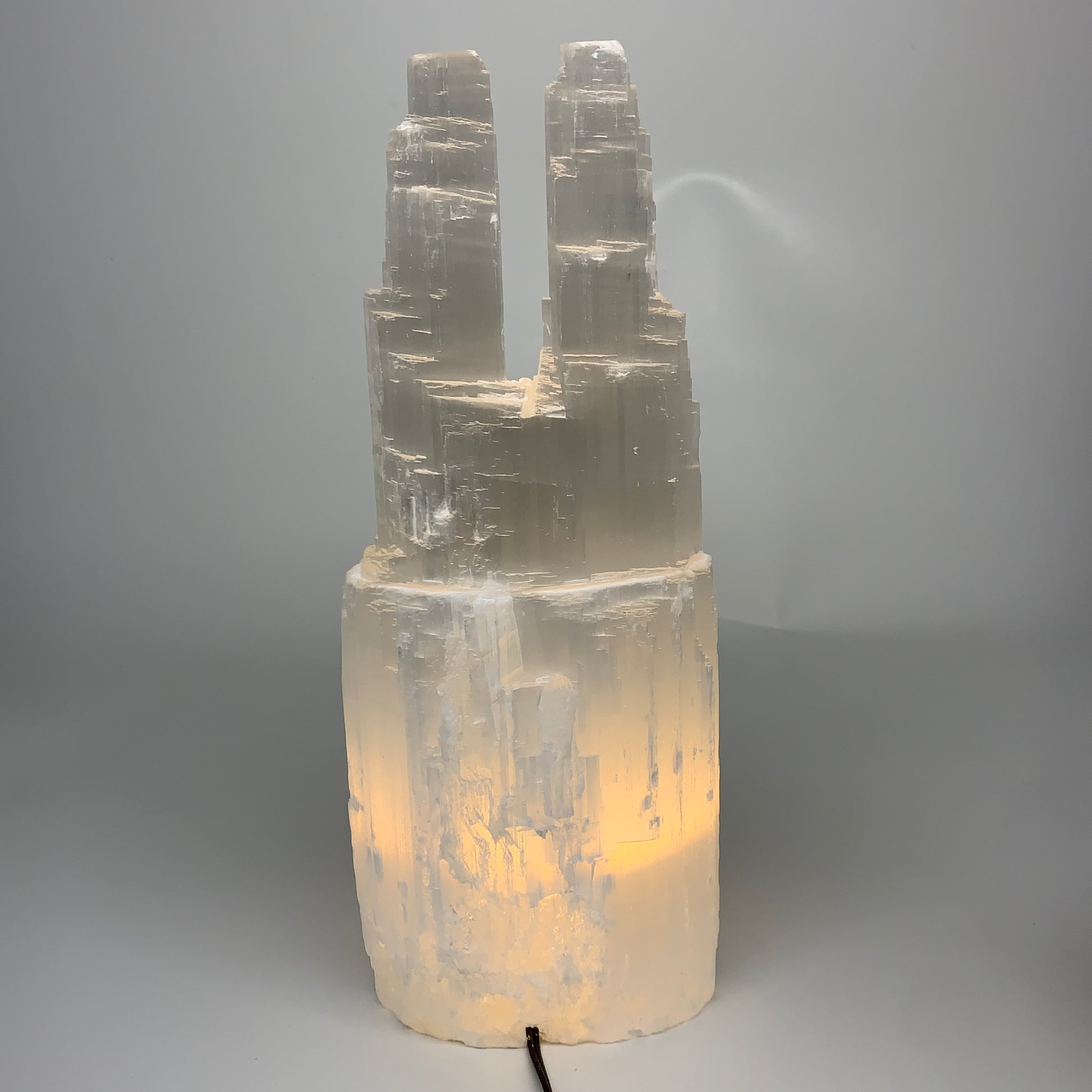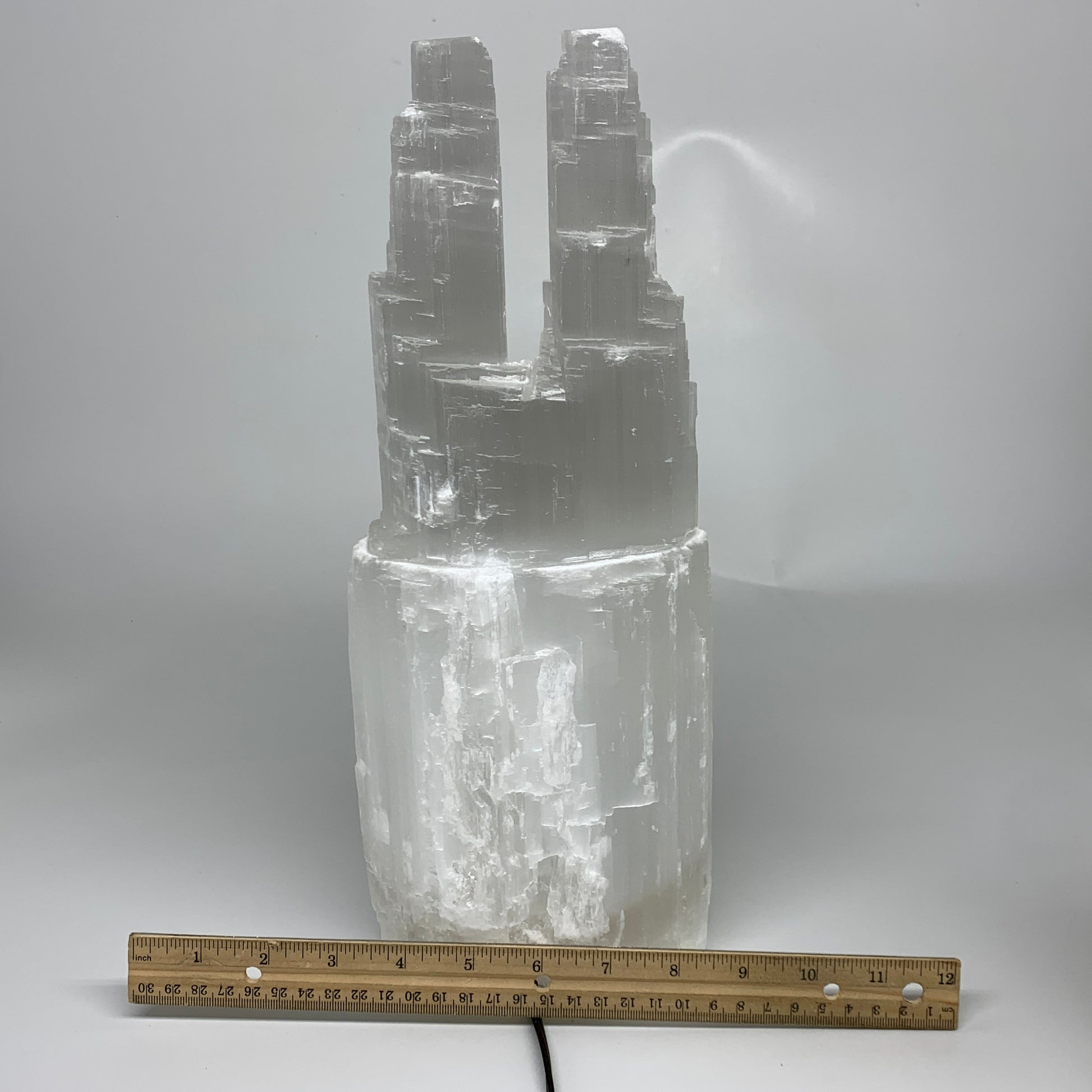 11.2 lbs, 13.7"x5.2"x3.8" Rough Selenite (Satin Spar) Lamp Tower W/Chord, B35759