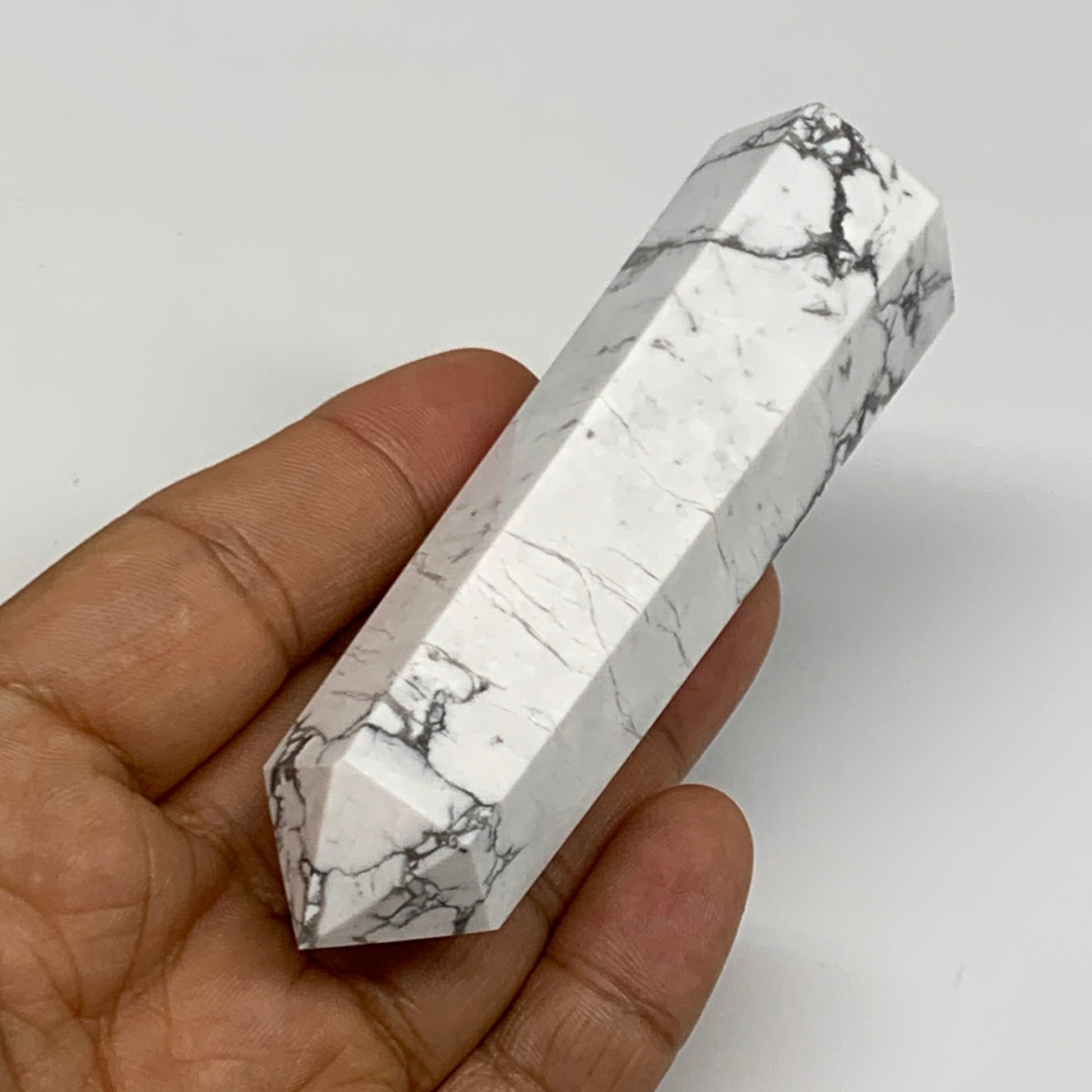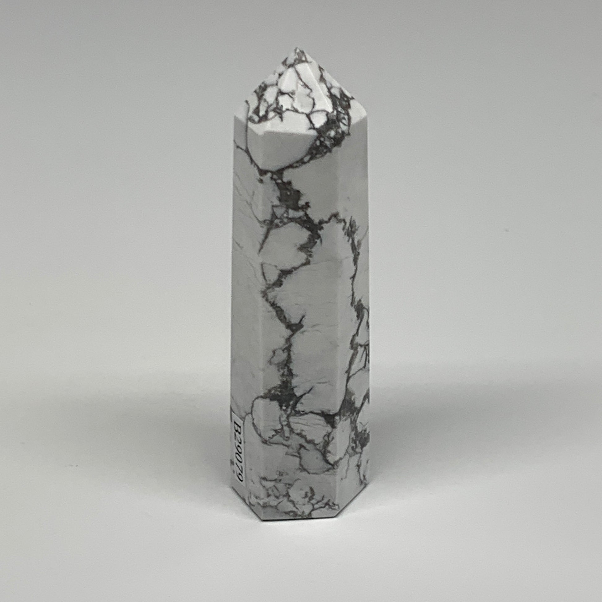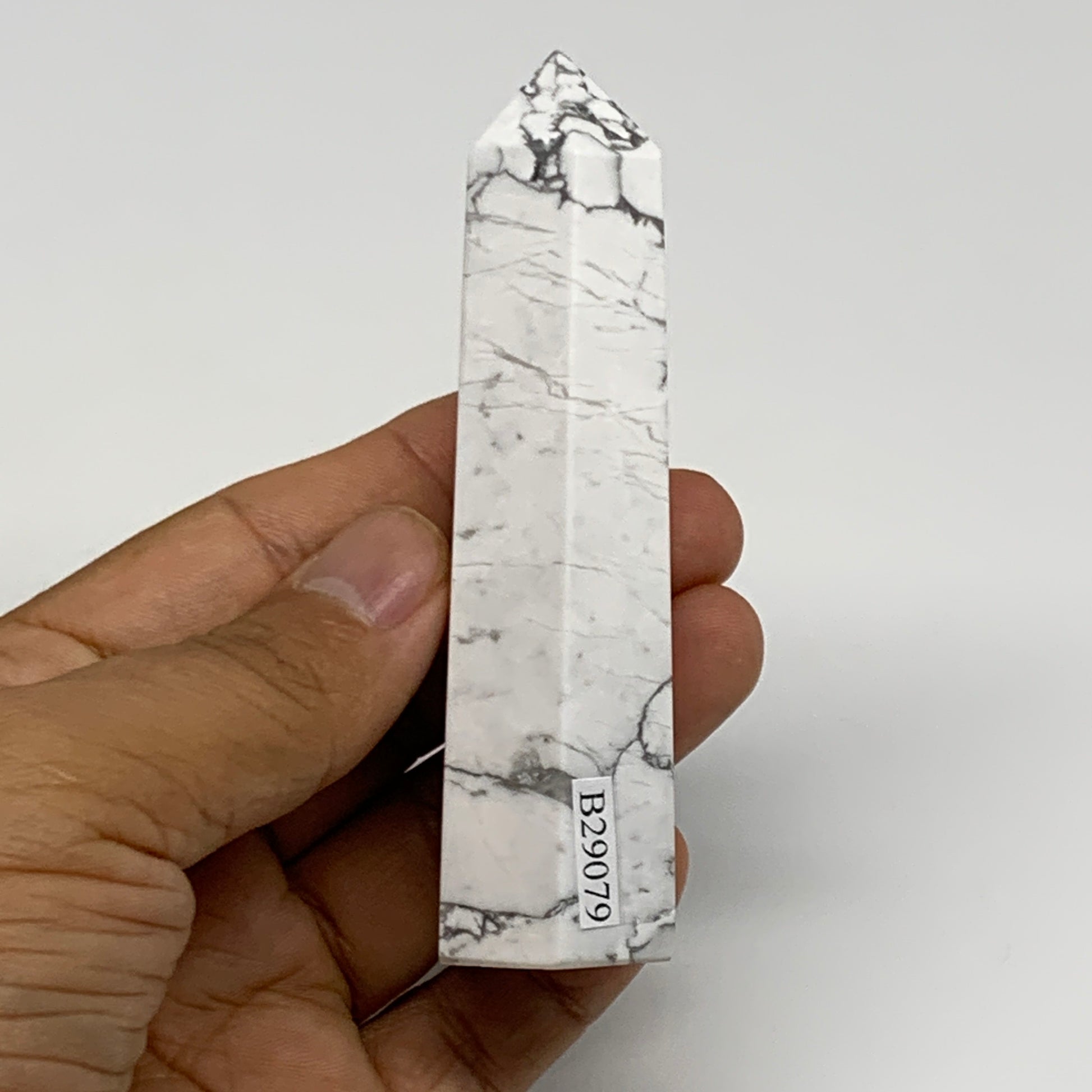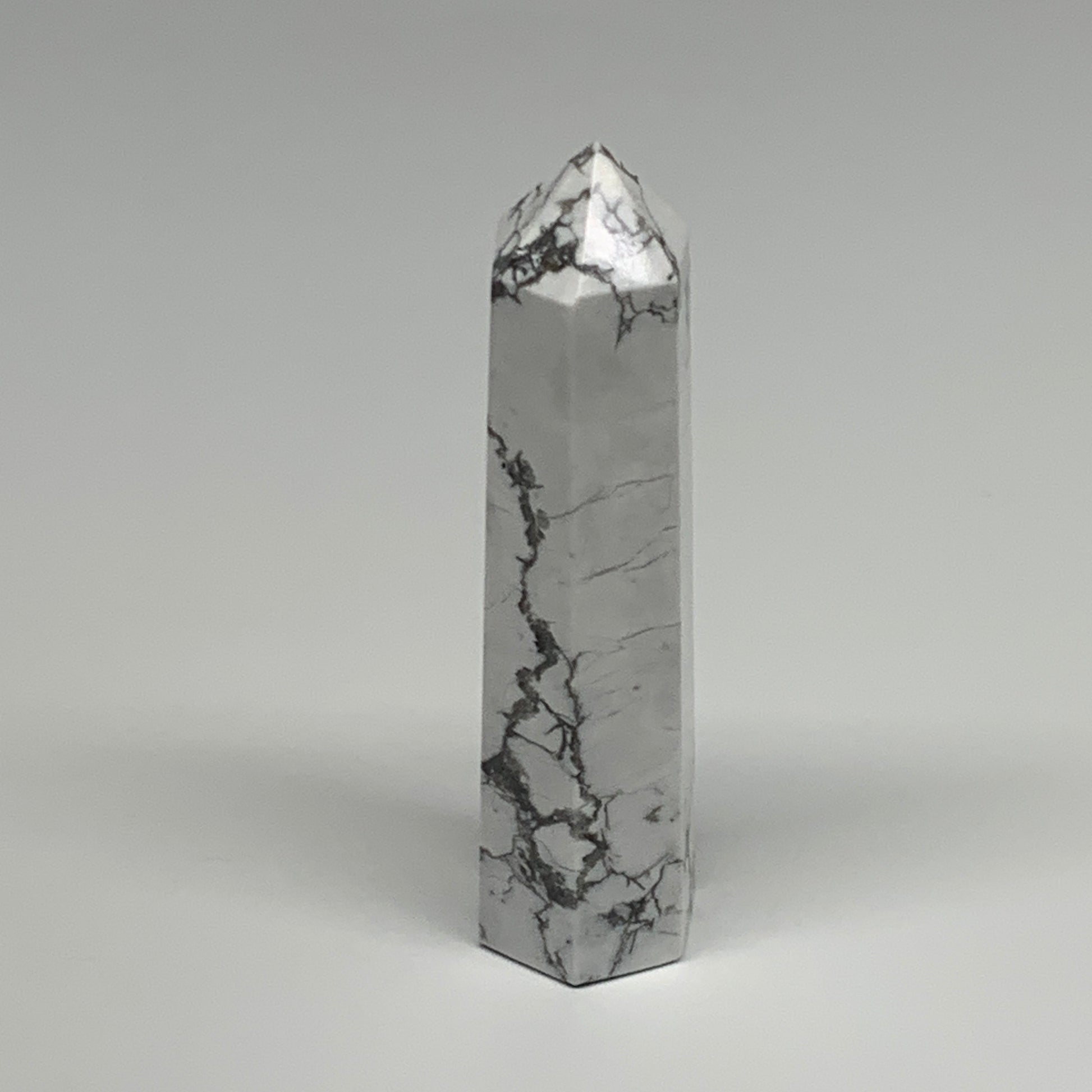 117.3g, 3.6"x1"x1", Natural Howlite Point Tower Obelisk Crystal, B29080