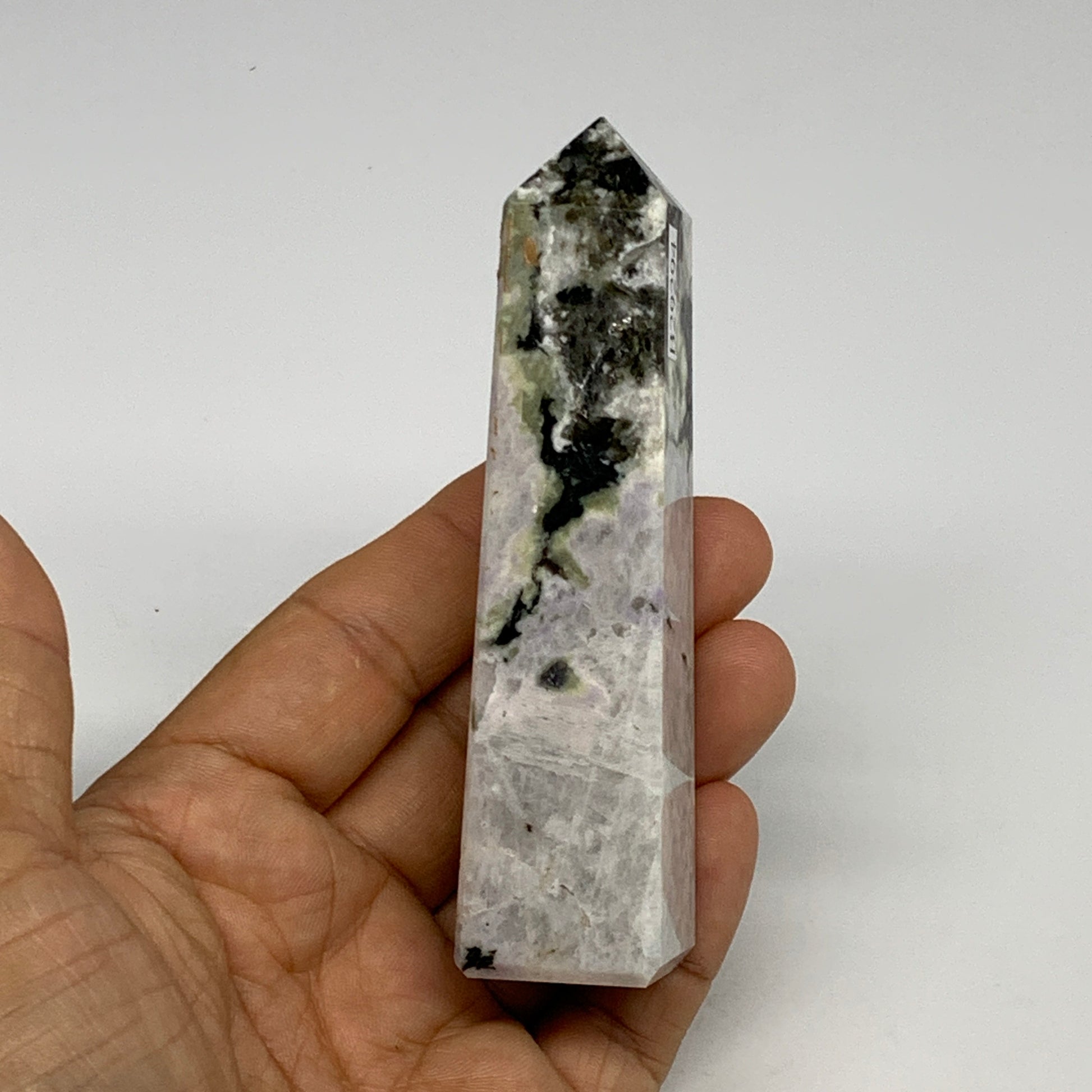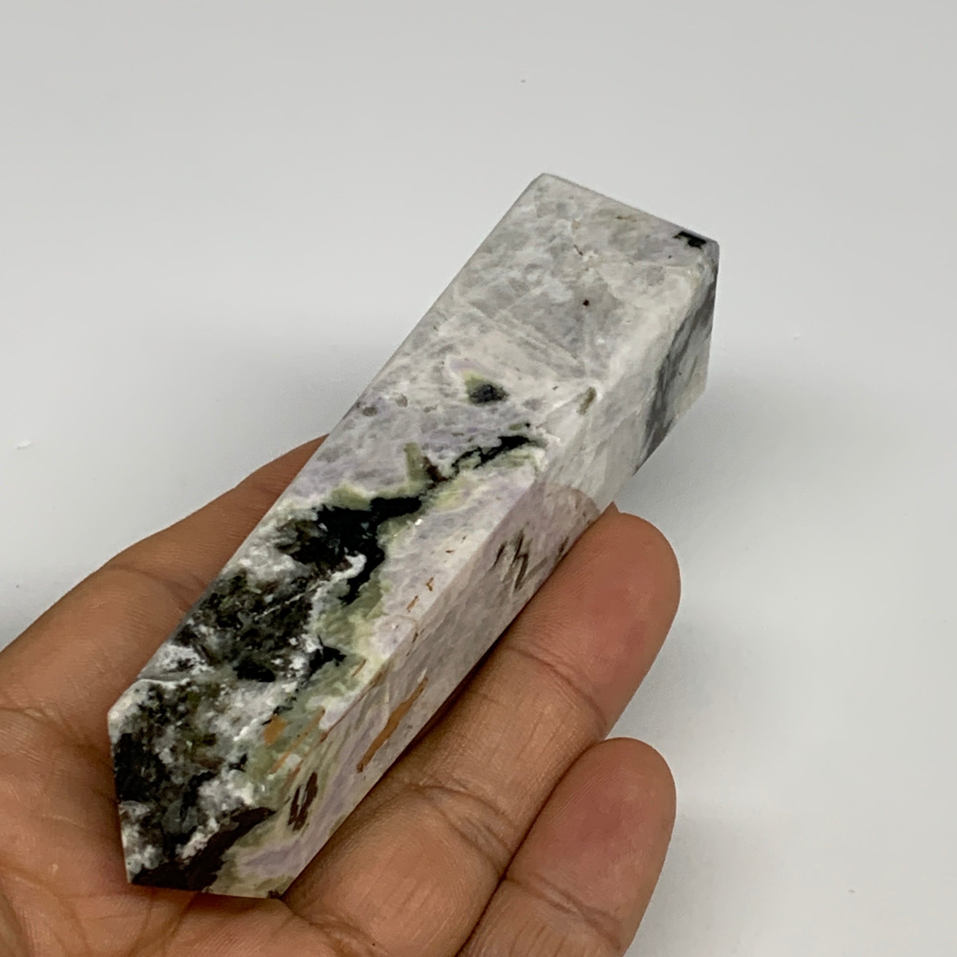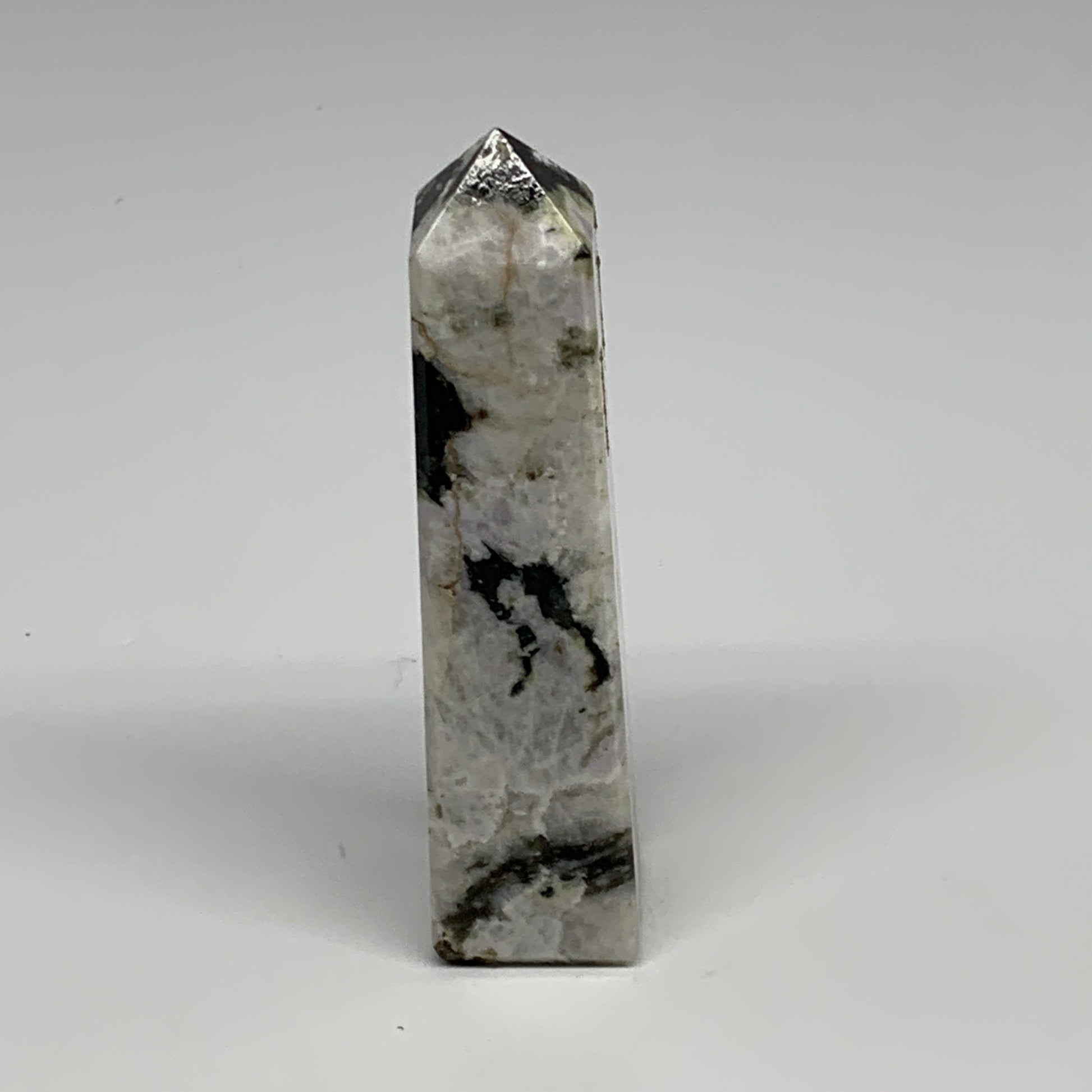 110.5g, 3.9"x0.9"x0.9" Rainbow Moonstone Tower Obelisk Point Crystal @India,B29294