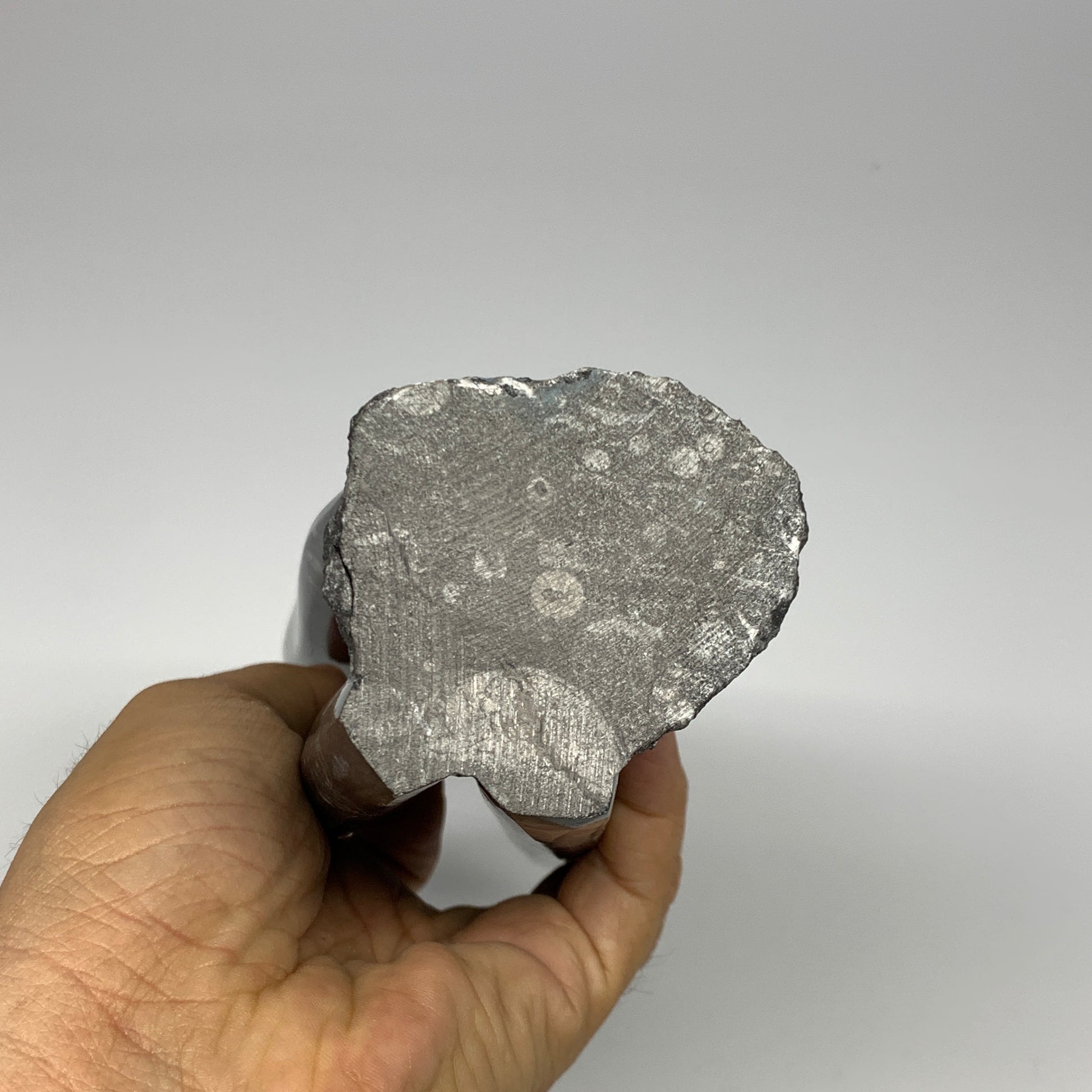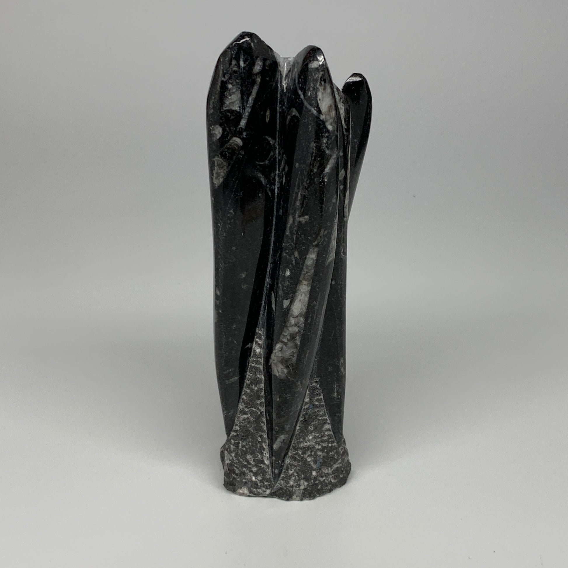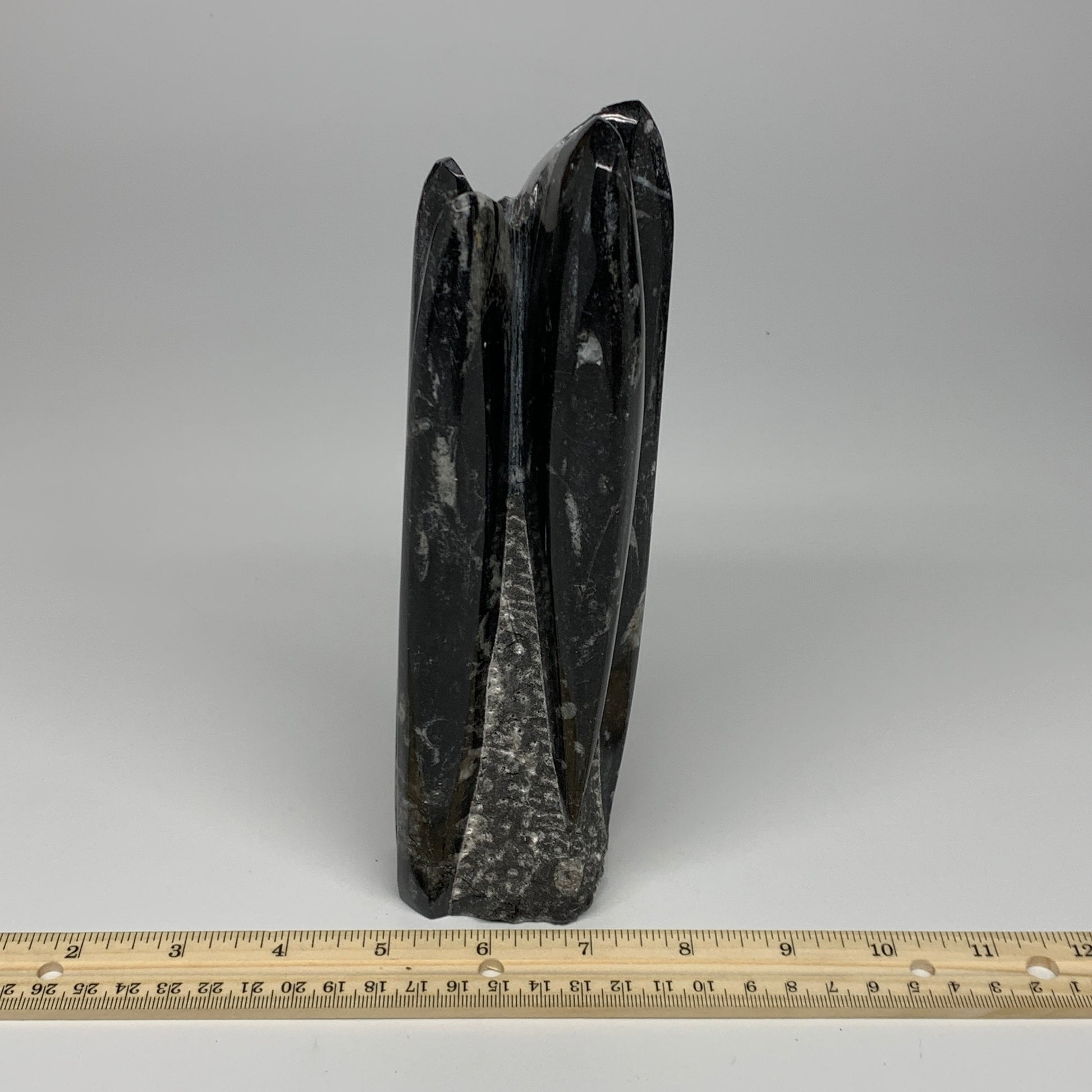 1100g, 8"x2.5"2.6" Black Fossils Orthoceras Sculpture Tower @Morocco, B23408