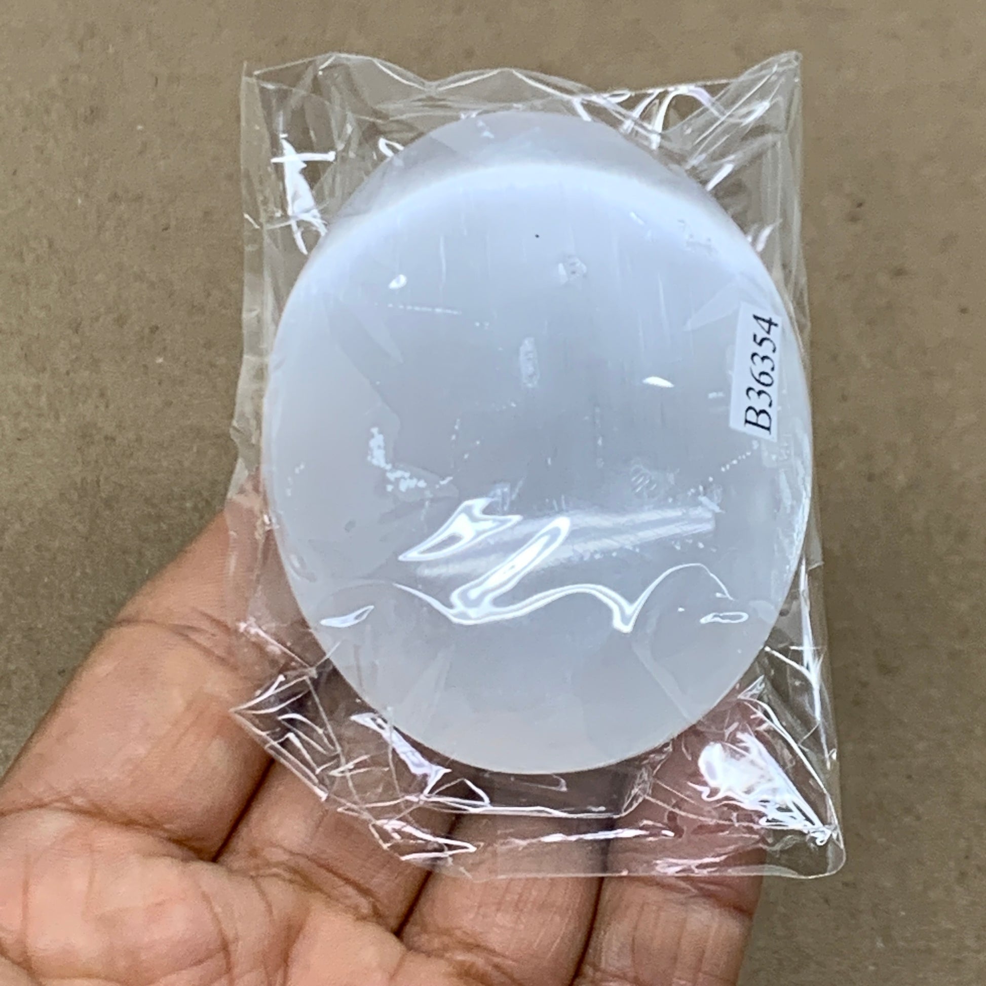 110g, 2.8"x2.1"x1", White Selenite Palmstone Crystal Pillow Reiki, B36354
