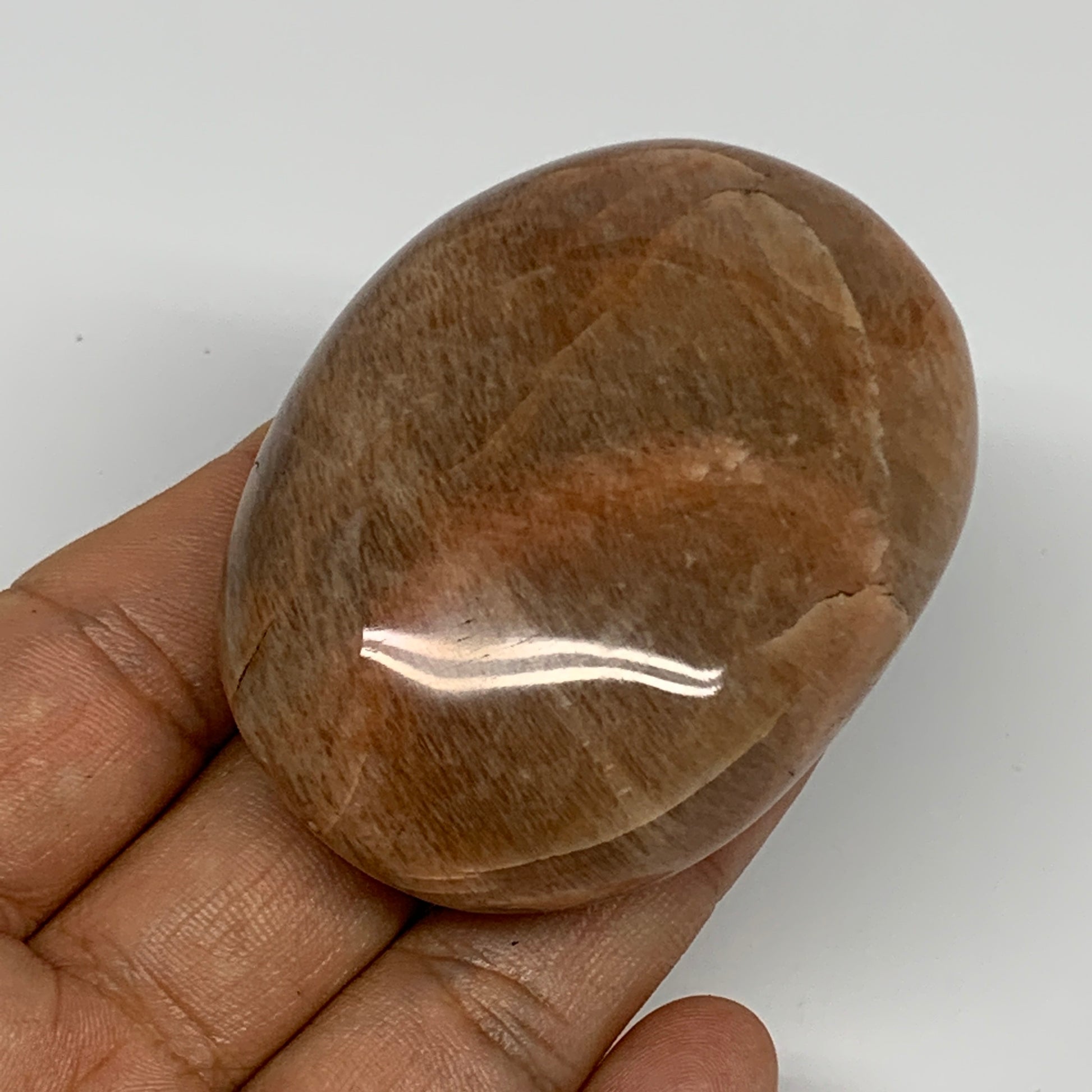 111.3g,2.6"x1.9"x1", Peach Moonstone Palm-Stone Polished Reiki Crystal, B15541