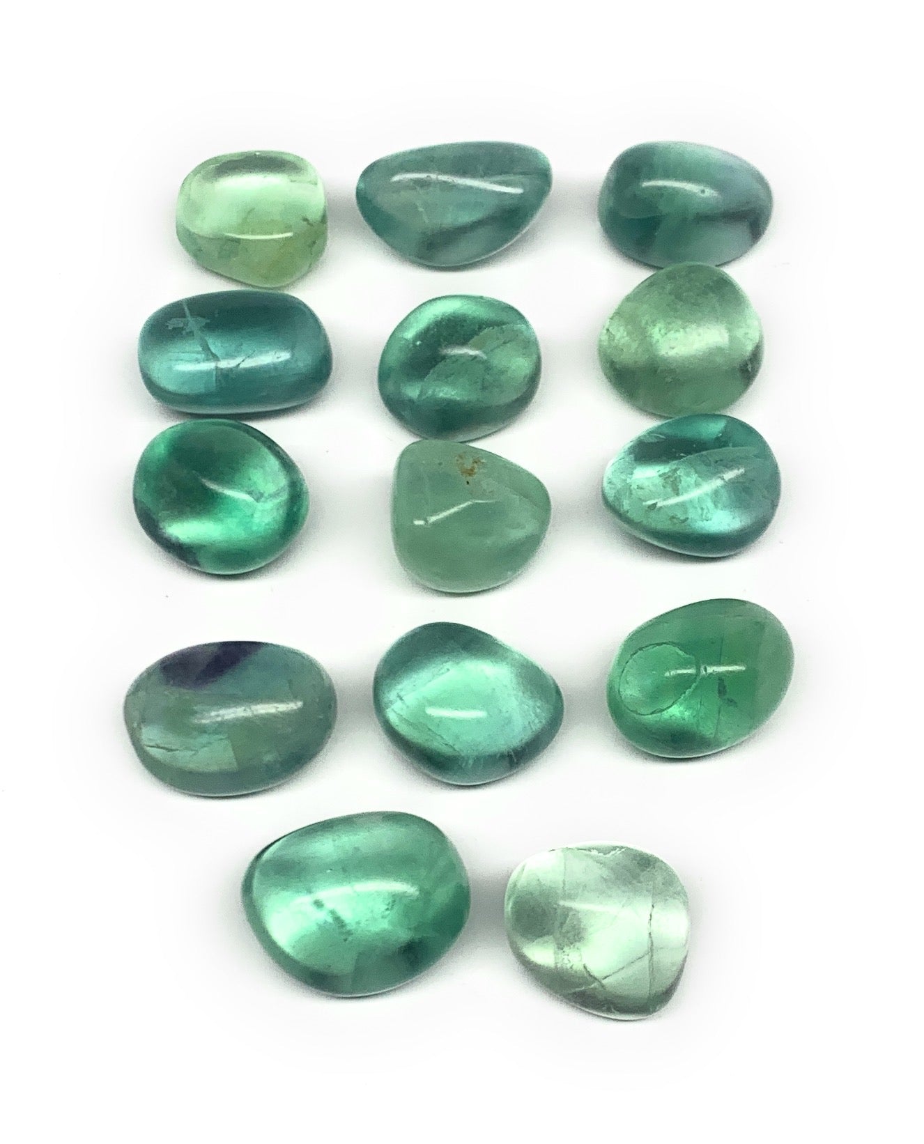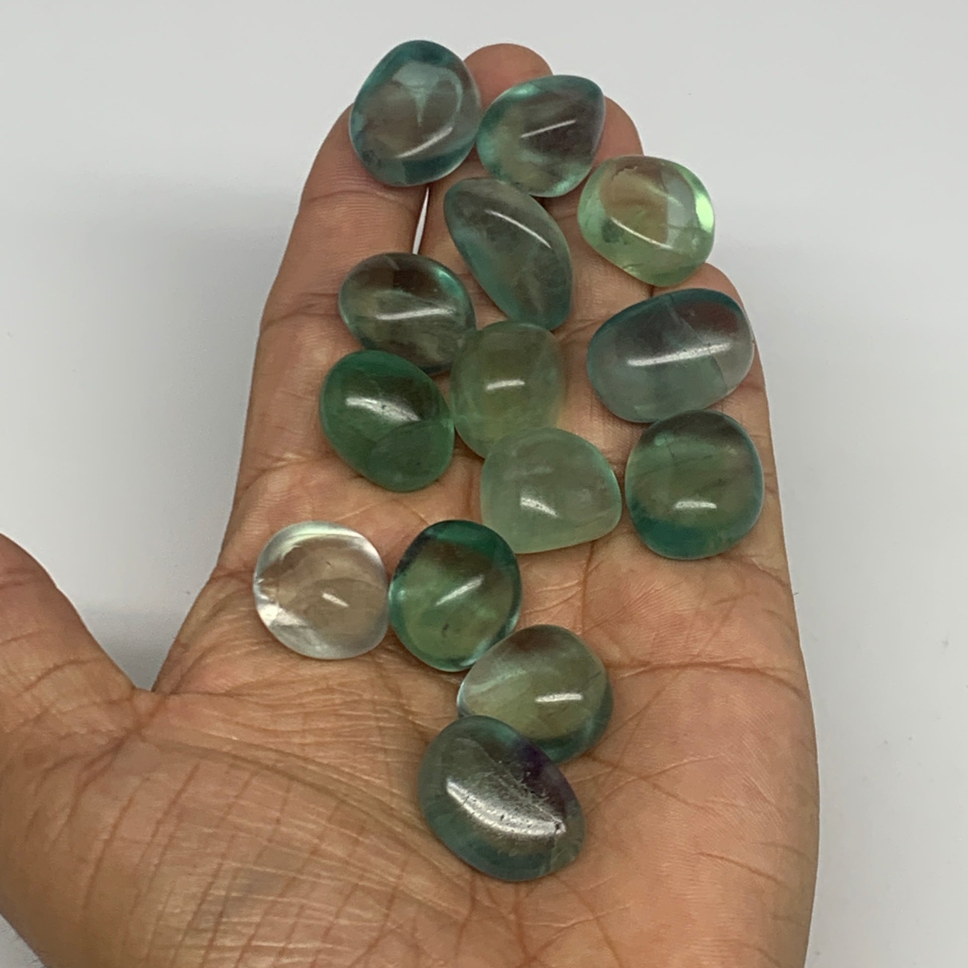 111.6g, 0.6"-1", 14pcs, Green Fluorite Crystal Tumbled Stones, B26937