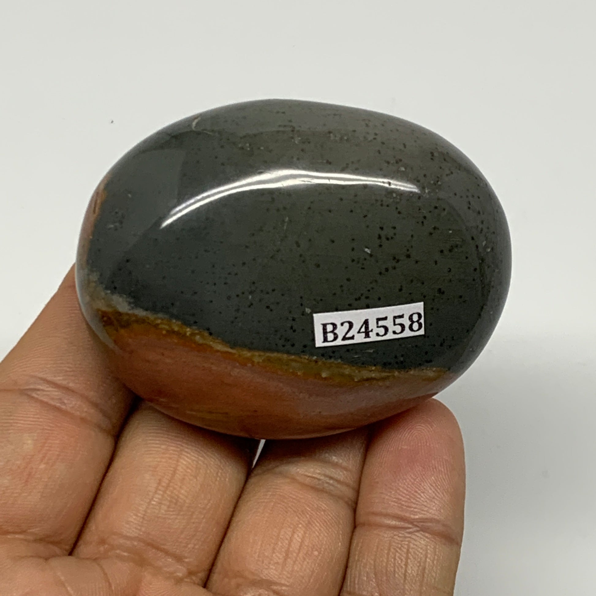 112.2g, 2.3"x1.8"x1.2" Polychrome Jasper Palm-Stone Reiki @Madagascar, B24558