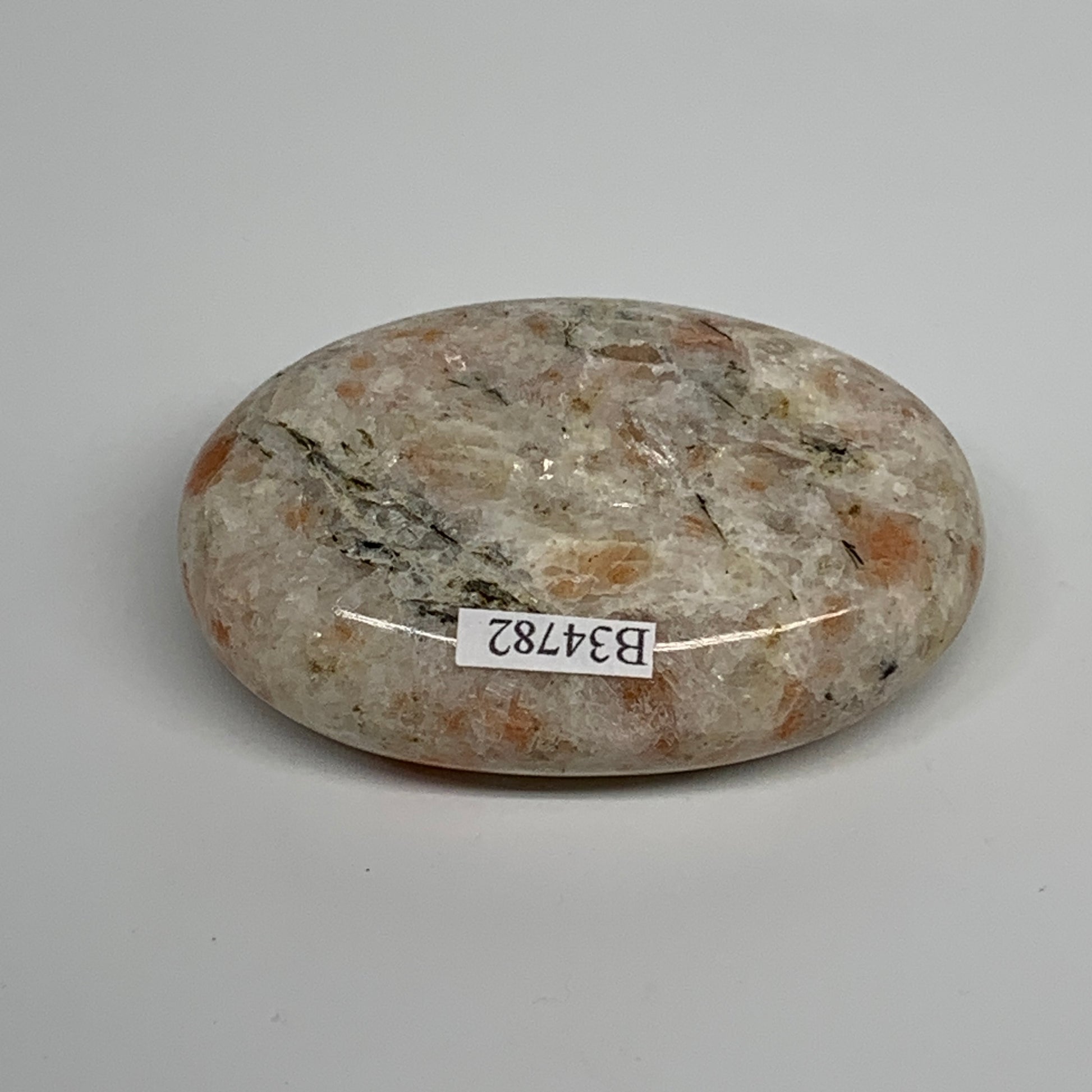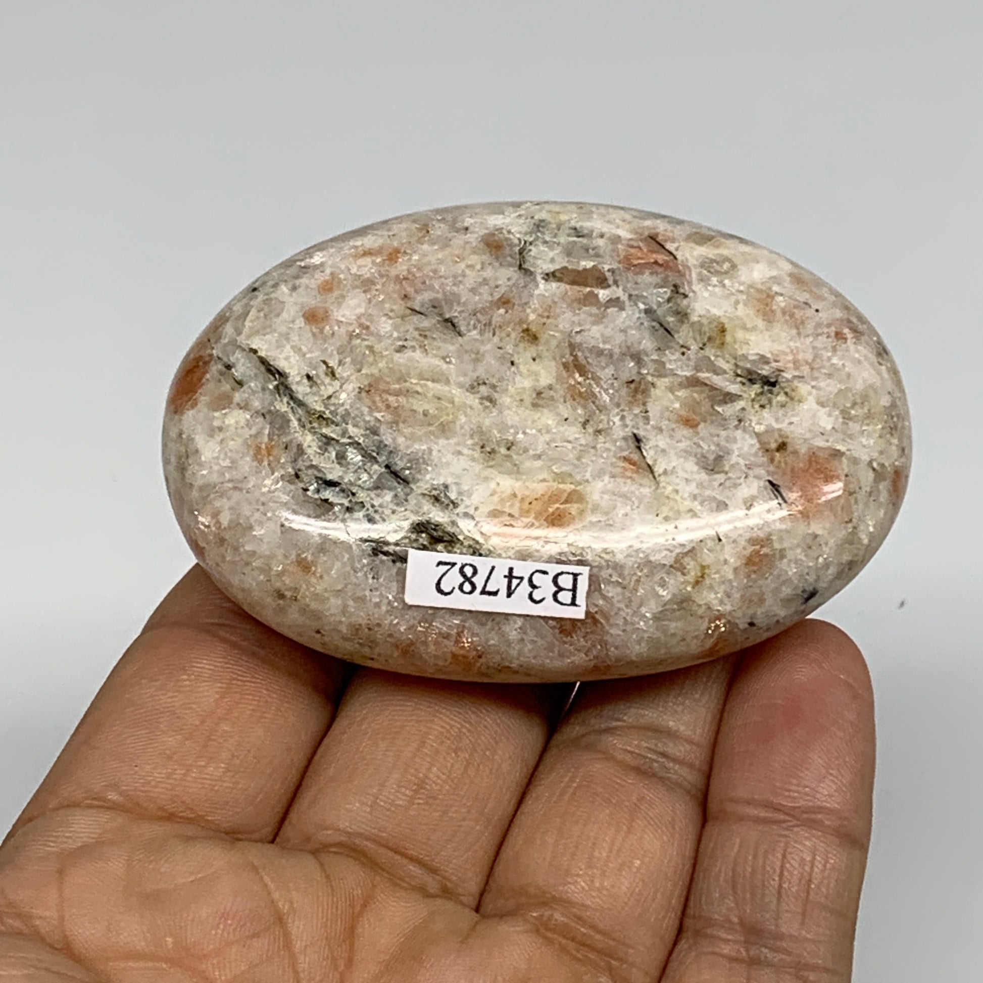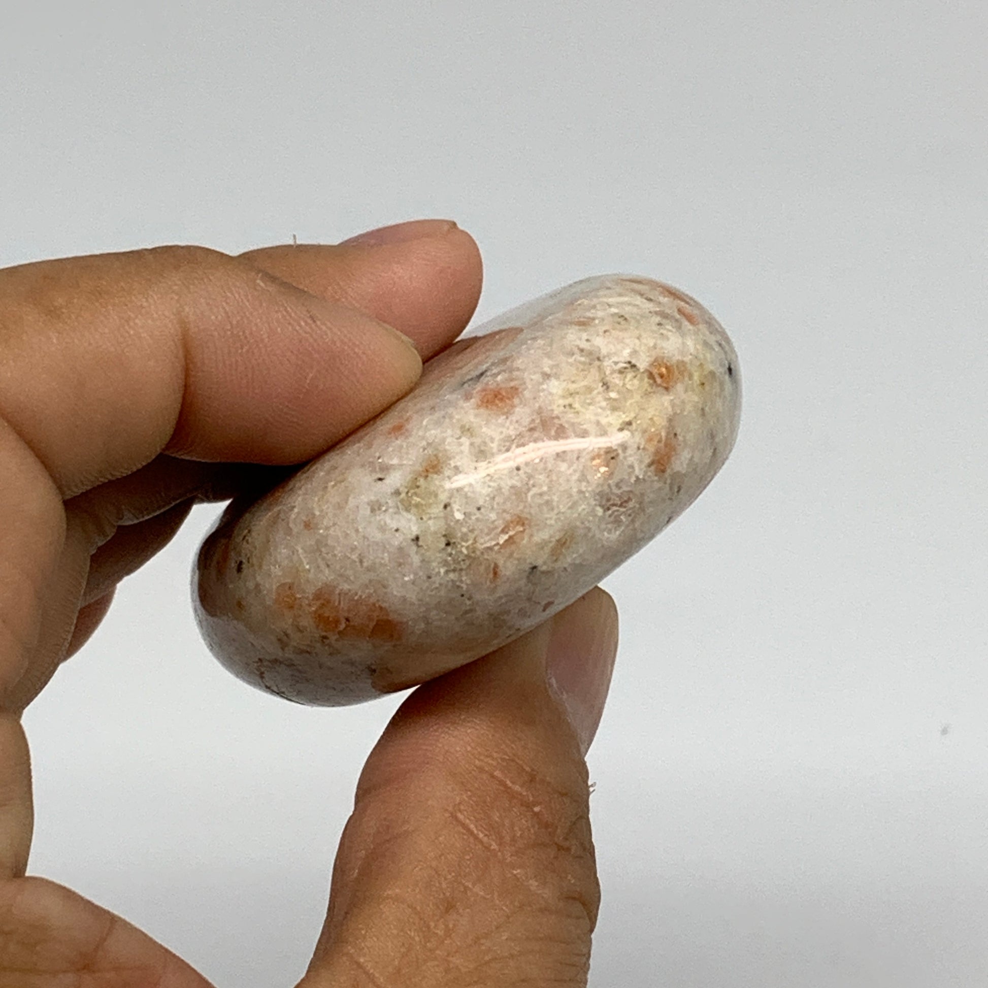 112.3g, 2.7"x1.9"x0.8", Natural Sunstone Palm-Stone Polished from India, B34782