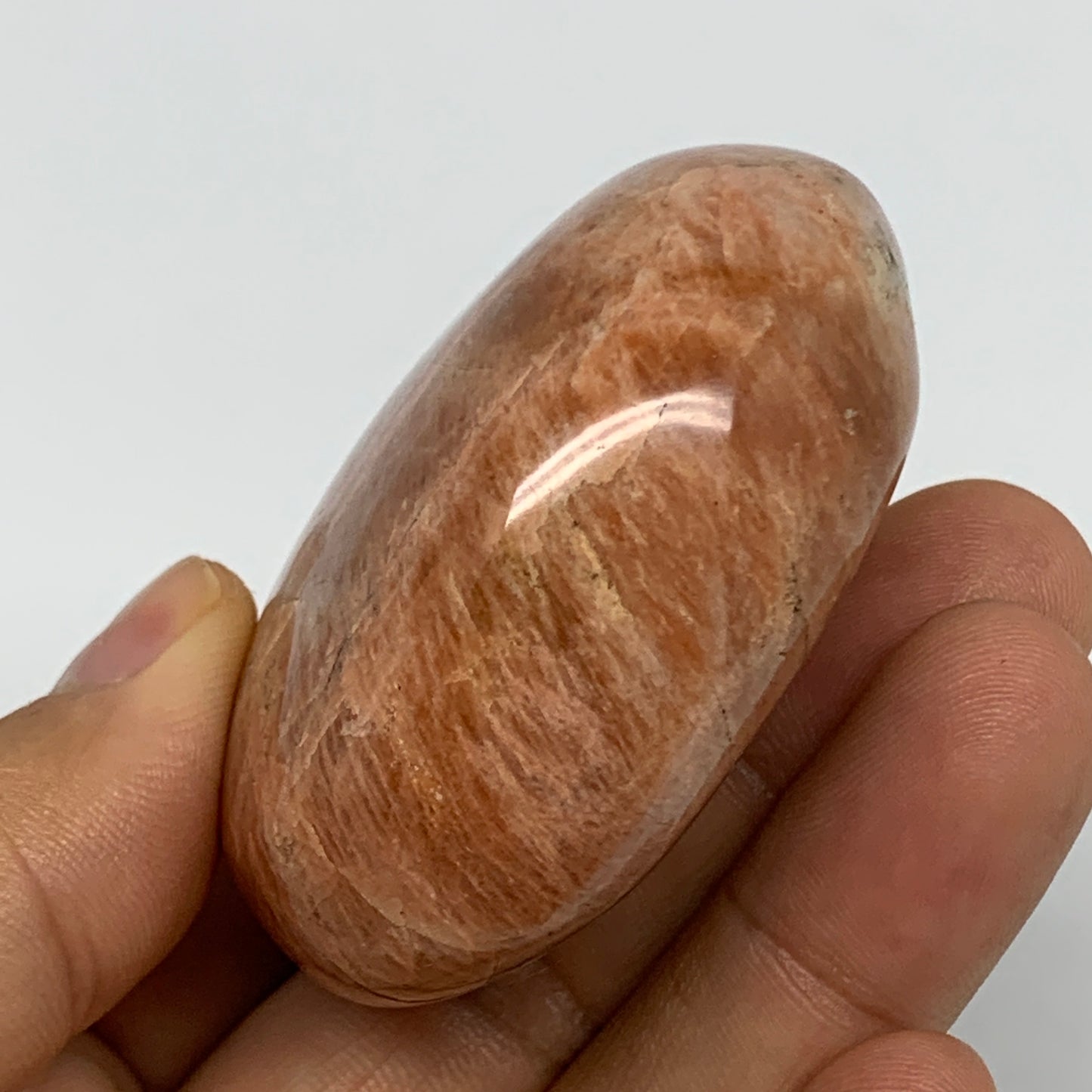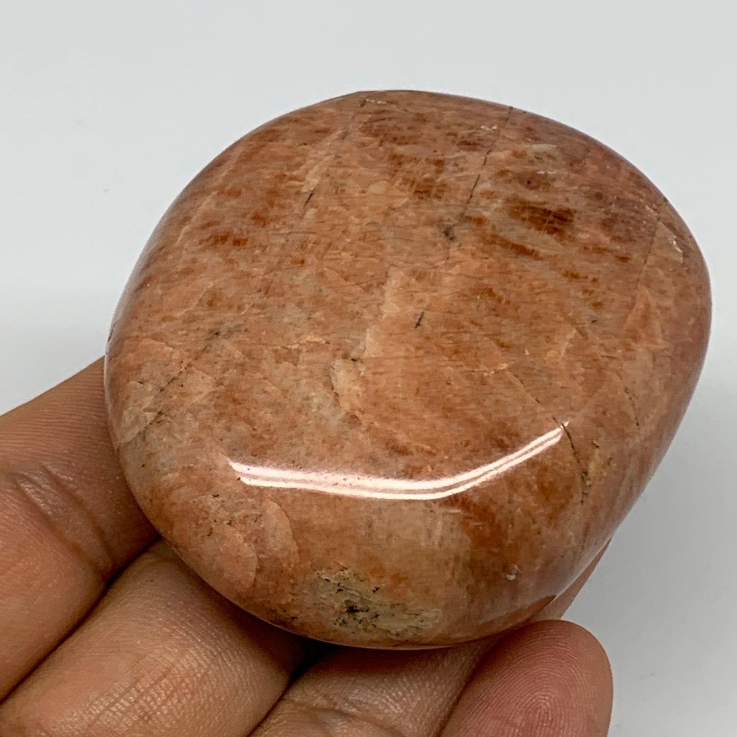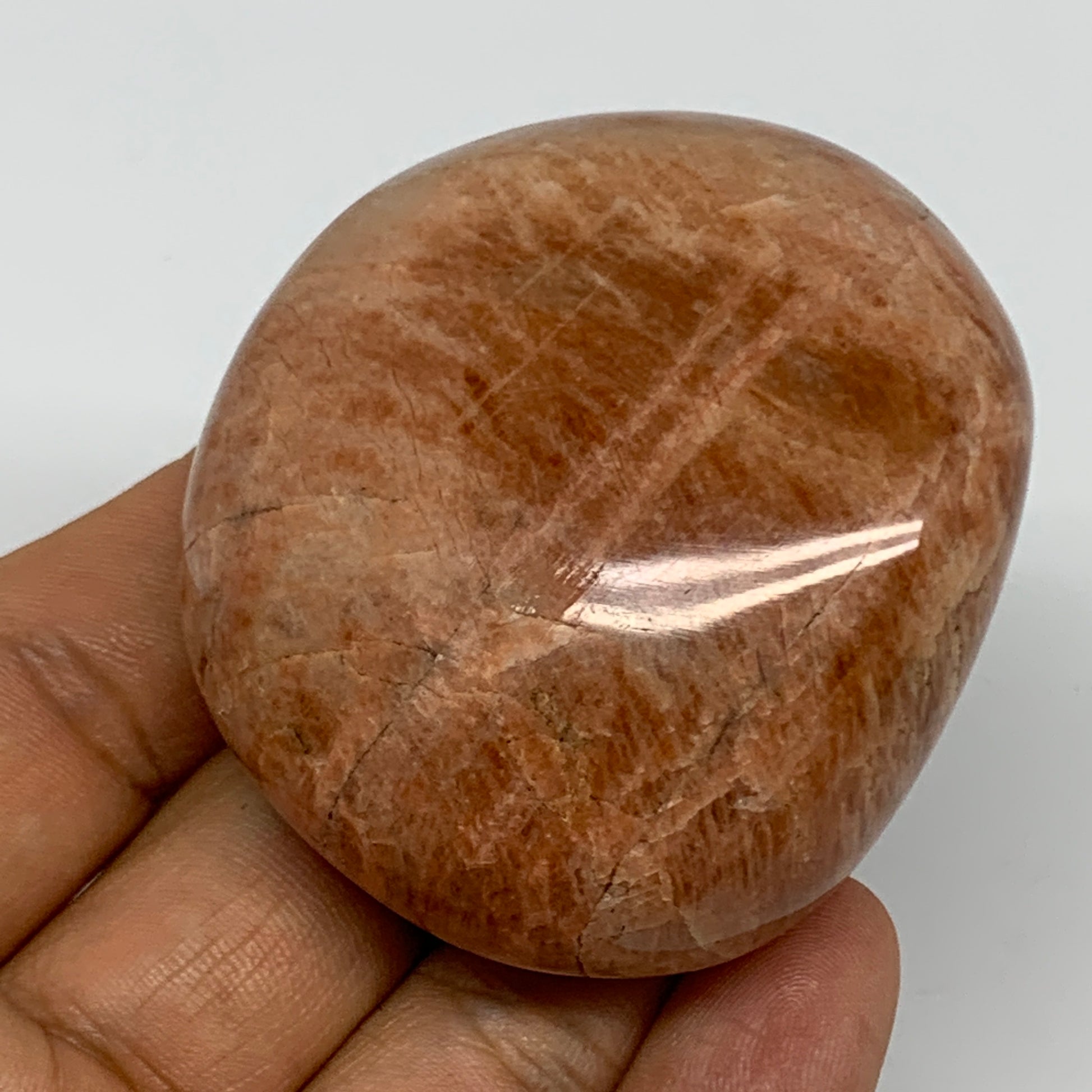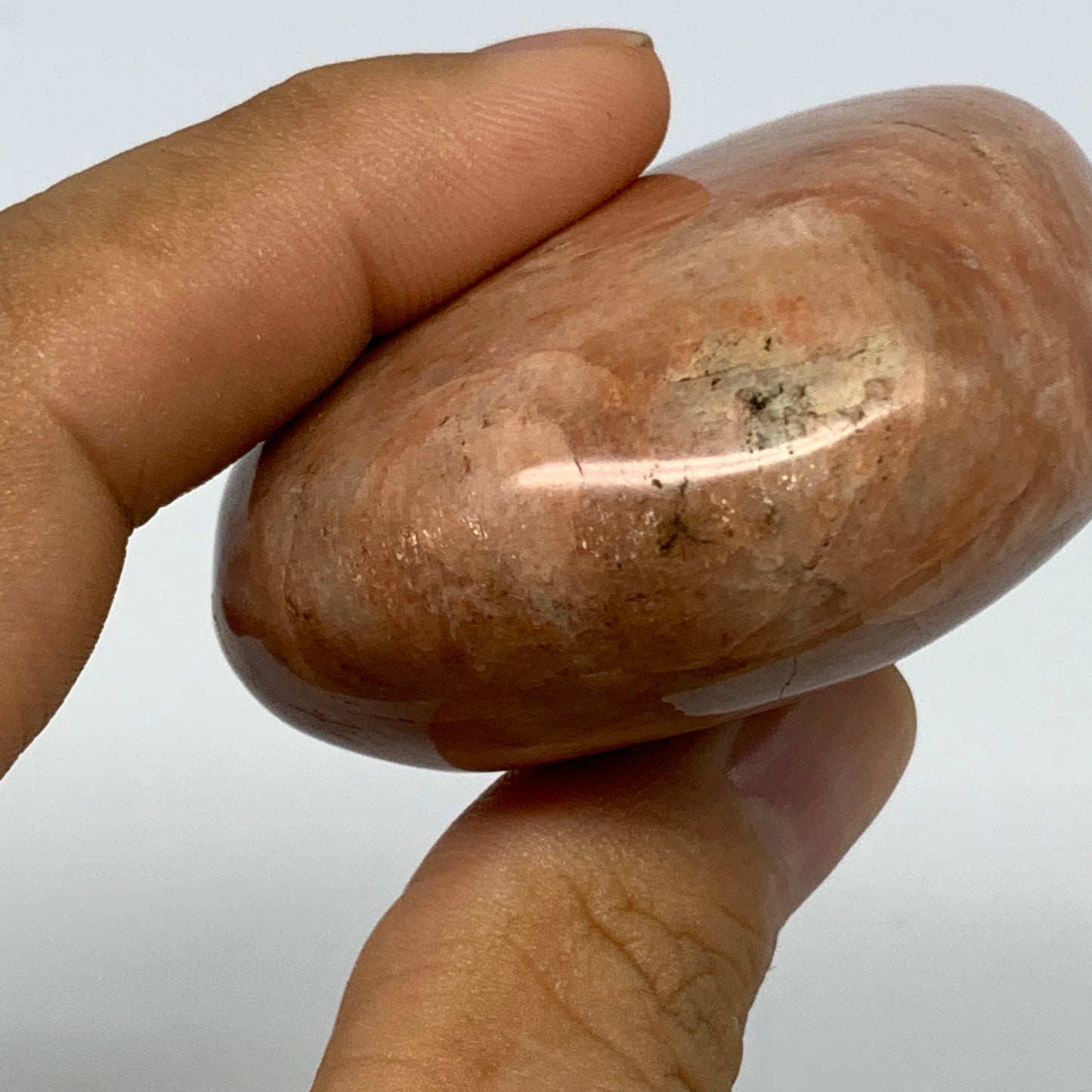 112.4g,2.2"x2"x1", Peach Moonstone Palm-Stone Polished Reiki Crystal, B15468