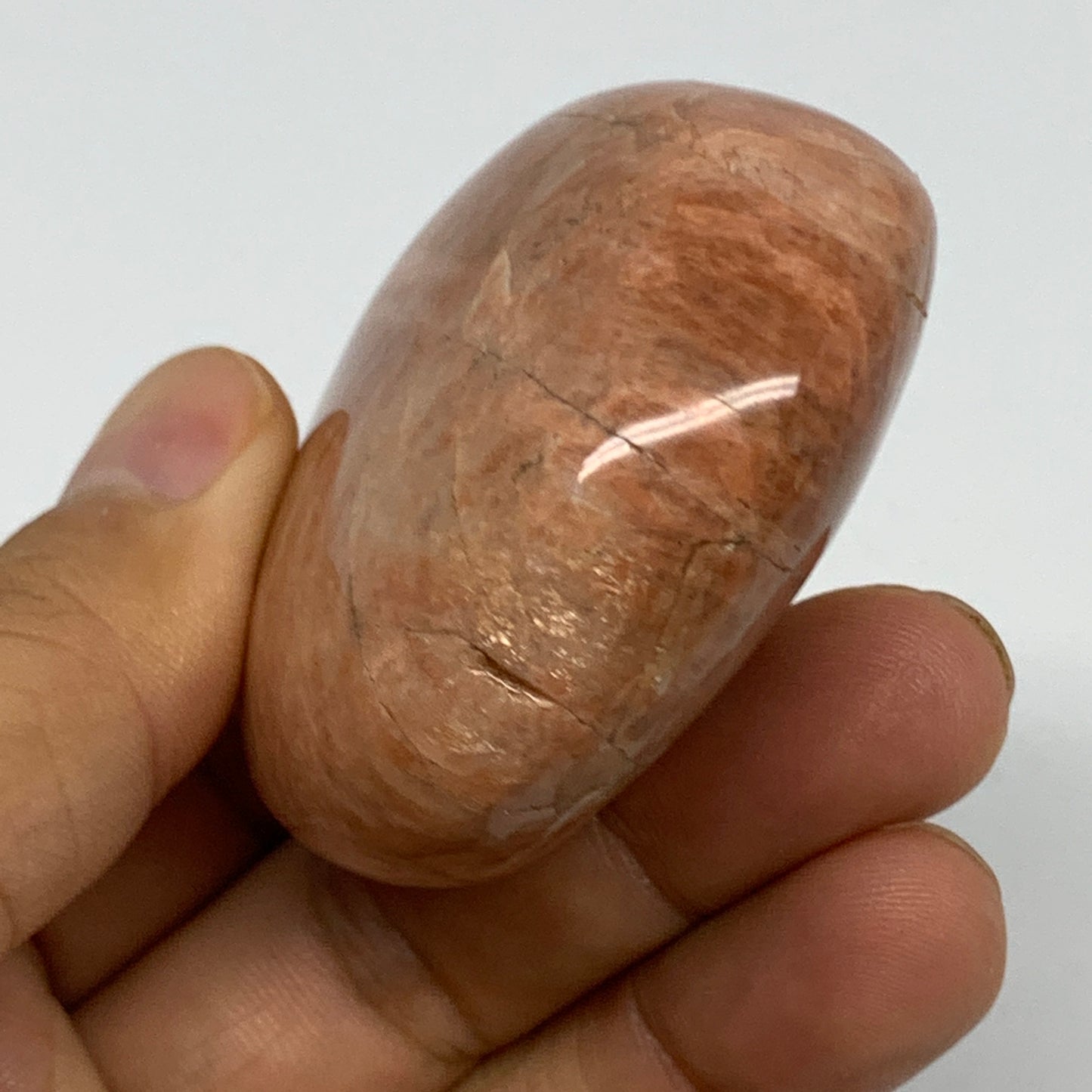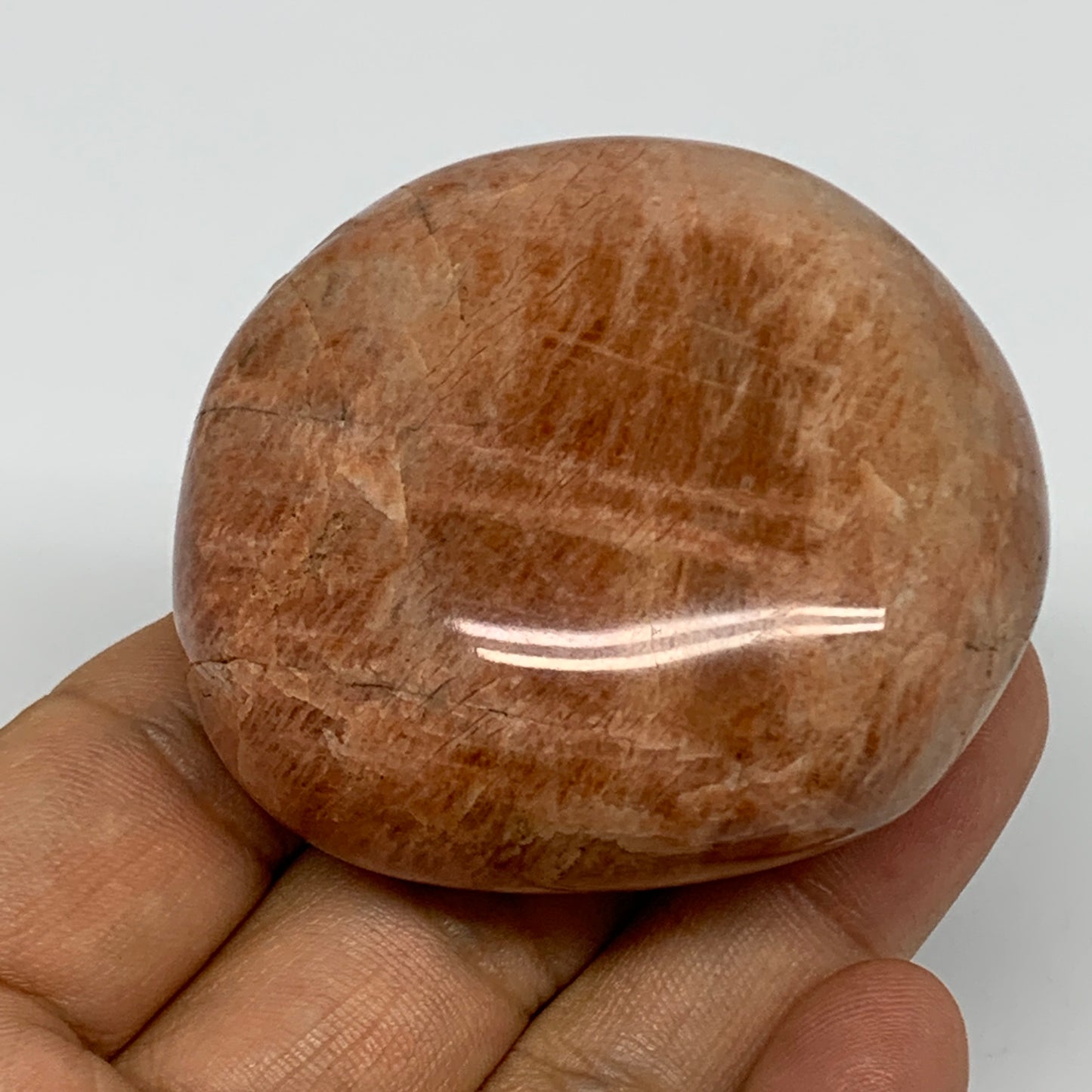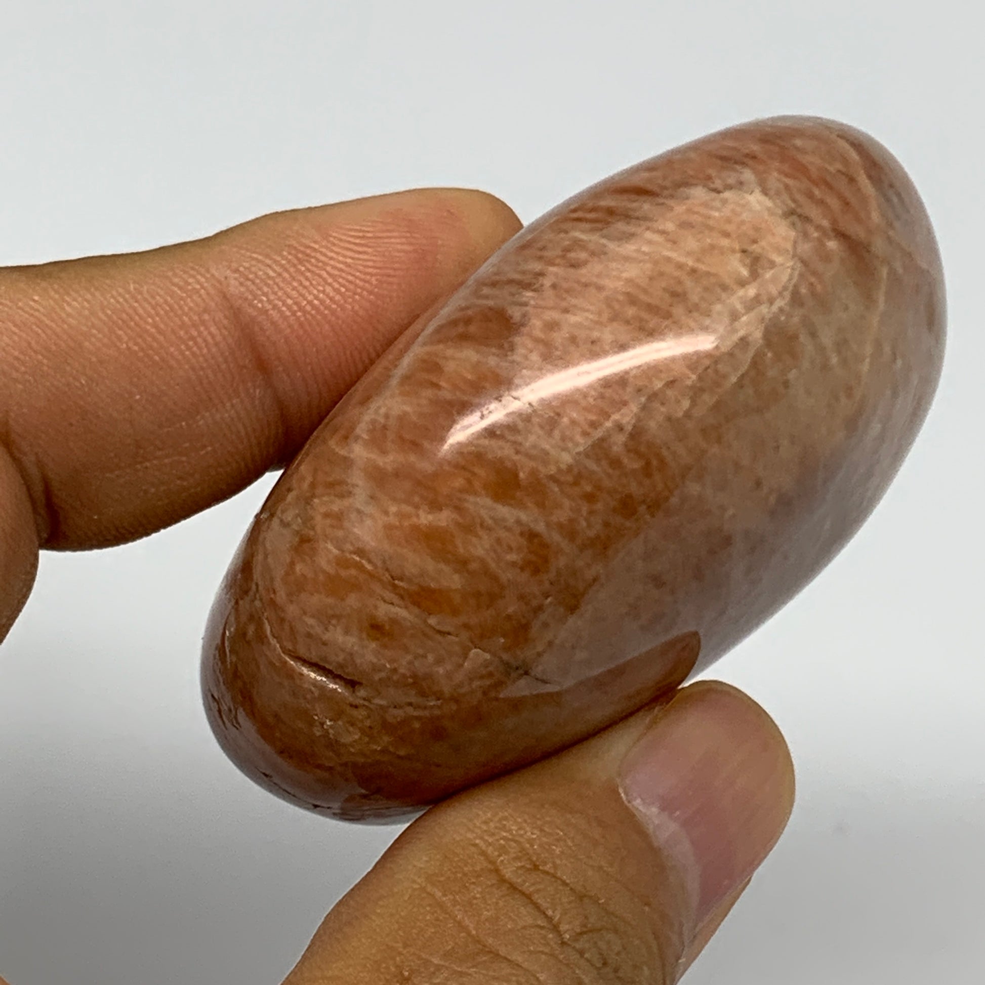 112.4g,2.2"x2"x1", Peach Moonstone Palm-Stone Polished Reiki Crystal, B15468