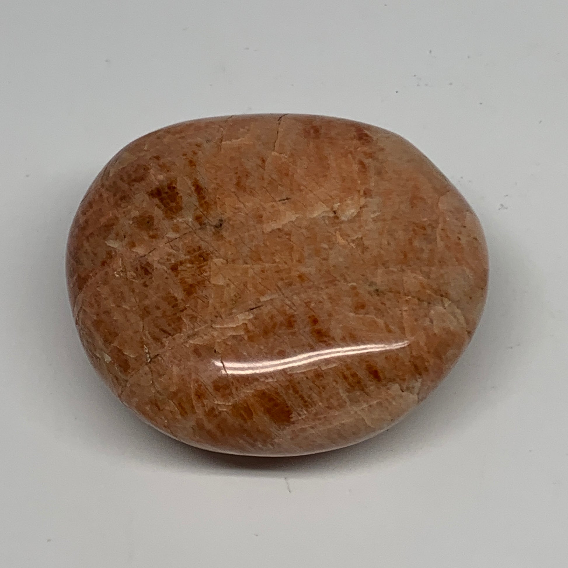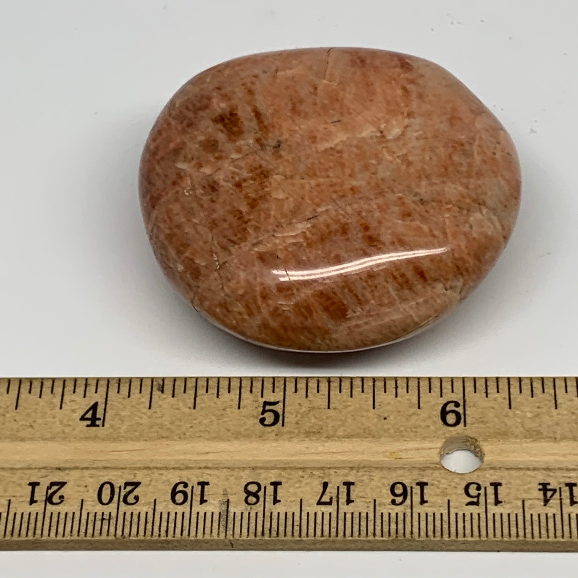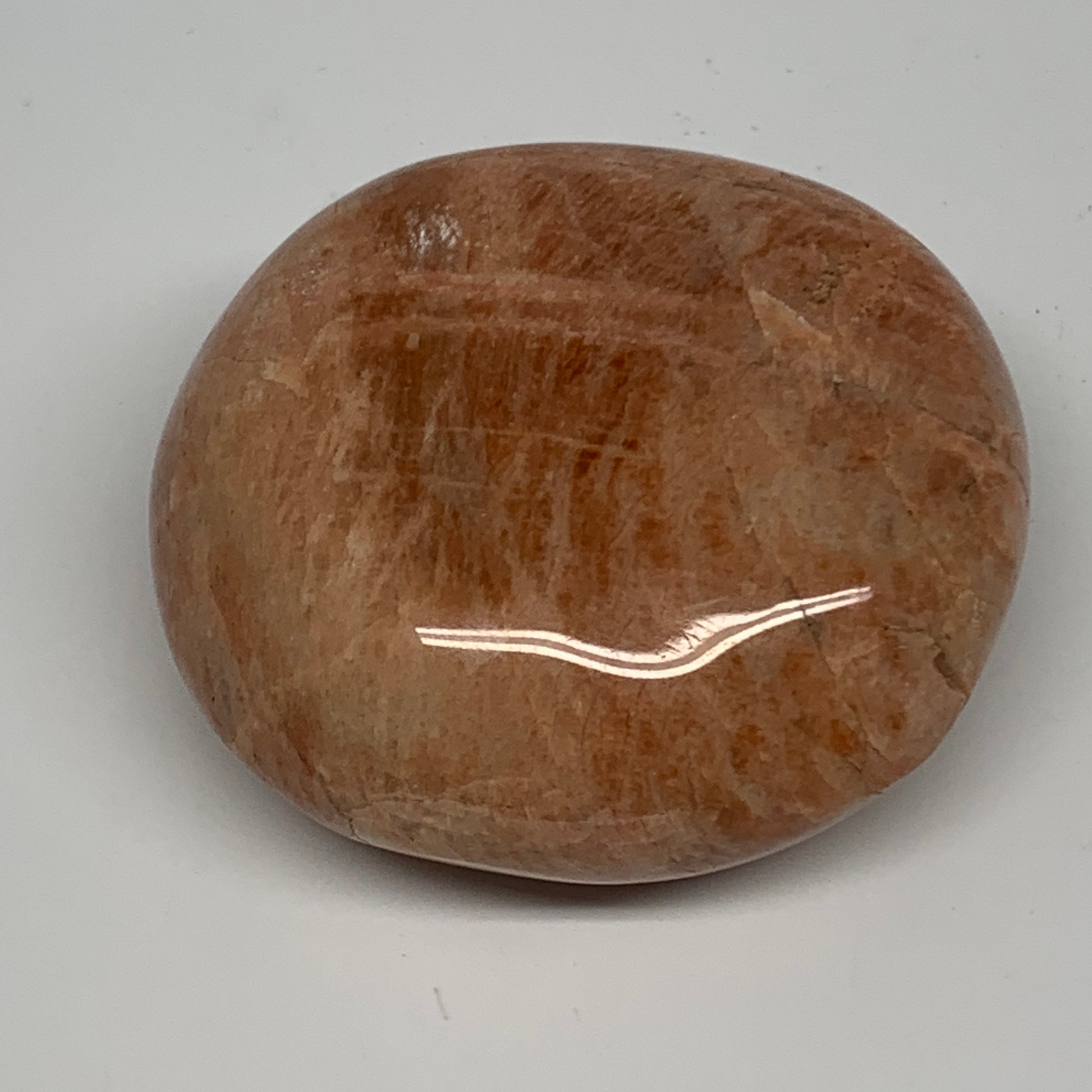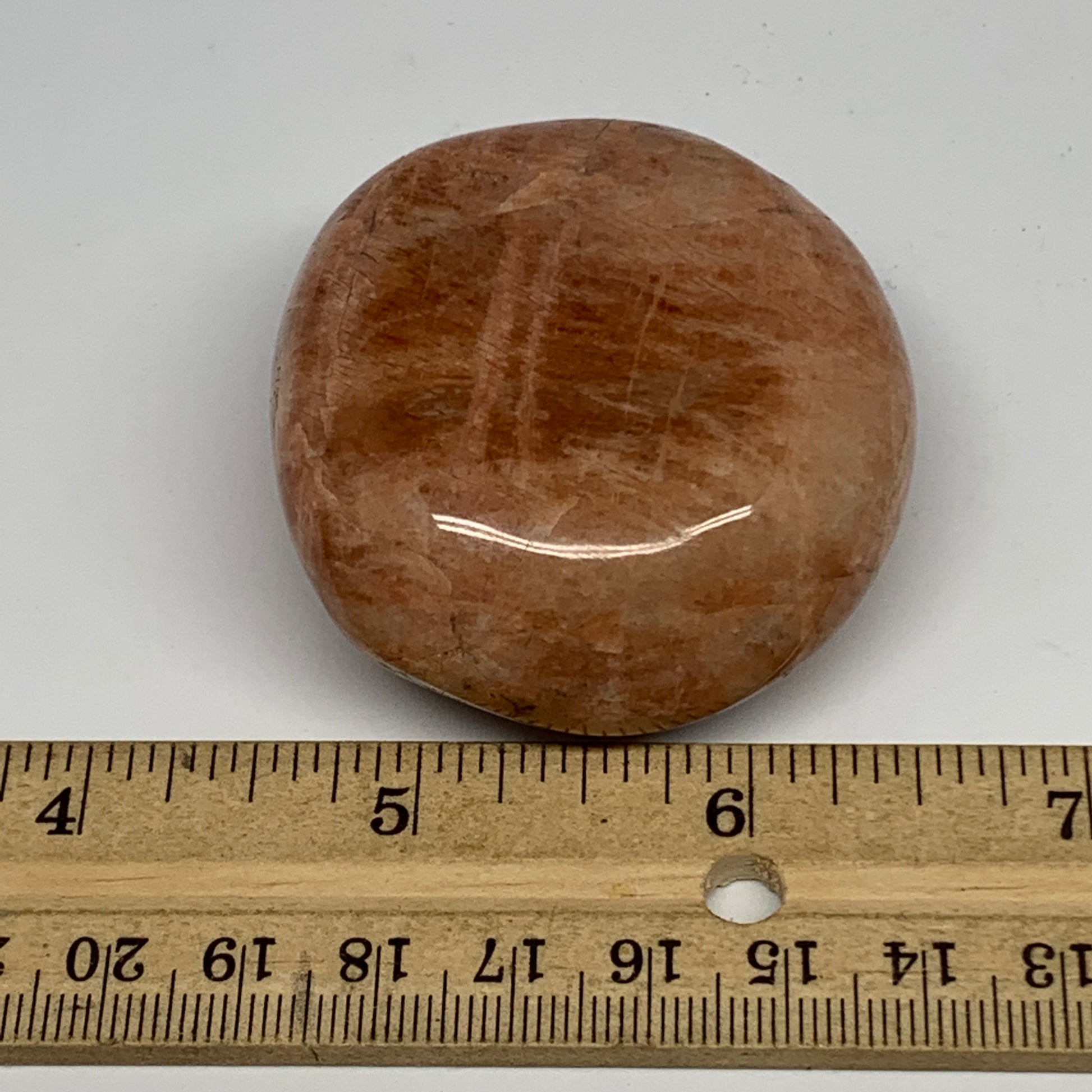 112.4g,2.2"x2"x1", Peach Moonstone Palm-Stone Polished Reiki Crystal, B15468
