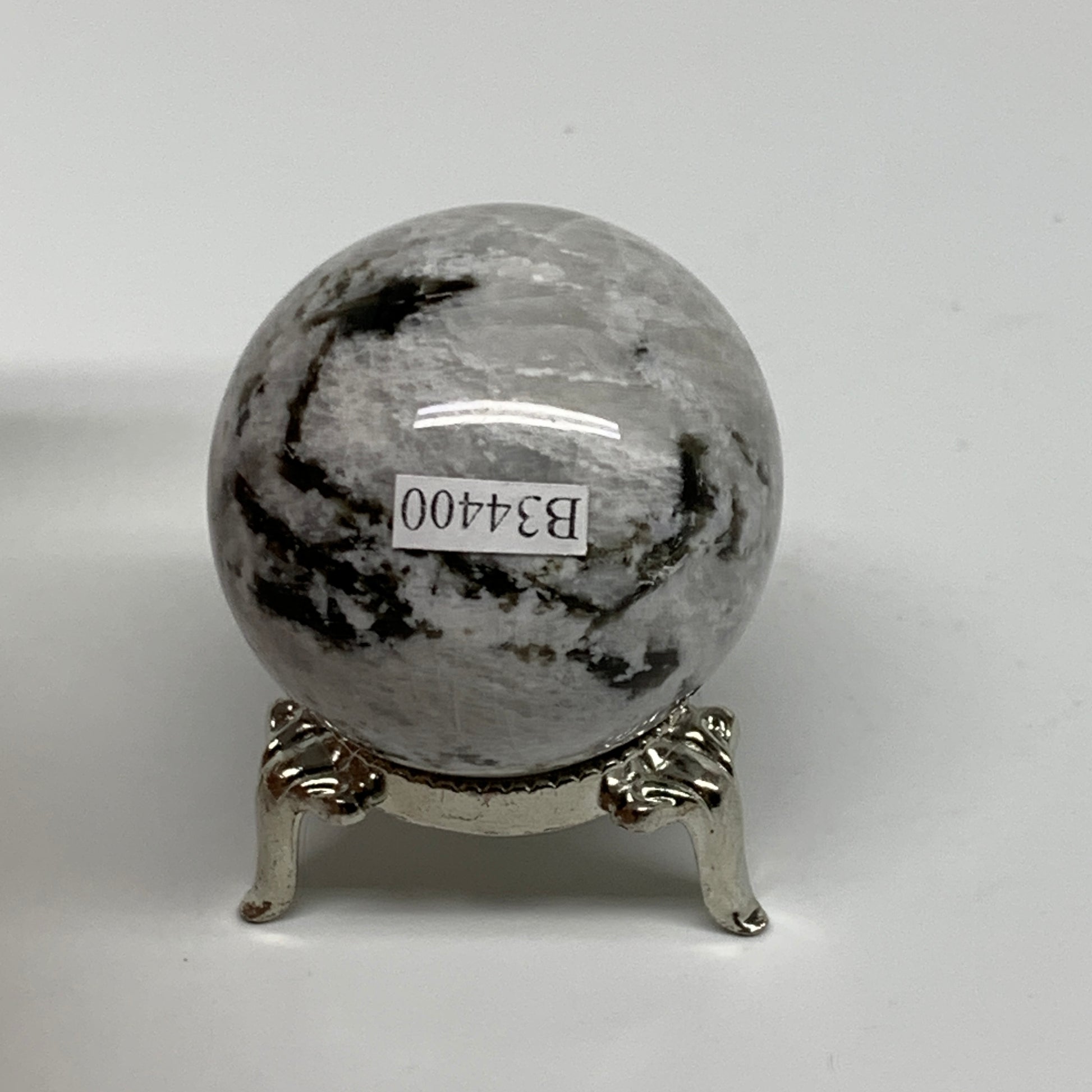 112.6g, 1.7"(43mm), Natural Rainbow Moonstone Sphere Ball Gemstone, B34400